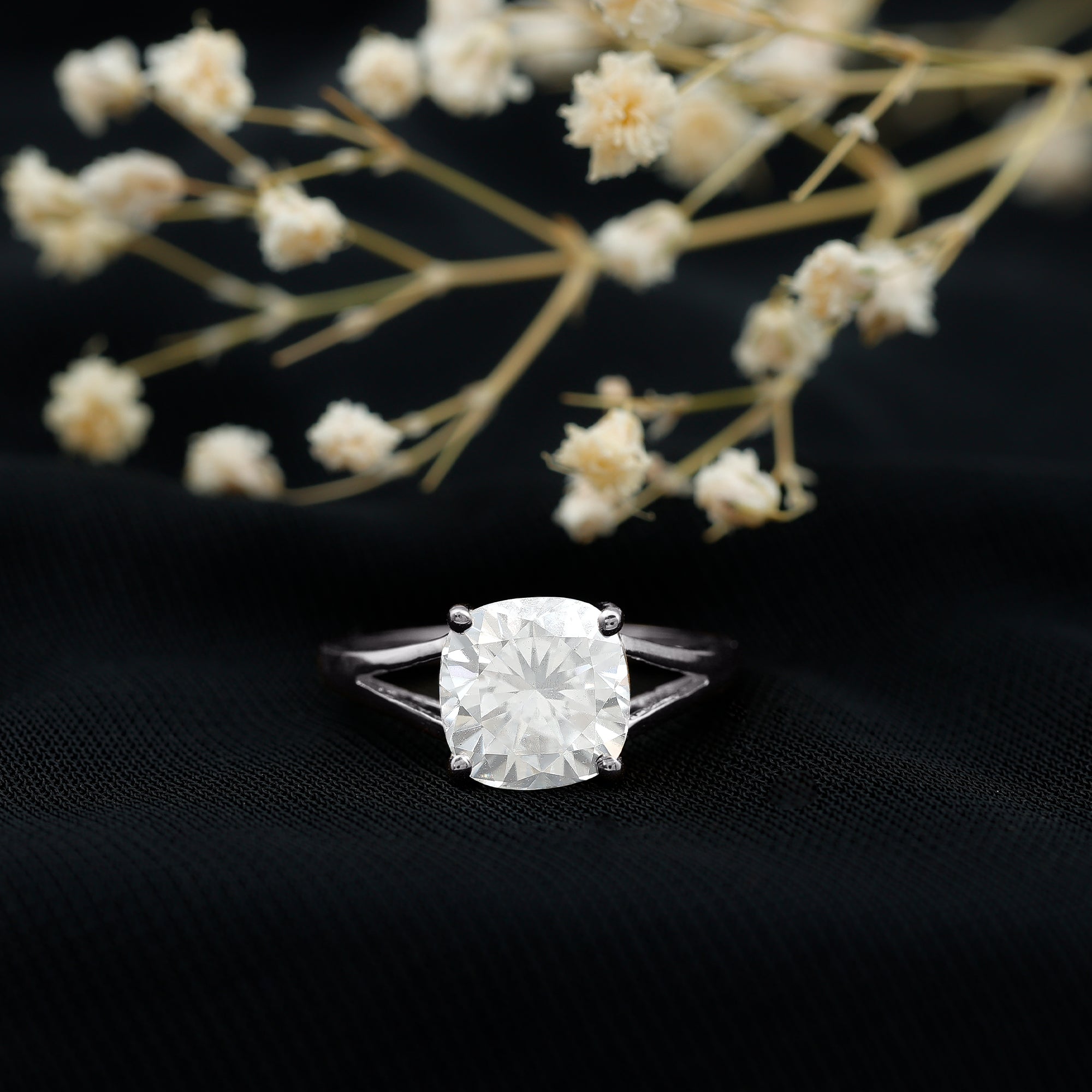 This gorgeous Solitaire Moissanite Engagement Ring gives a modern twist to tradition, truly sparkling with the amazing brilliance of its solitaire stone. The Solitaire Engagement Ring showcases an 8 MM Cushion Cut Moissanite set in prong setting, complemented by a split shank that adds elegance and style from every angle. This Large Engagement Ring exudes a simple yet sophisticated charm that is sure to catch your eye. The D-VS1 Quality Moissanite serves as a remarkable alternative to Natural Diamonds, stealing the show with its sleek design. Rosec Jewels is dedicated to celebrating your special moments, making sure they are filled with unforgettable memories, whether you are marking a promise, a birthday, an engagement, or any other significant event. This contemporary and stylish Cushion Cut Engagement Ring for Women boasts a classic design that is both dazzling and brilliant, representing beauty, love, and commitment. Delight your girlfriend, wife, or fiancée with this Split Shank Engagement Ring, recognized for its minimalist aesthetics, making it a meaningful gift for someone special in your life.