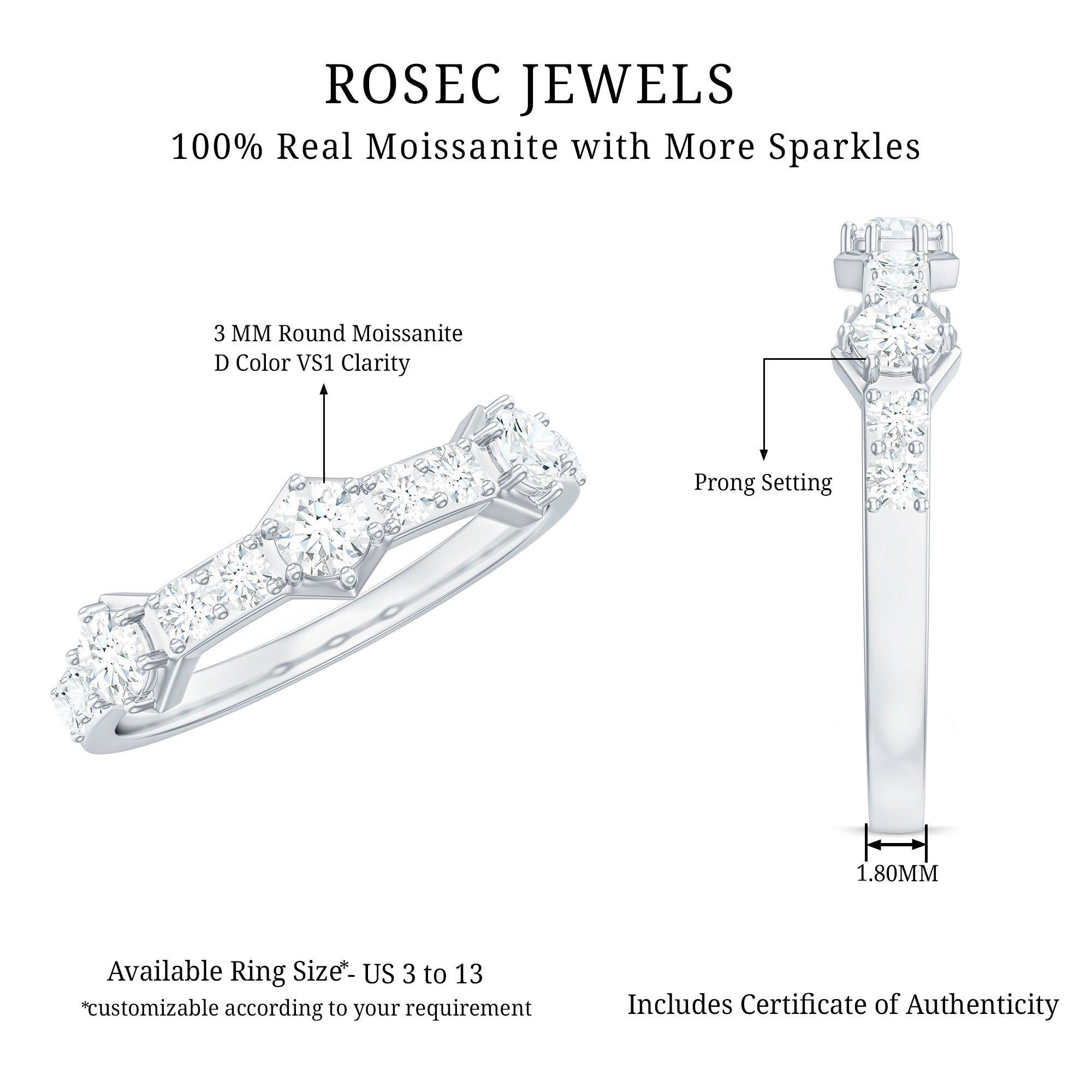 3/4 Carat Round Moissanite Half Eternity Band Ring in Gold