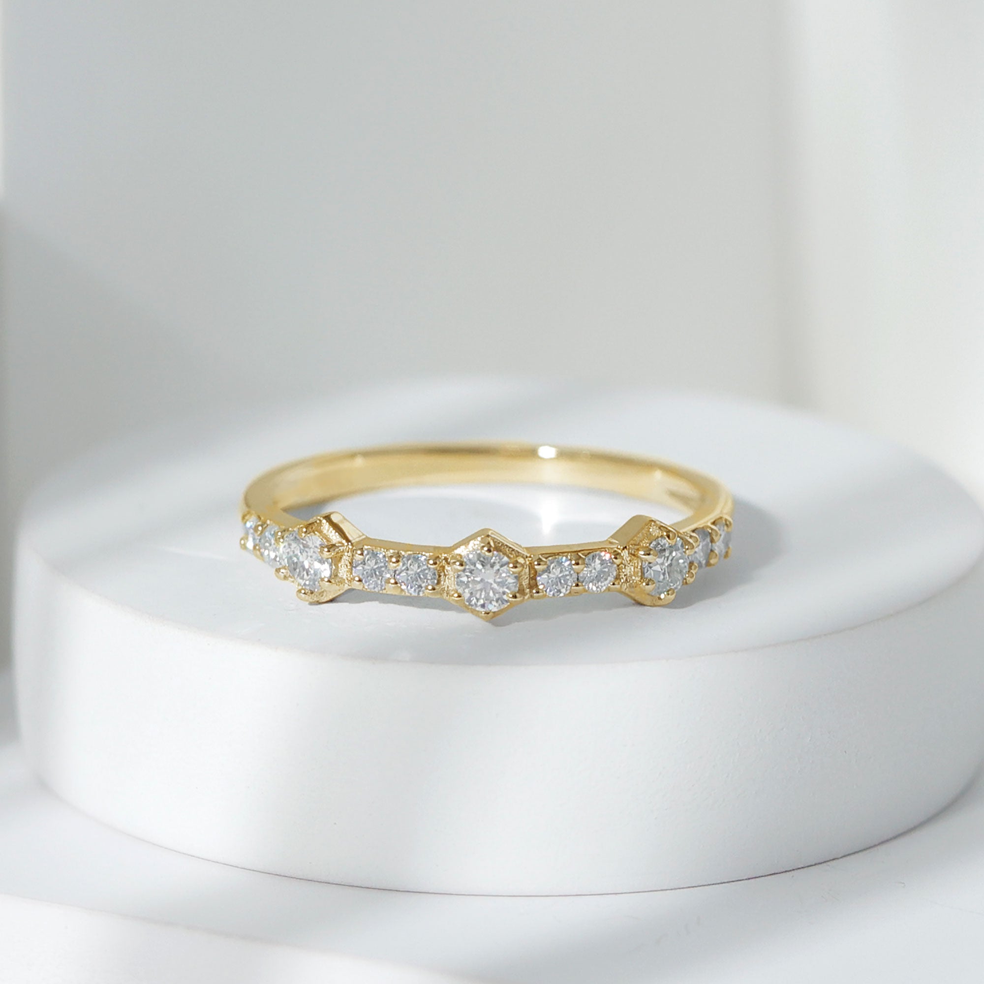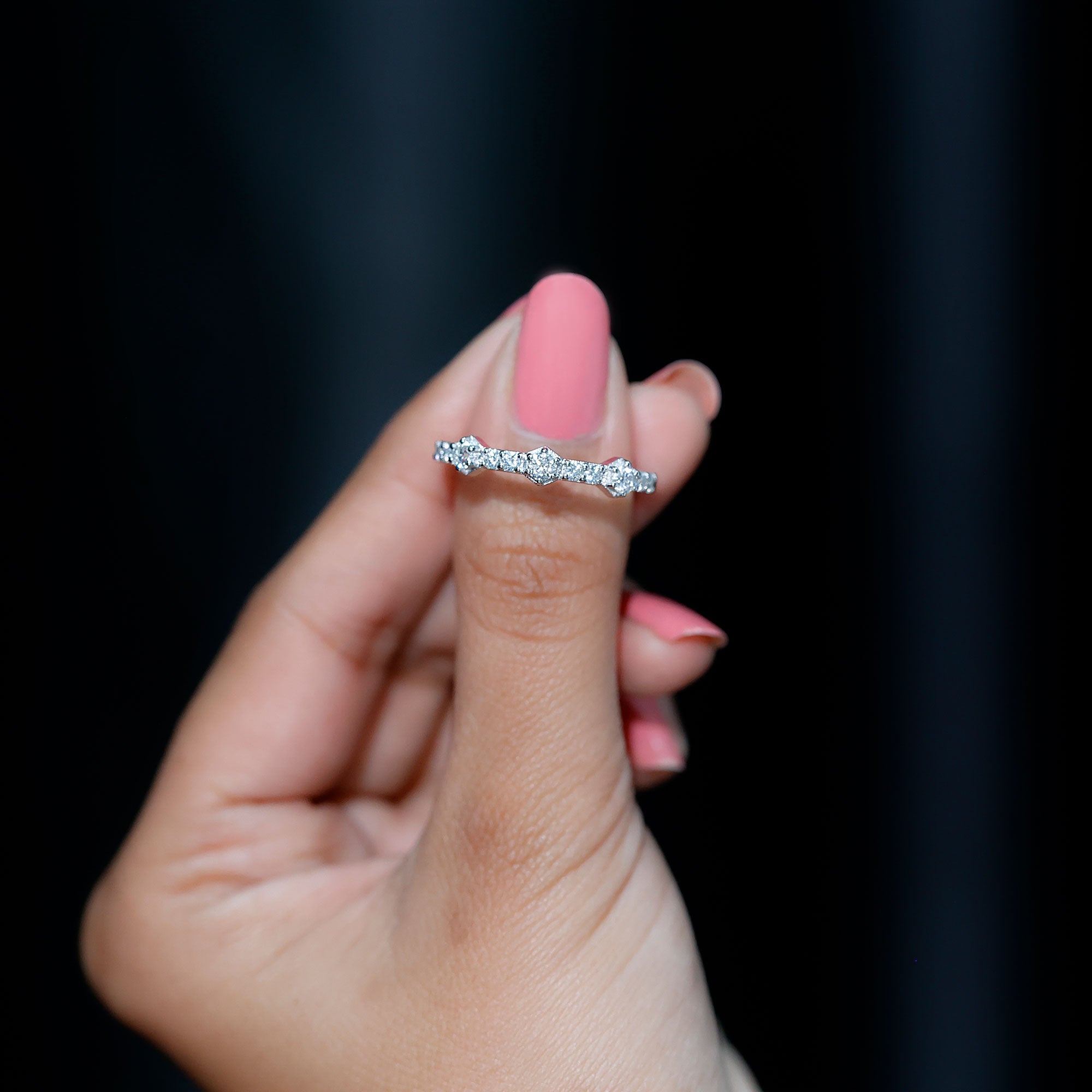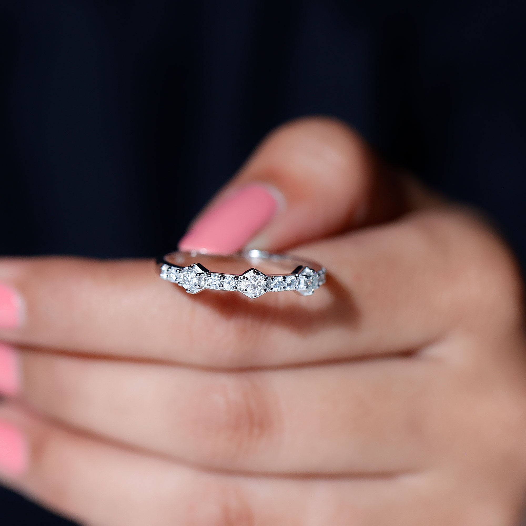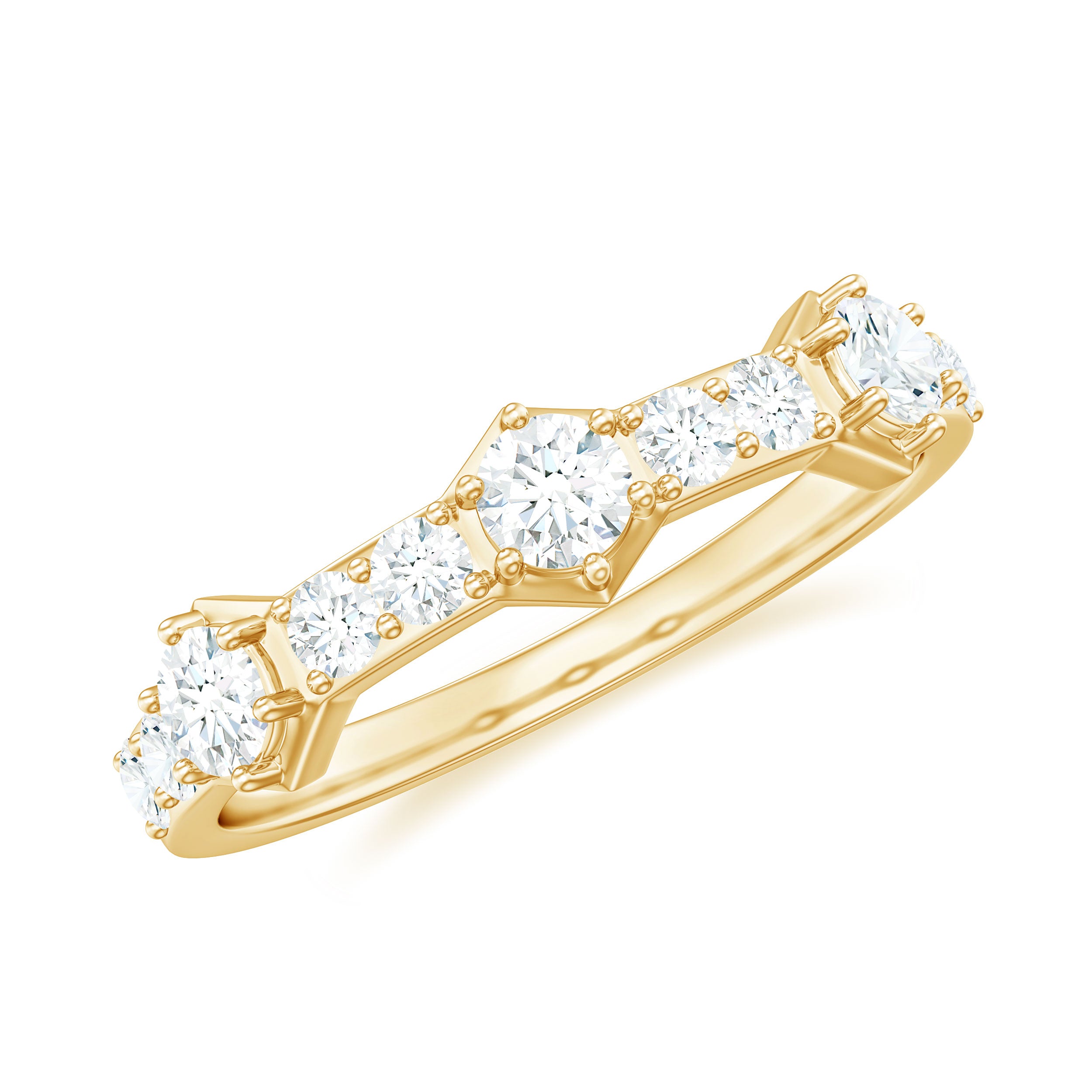 This Half Eternity Band Ring is a great choice for her to enhance your love. Featuring Round Shape Moissanite set in a prong setting, this Semi Eternity Ring is suitable for any occasion. Made of Gold Metal, this Moissanite Half Eternity Ring offers a luxurious appearance. The Moissanite Ring for Women will provide an elegant finishing touch to any outfit.