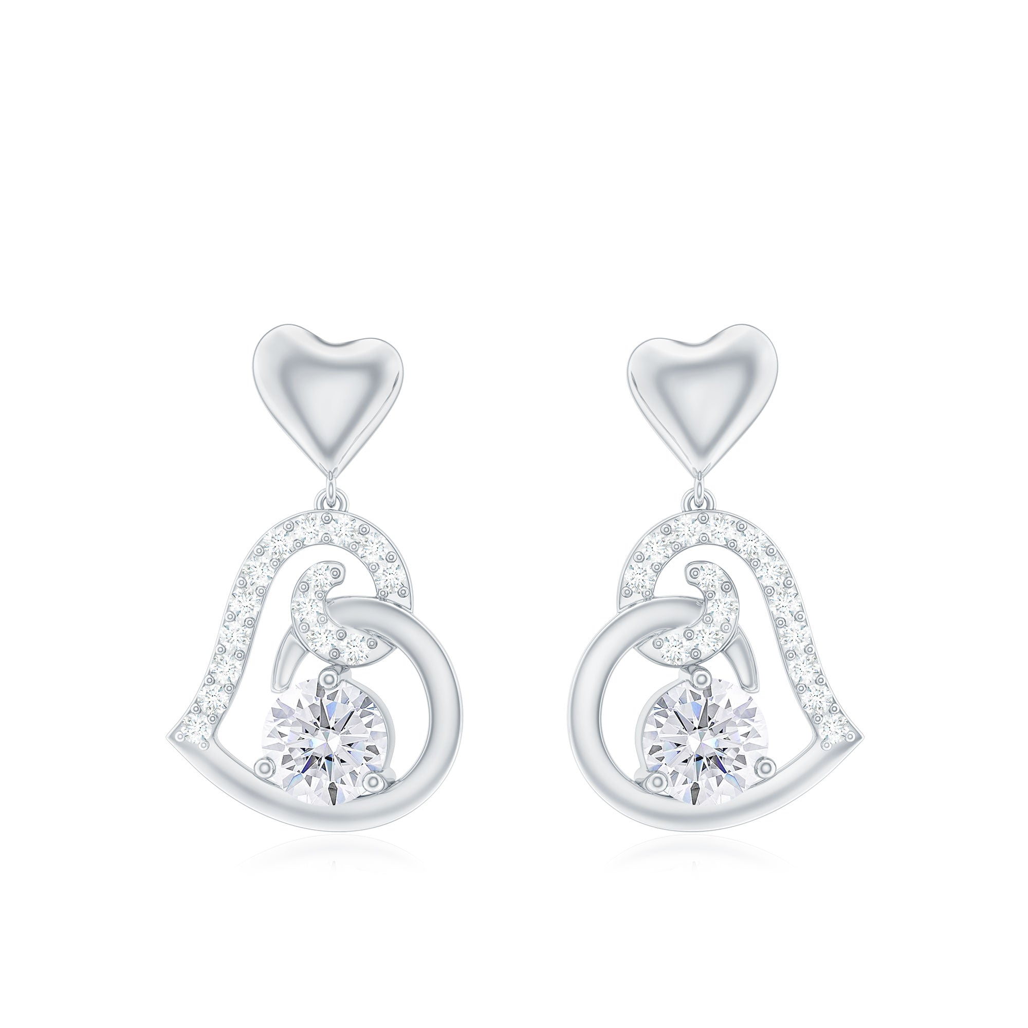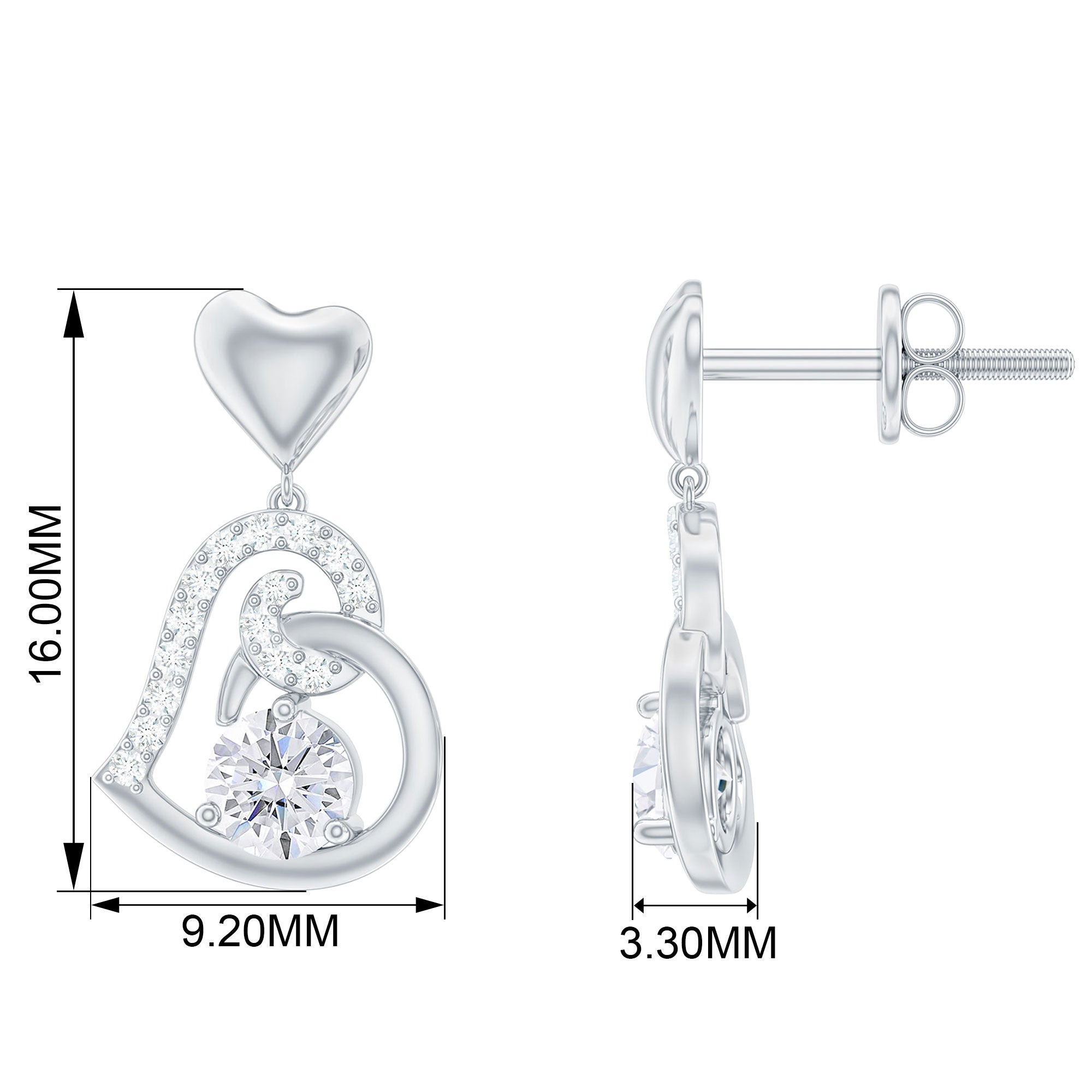 3/4 CT Accent Set Moissanite Heart Drop Earrings for Women