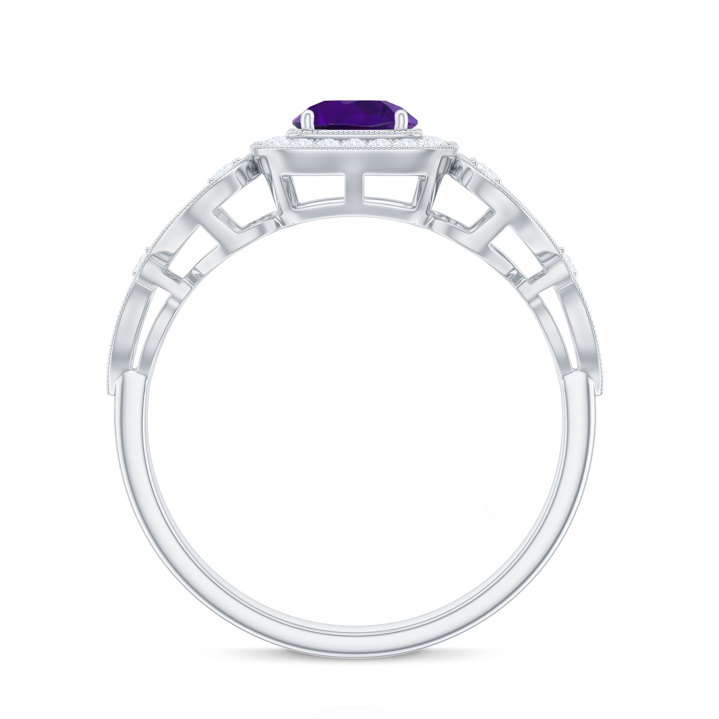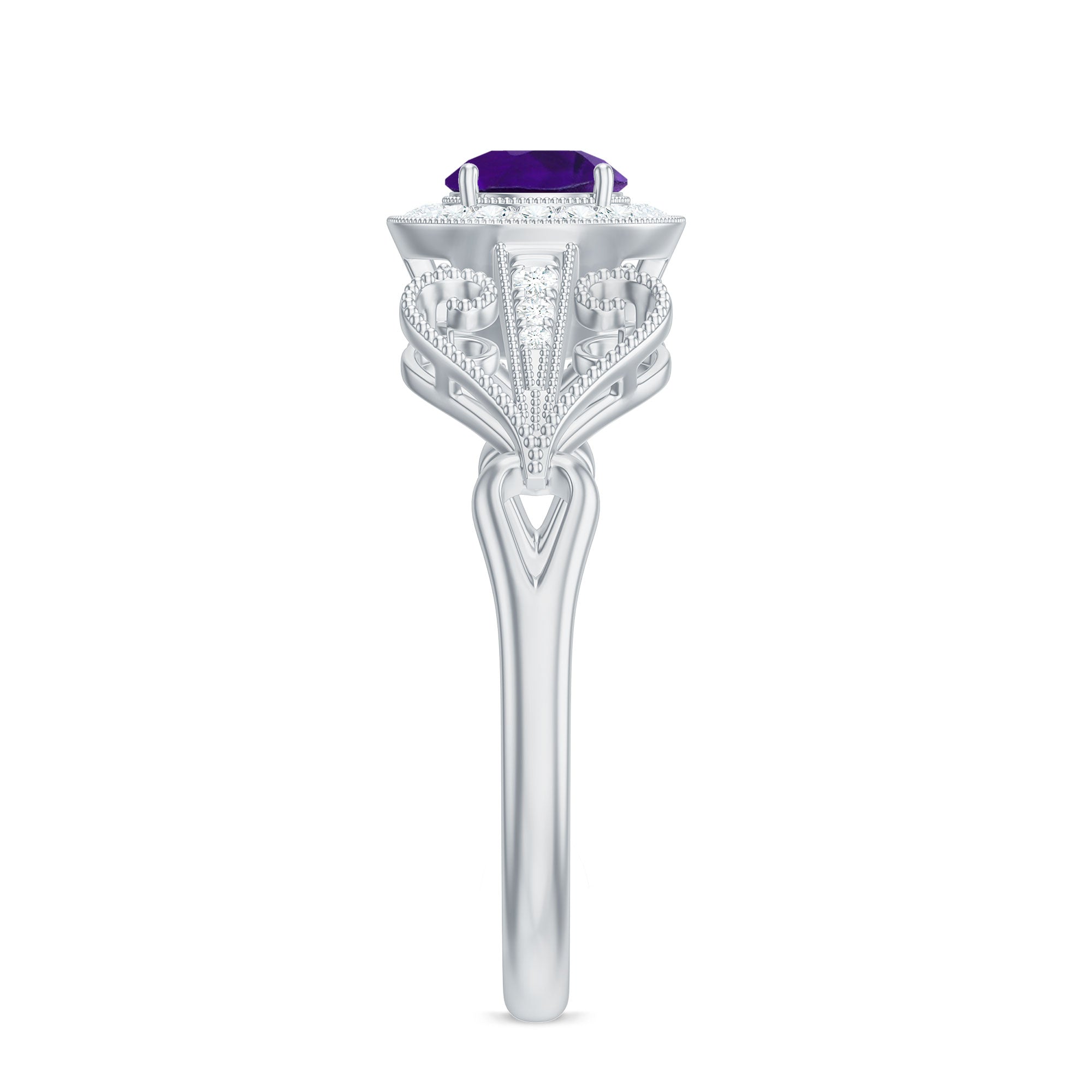 3/4 CT Amethyst and Diamond Art Deco Engagement Ring with Milgrain Details