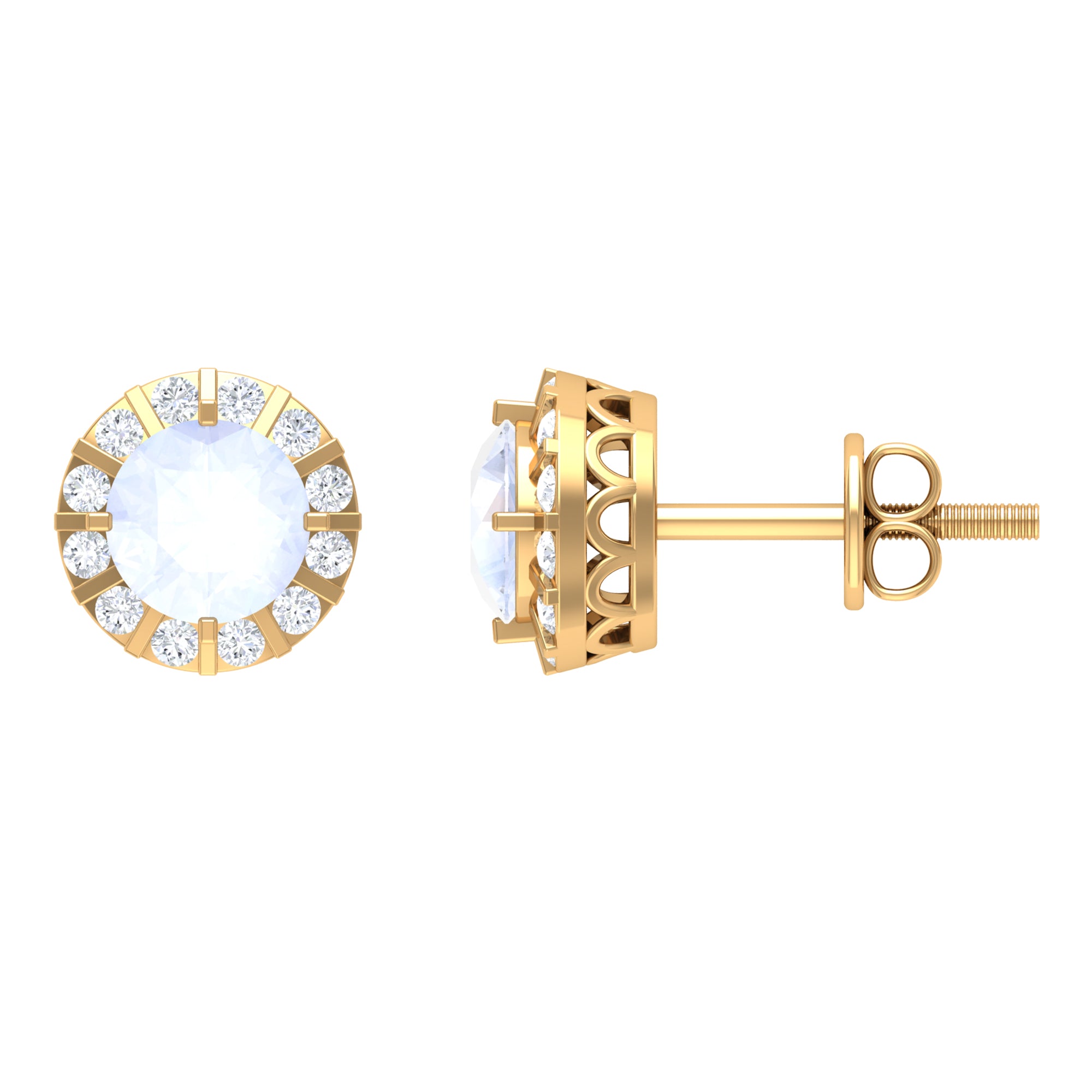 Look Different in these Antique Earrings with a Round Shape Moonstone as Solitaire and round shape Diamond forming unique and Antique stud earrings will add charm to your look.