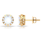 3/4 CT Antique Moonstone and Diamond Stud Earrings