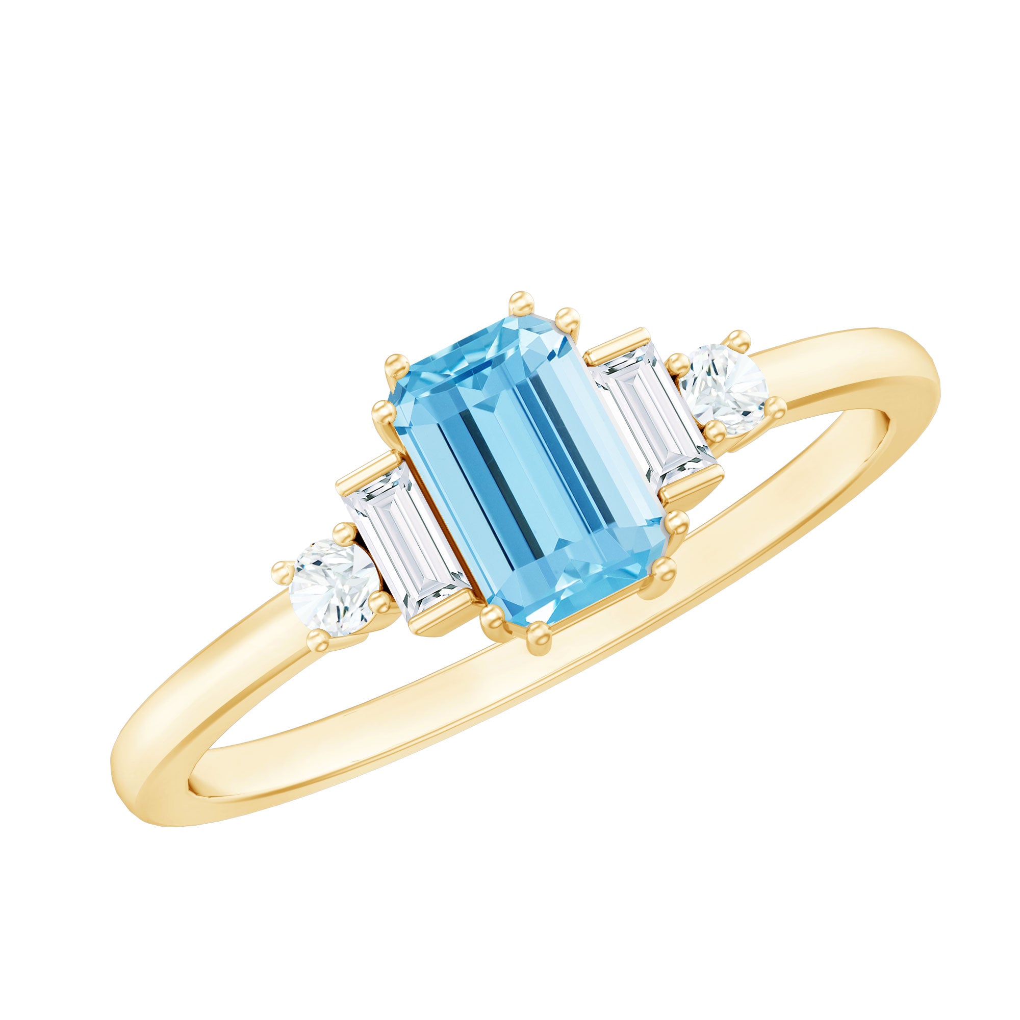 3/4 CT Aquamarine Solitaire Engagement Ring with Diamond