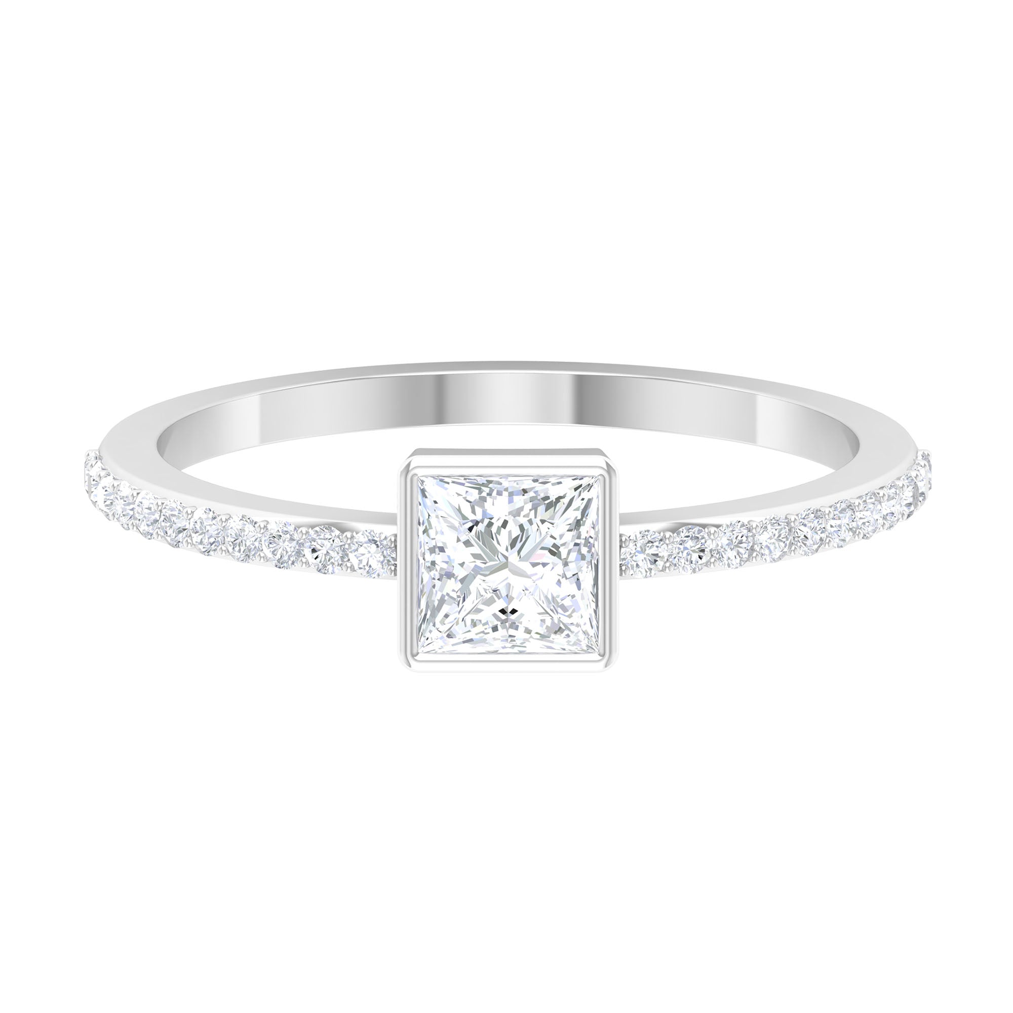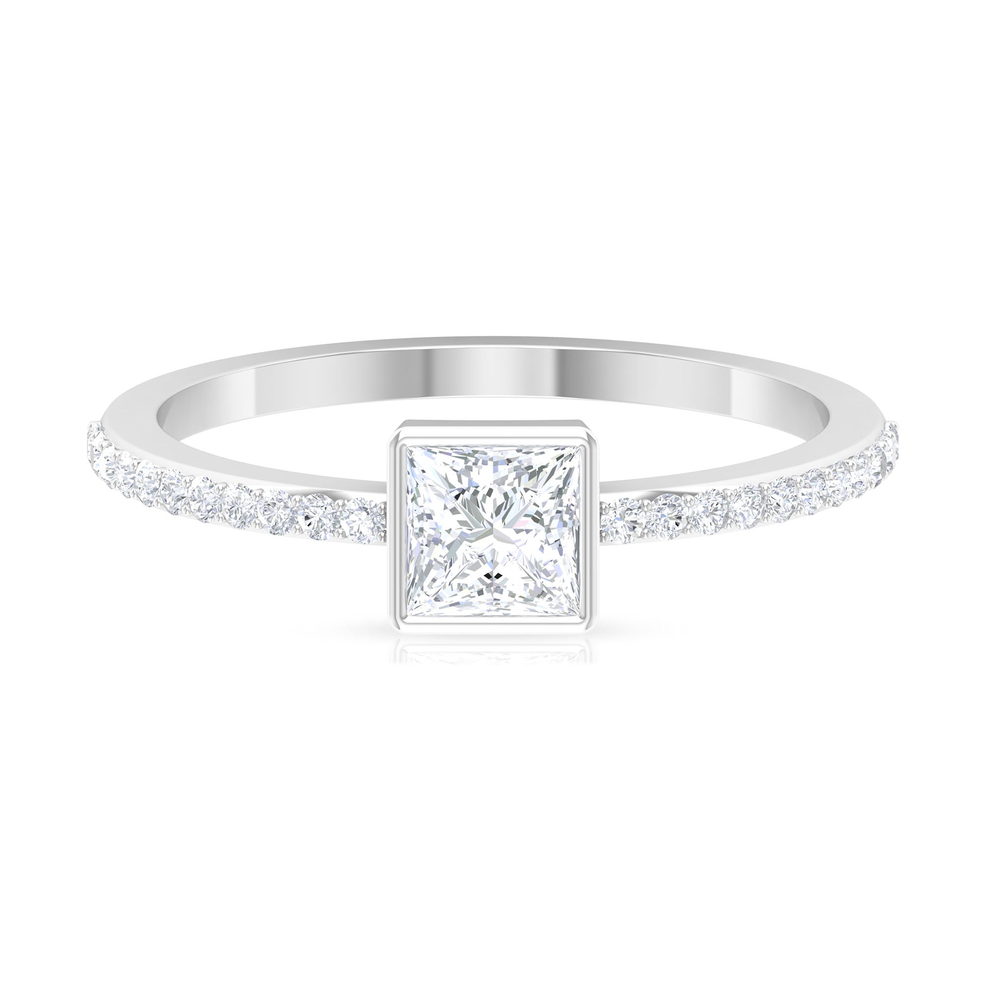 3/4 CT Bezel Set Cubic Zircon Solitaire Ring with Side Stones