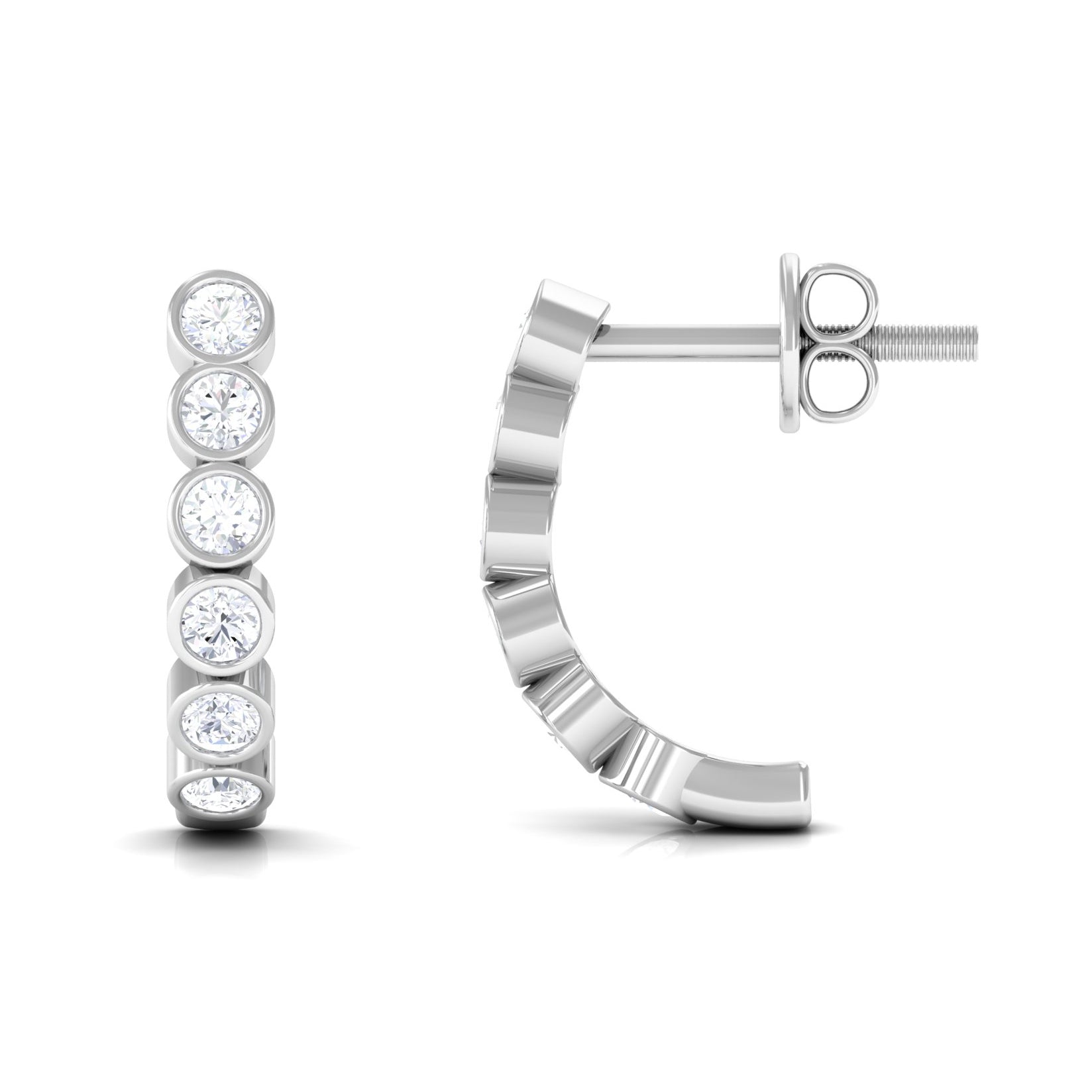 3/4 CT Bezel Set Round Moissanite Simple J Hoop Earrings