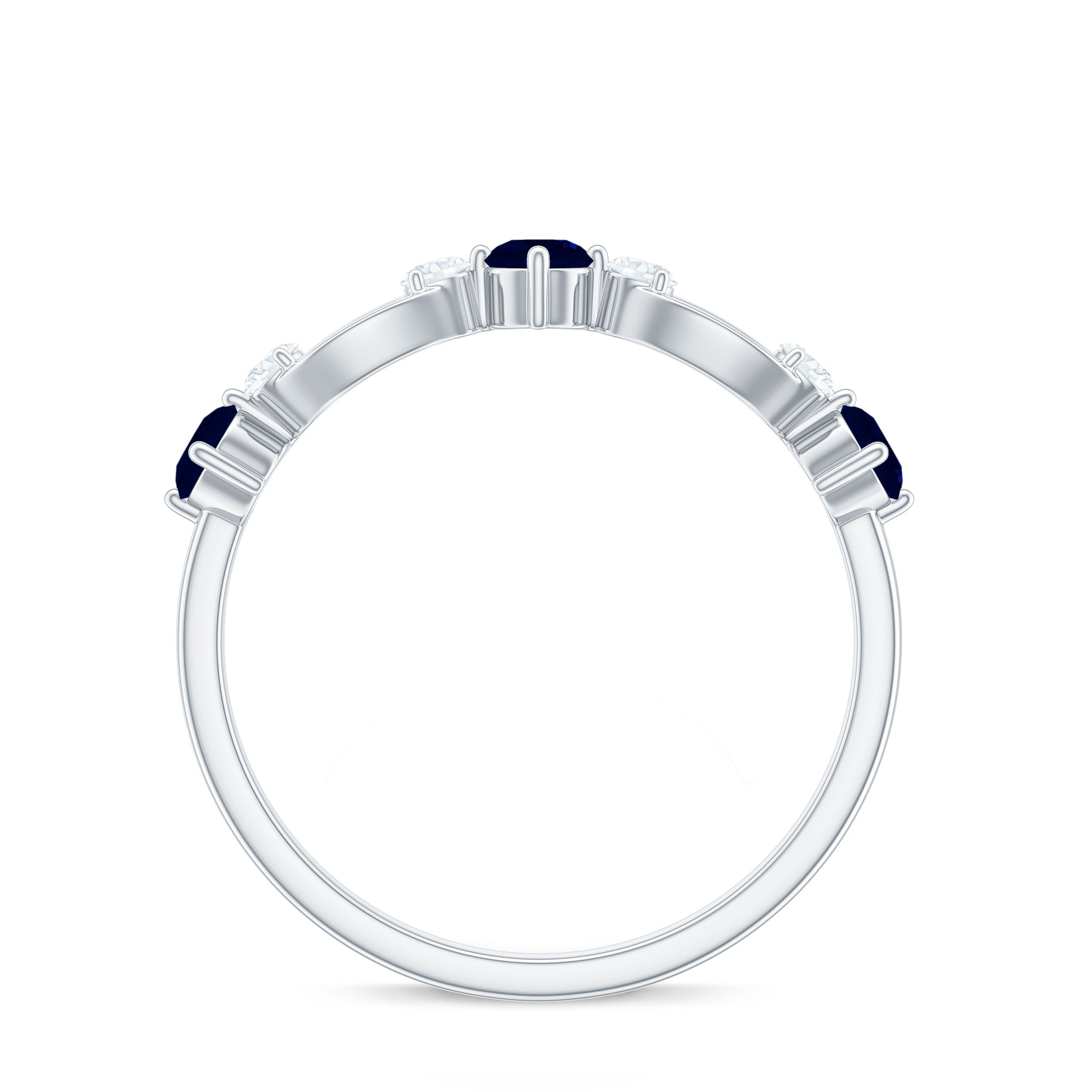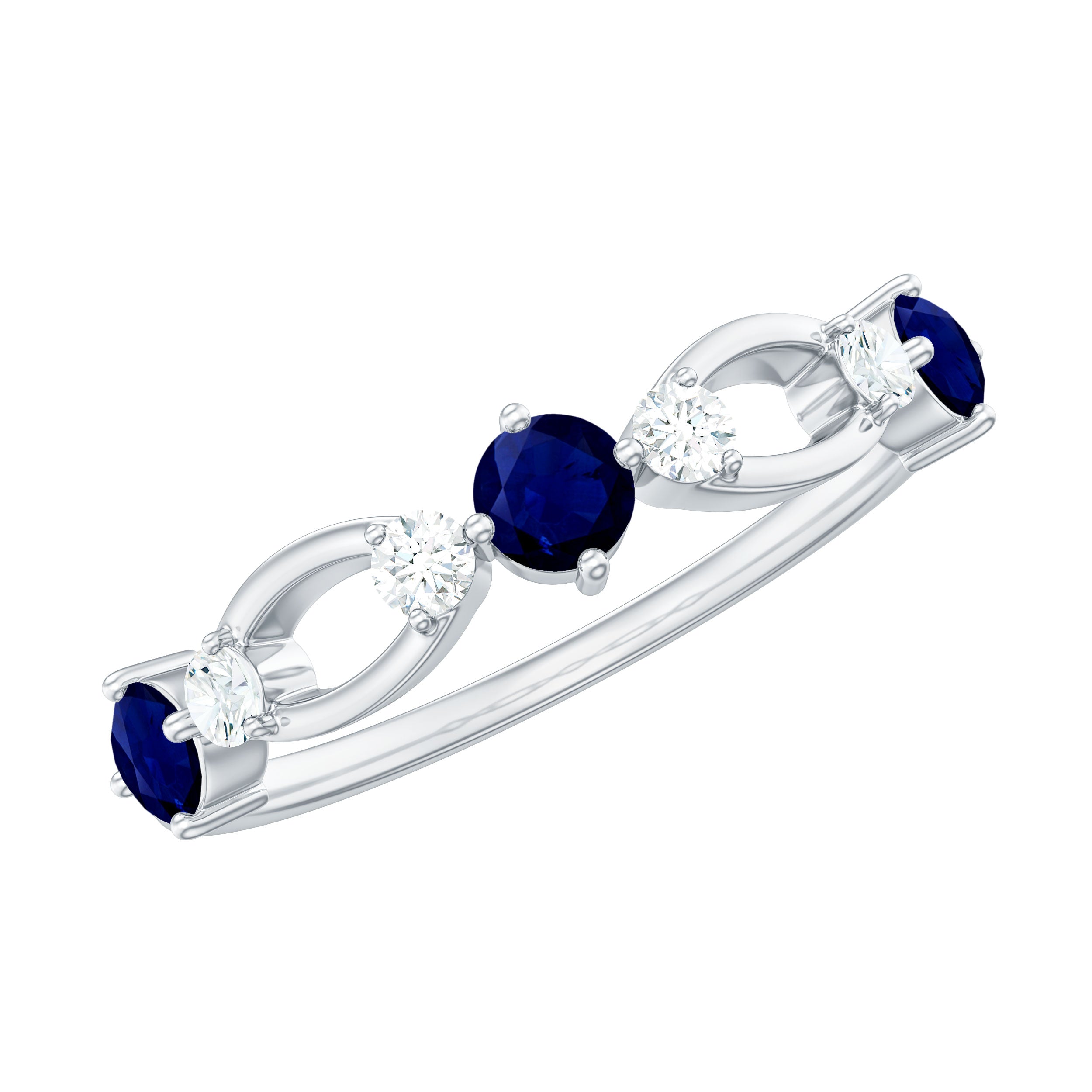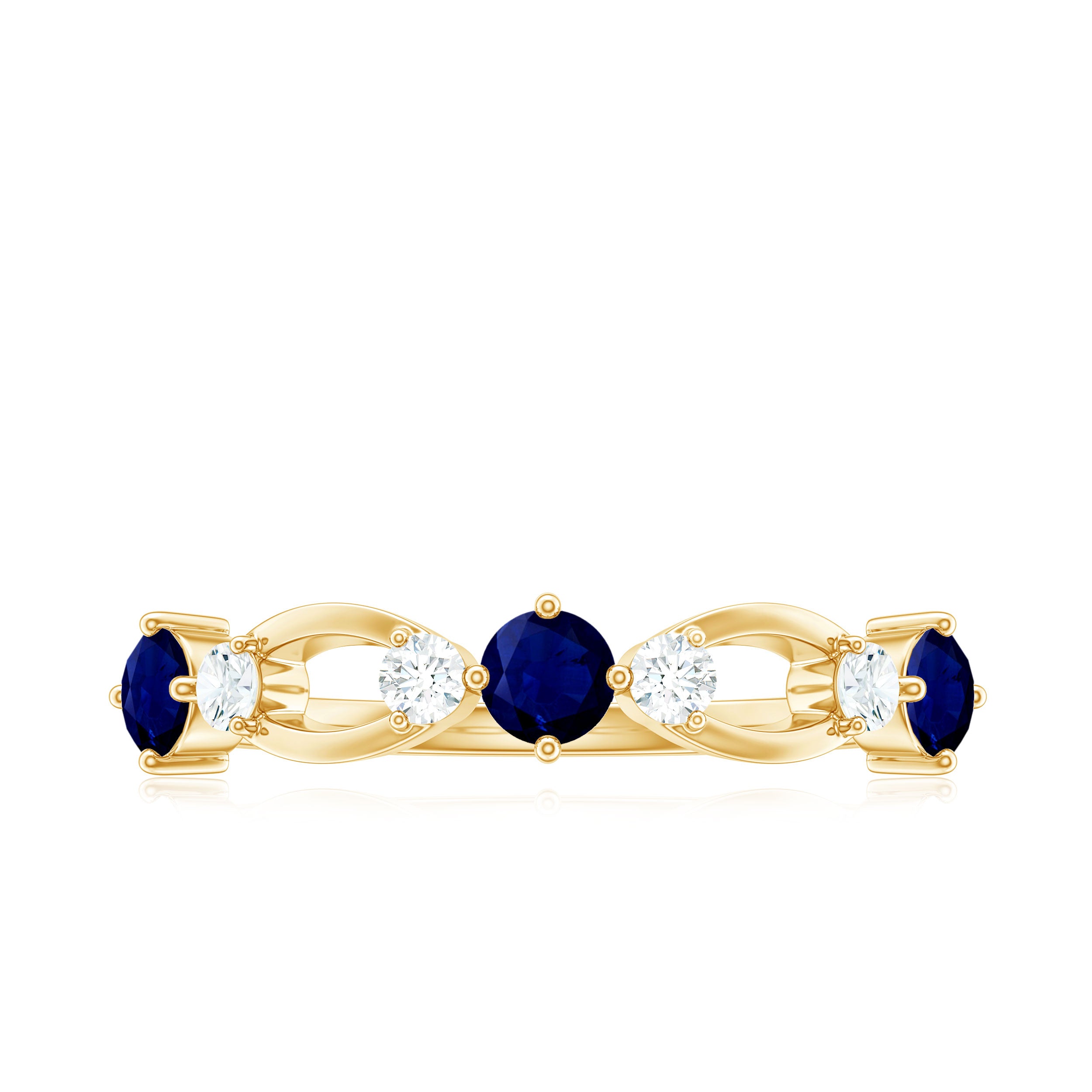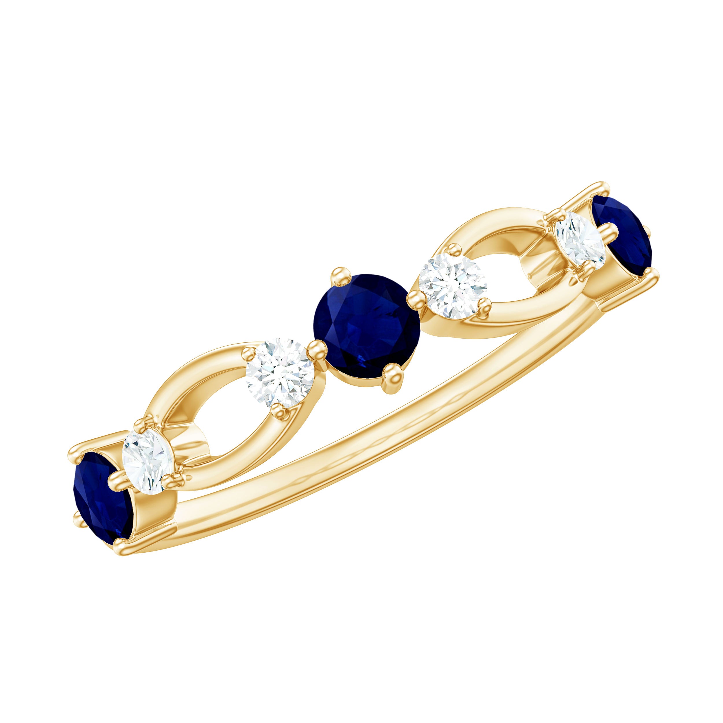 This sleek and elegant Half Eternity Ring has Round Shape Blue Sapphire in Prong Setting and Diamond is a stunning gemstone jewelry for you.