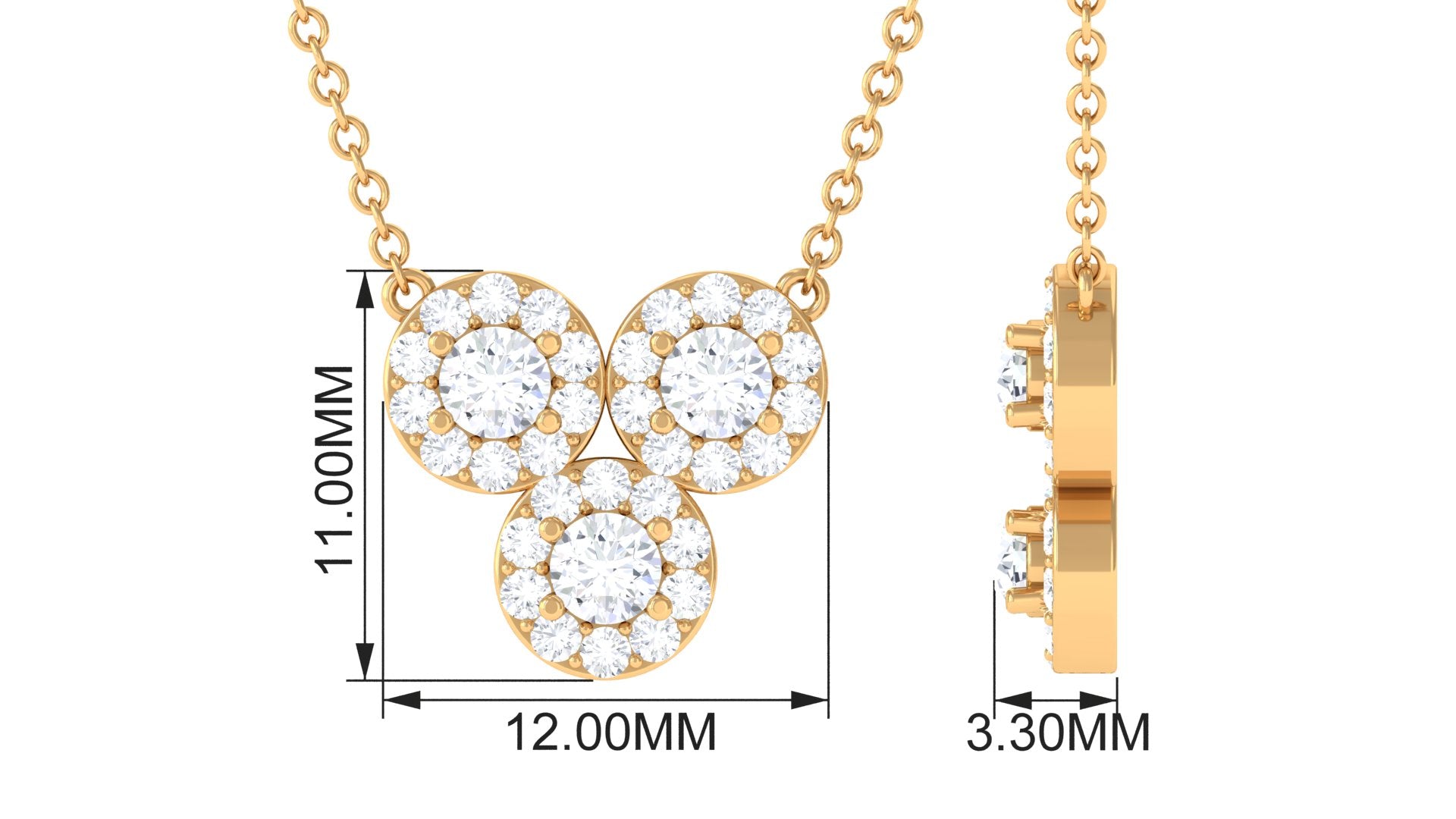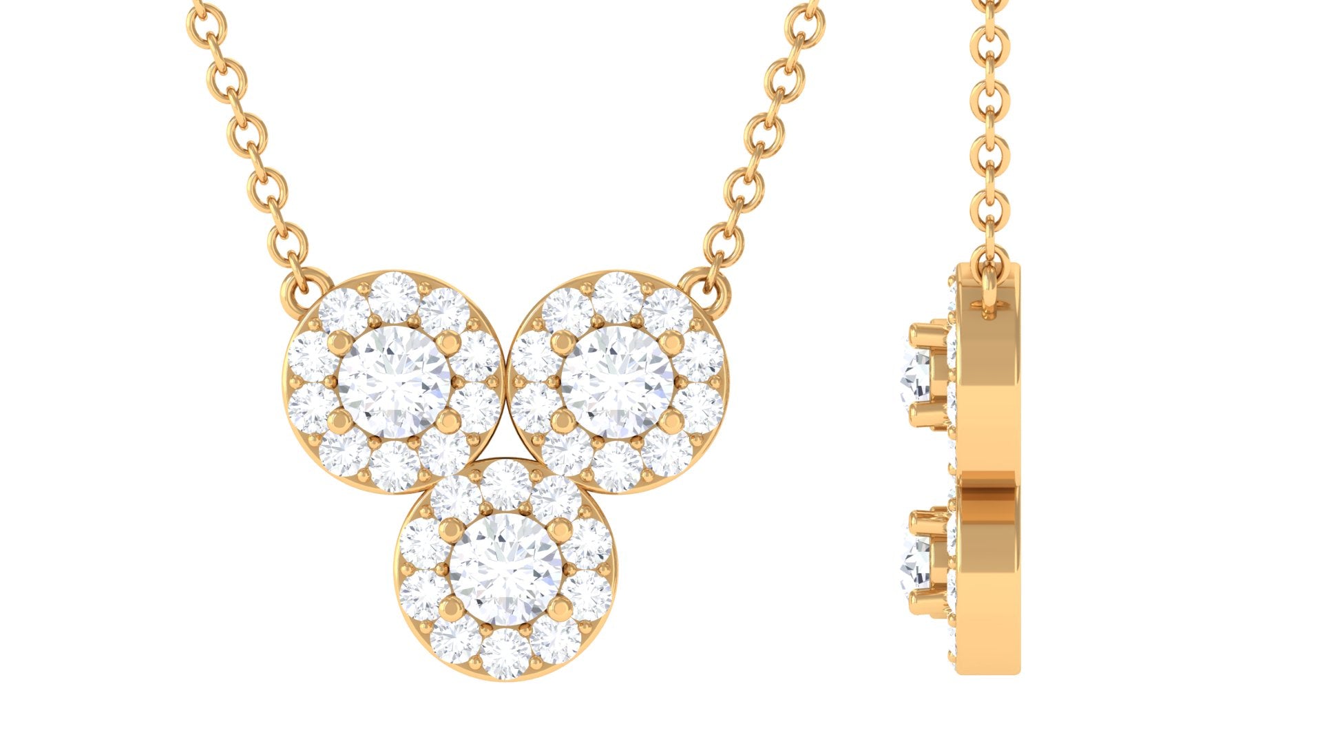 3/4 CT Certified Moissanite Trio Gold Necklace with Halo