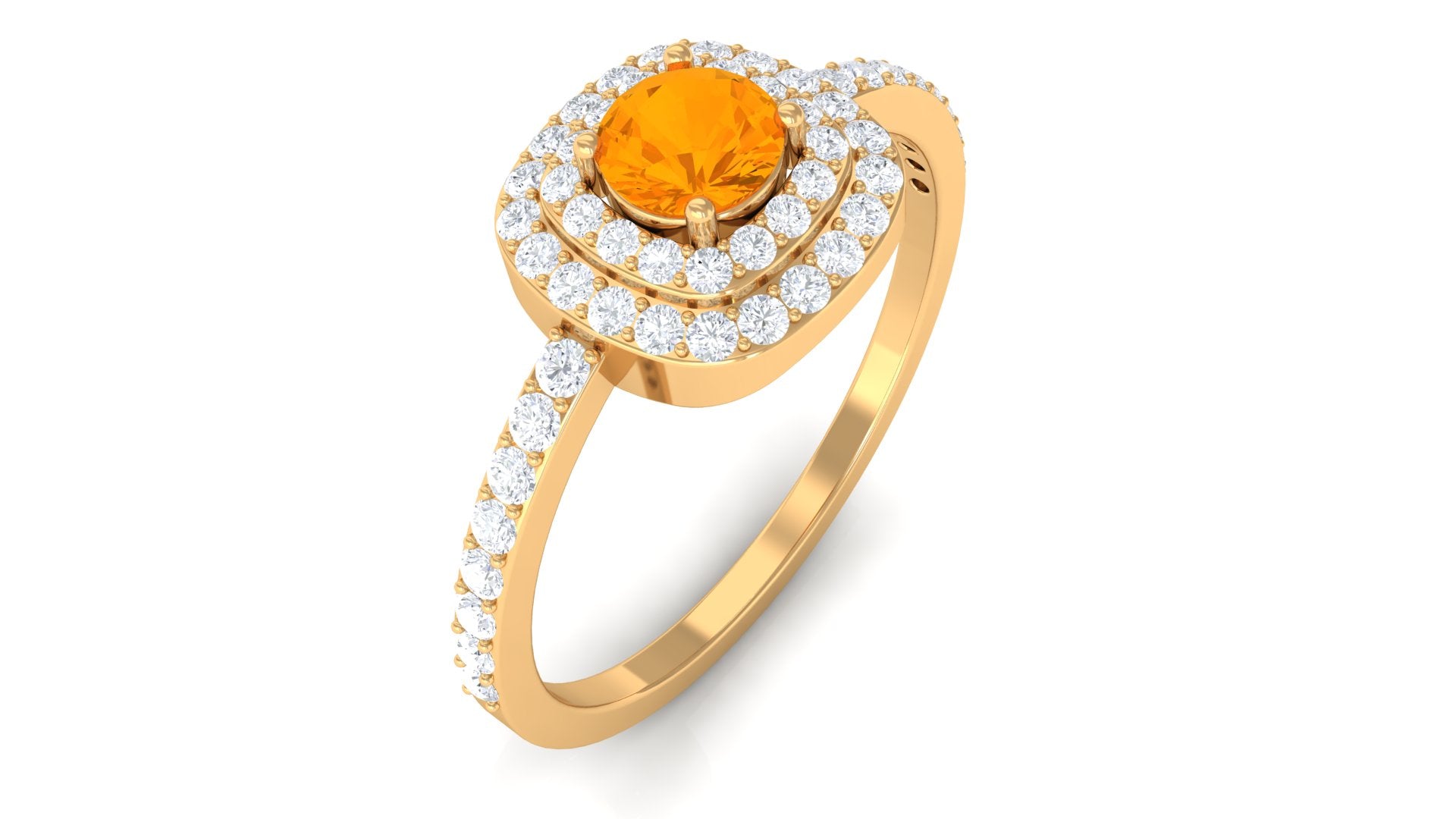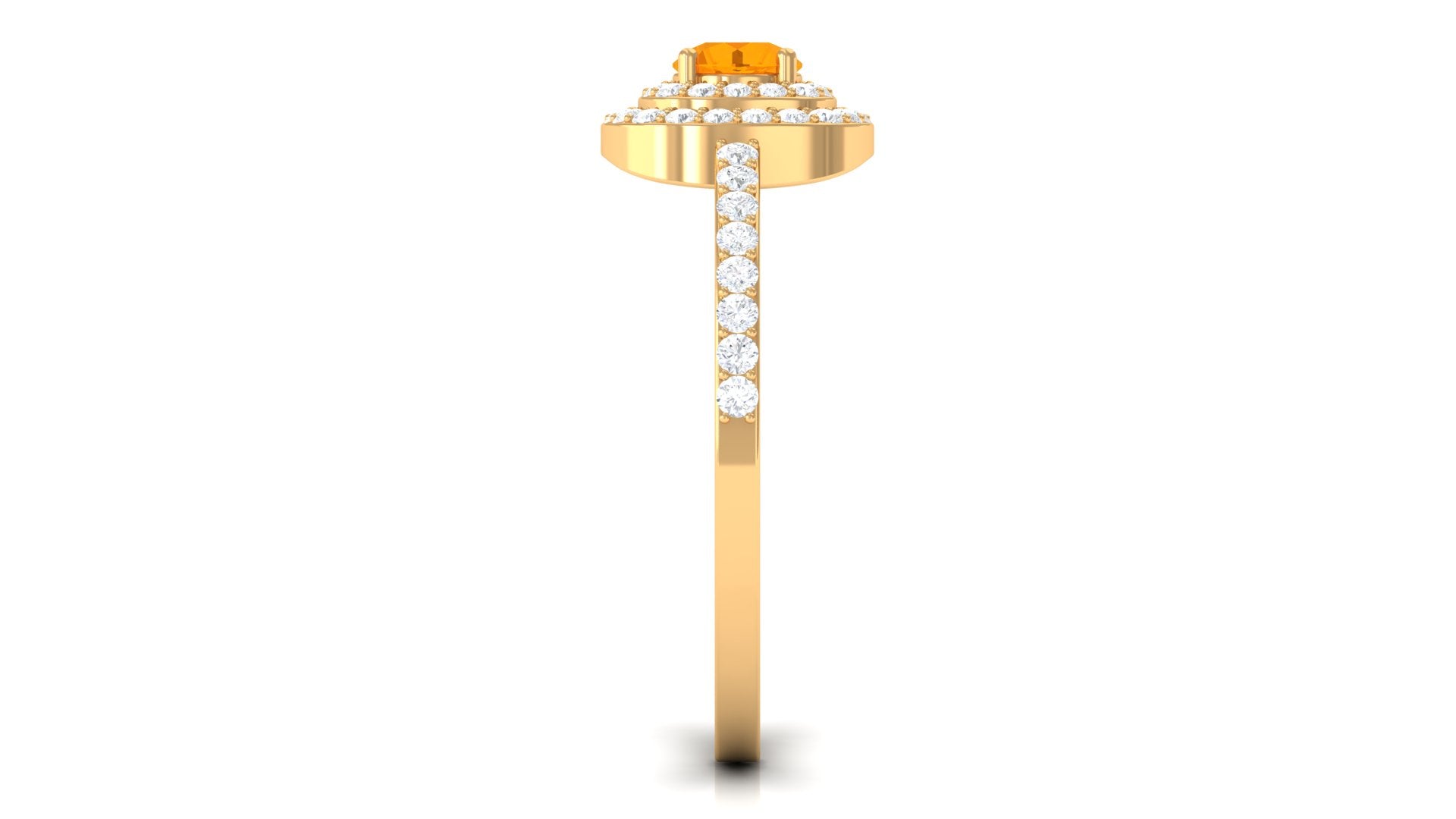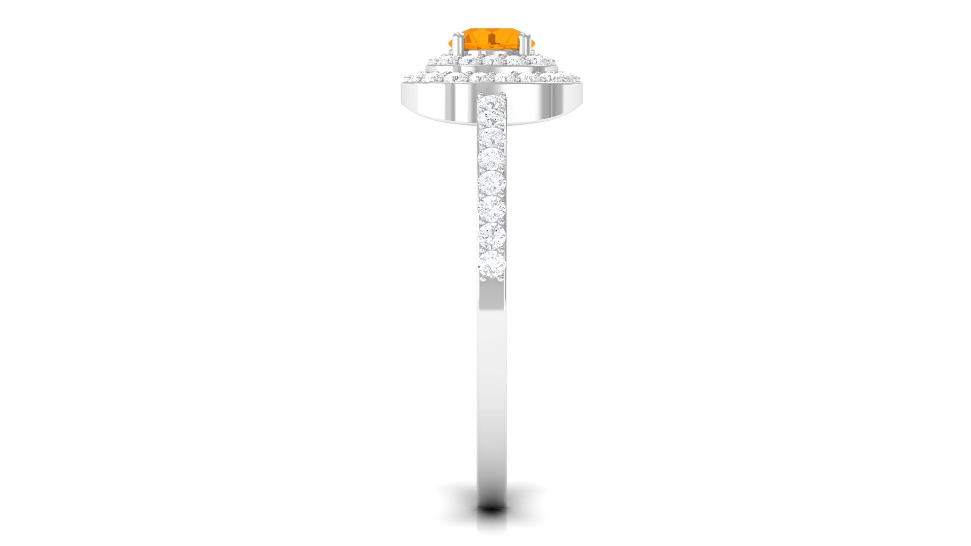 3/4 CT Classic Fire Opal Double Halo Engagement Ring with Diamond