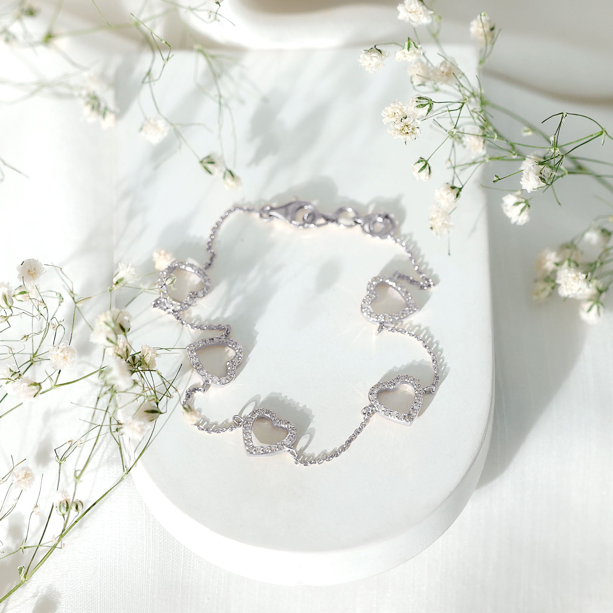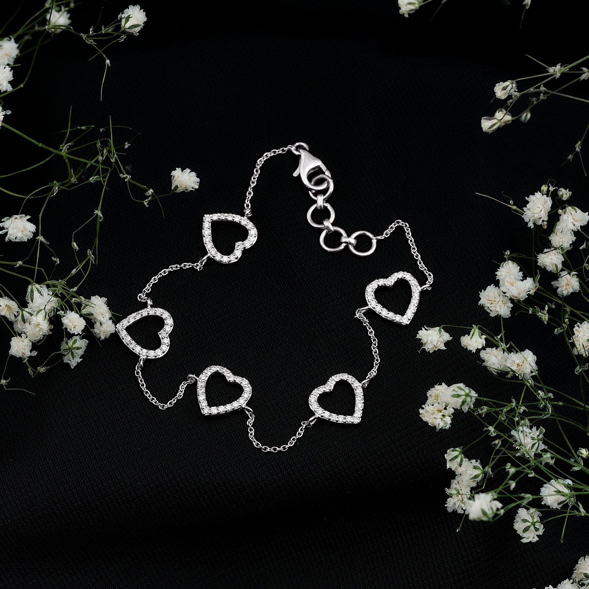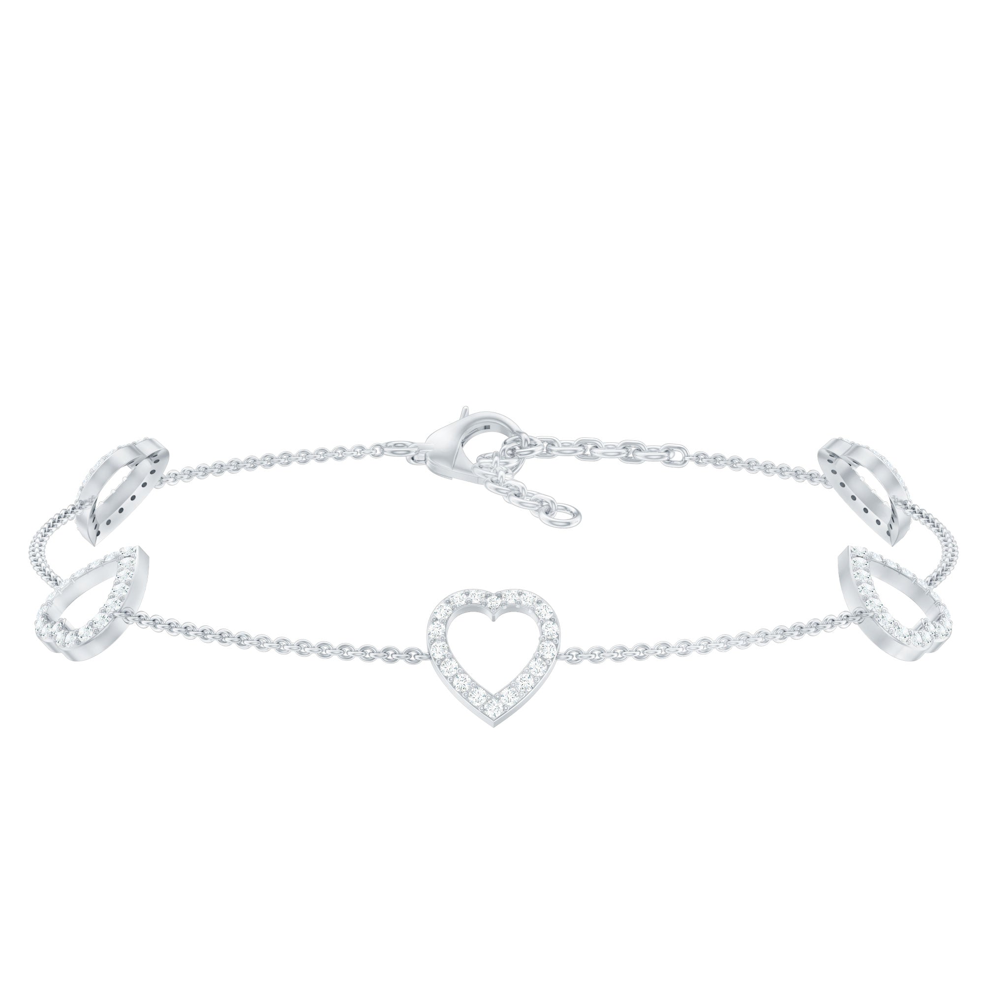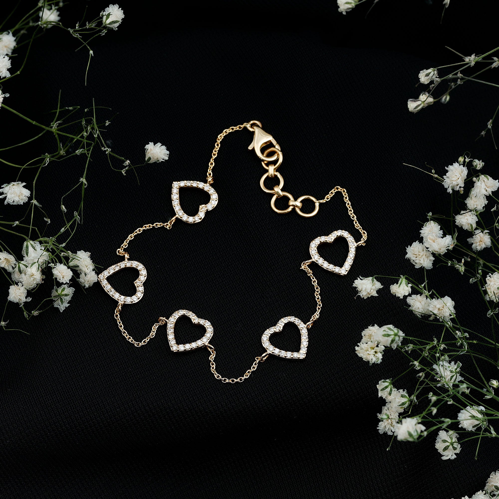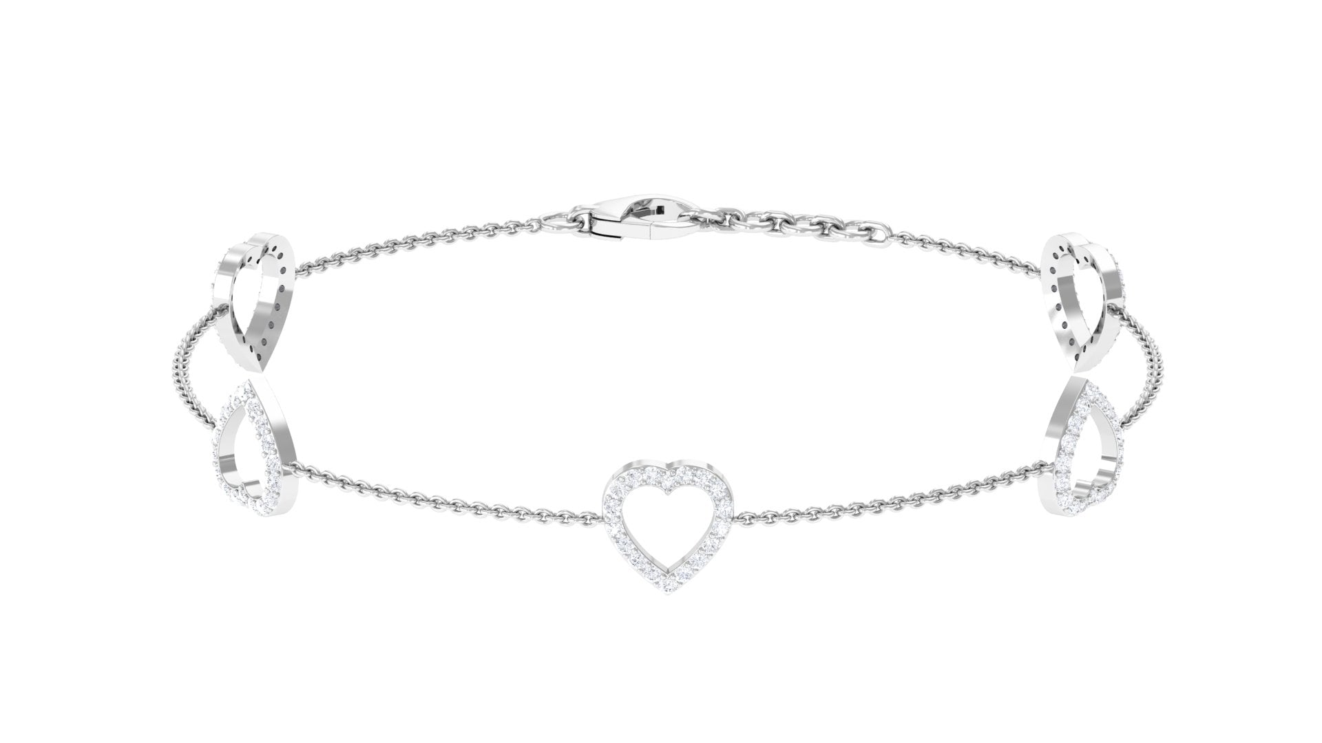 As a universal symbol of love, this Diamond Chain Bracelet is all set to steal your heart with a loving feeling into every moment. As a unique and stylish accessory, this Bracelet is designed to turn heads and make a statement on your wrist. As a classic charm, this Bracelet is adorned with Open Heart Shapes that are decorated with Round brilliant cut Diamonds in Pave Setting. This Station Chain Bracelet has a minimalist charm that, when wrapped around your wrist, has a romantic and sentimental symbolism. It is a quite essential statement style that appreciates delicate and dainty grace, exuding effortless luxury. Here is a tip to your arm candy that might be waiting to look gorgeous with this beautiful Sweetheart Bracelet, with its ultimate modern hue, that takes the jewelry world by storm. Firstly, for self-love, it is believed that no one loves you as you love yourself. Now comes the turn as the gifting to someone special, which is dainty enough for everyday wear or special events.
