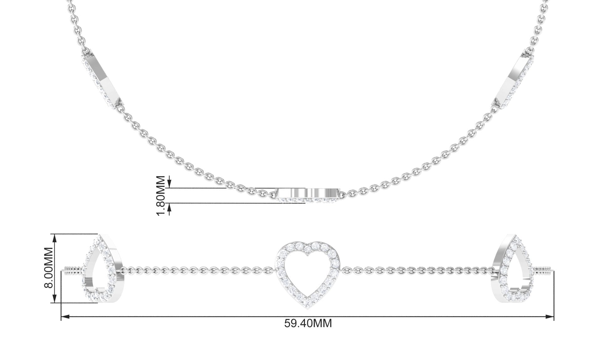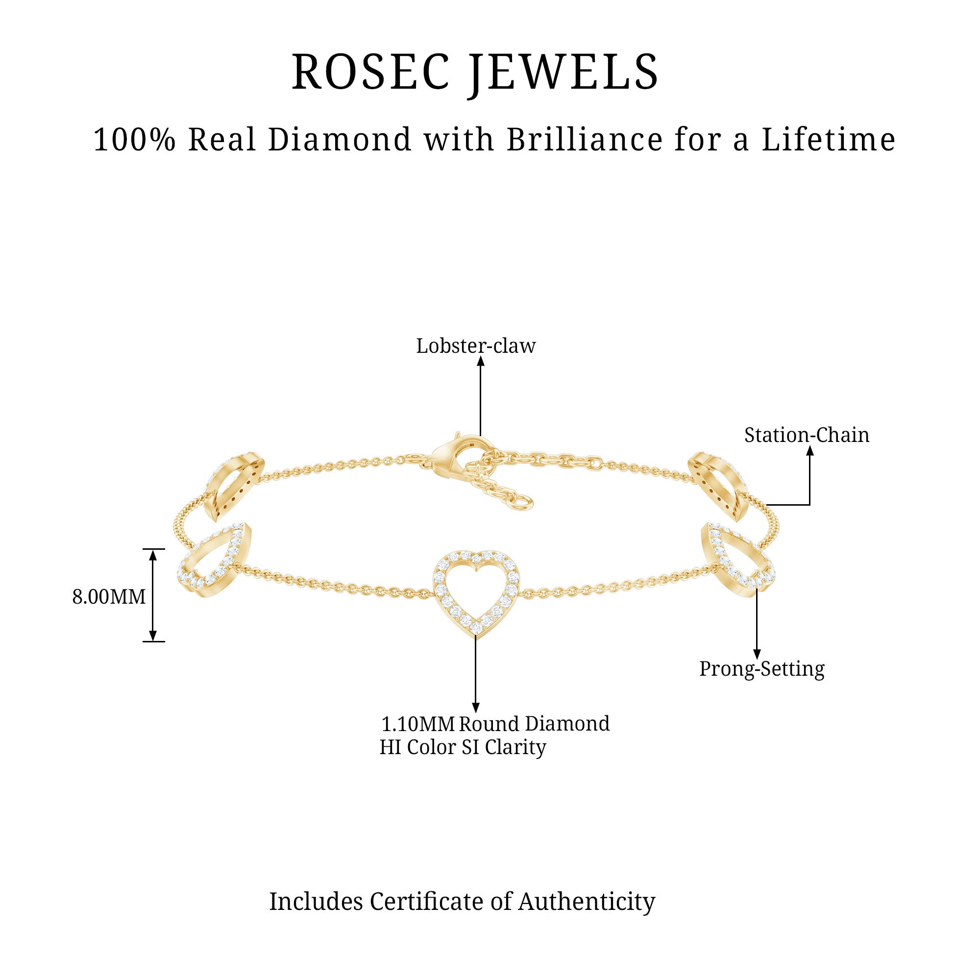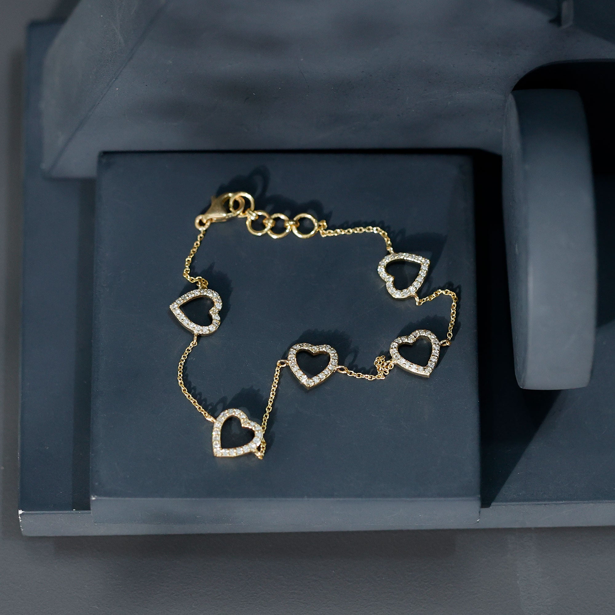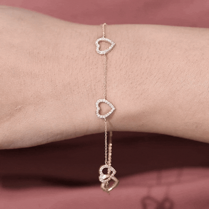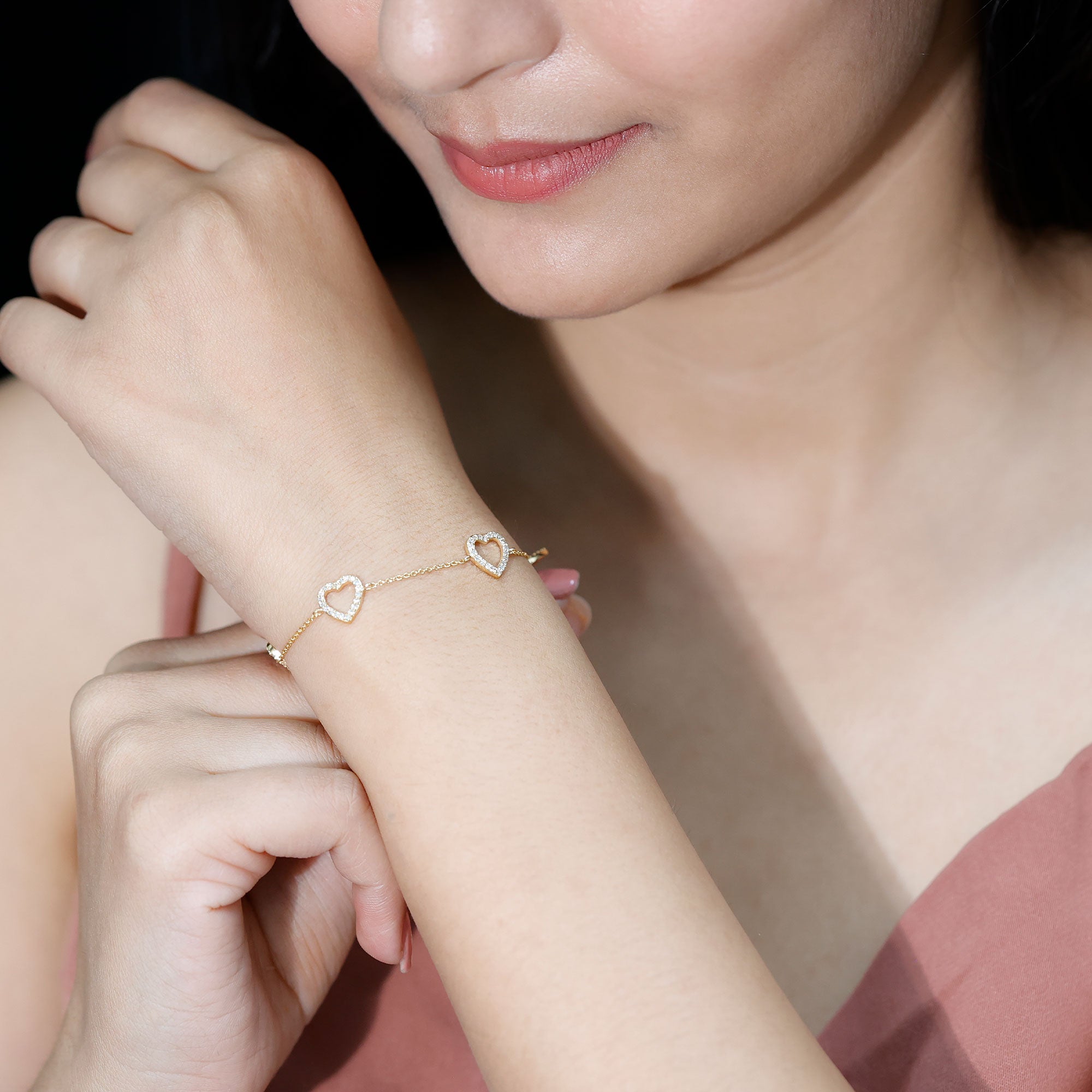As a universal symbol of love, this Diamond Chain Bracelet is all set to steal your heart with a loving feeling into every moment. As a unique and stylish accessory, this Bracelet is designed to turn heads and make a statement on your wrist. As a classic charm, this Bracelet is adorned with Open Heart Shapes that are decorated with Round brilliant cut Diamonds in Pave Setting. This Station Chain Bracelet has a minimalist charm that, when wrapped around your wrist, has a romantic and sentimental symbolism. It is a quite essential statement style that appreciates delicate and dainty grace, exuding effortless luxury. Here is a tip to your arm candy that might be waiting to look gorgeous with this beautiful Sweetheart Bracelet, with its ultimate modern hue, that takes the jewelry world by storm. Firstly, for self-love, it is believed that no one loves you as you love yourself. Now comes the turn as the gifting to someone special, which is dainty enough for everyday wear or special events.