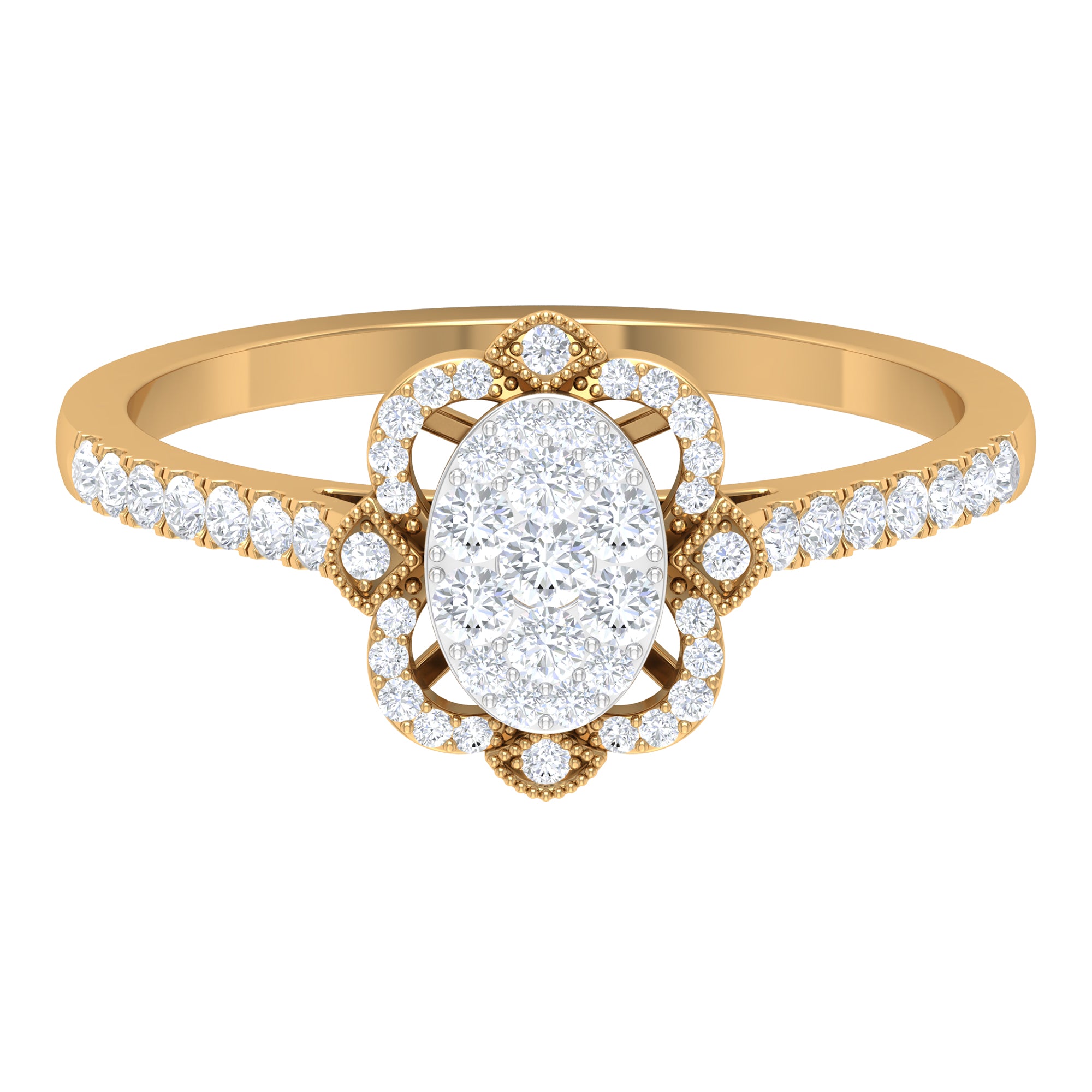 Make a Statement with this Vintage Diamond Ring featuring Round Cut Diamond set in Illusion Setting adorned in Solid Gold.