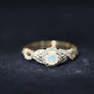 Real Ethiopian Opal Diamond Vintage Looking Engagement Ring with Criss Cross Shank