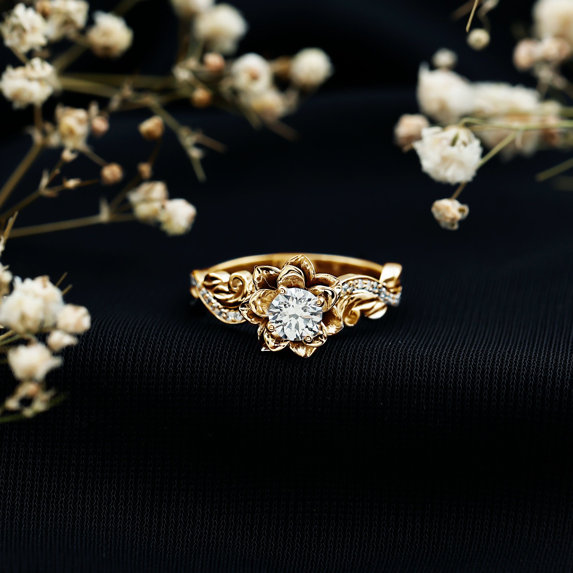 Certified Flower Inspired Moissanite Engagement Ring For Women