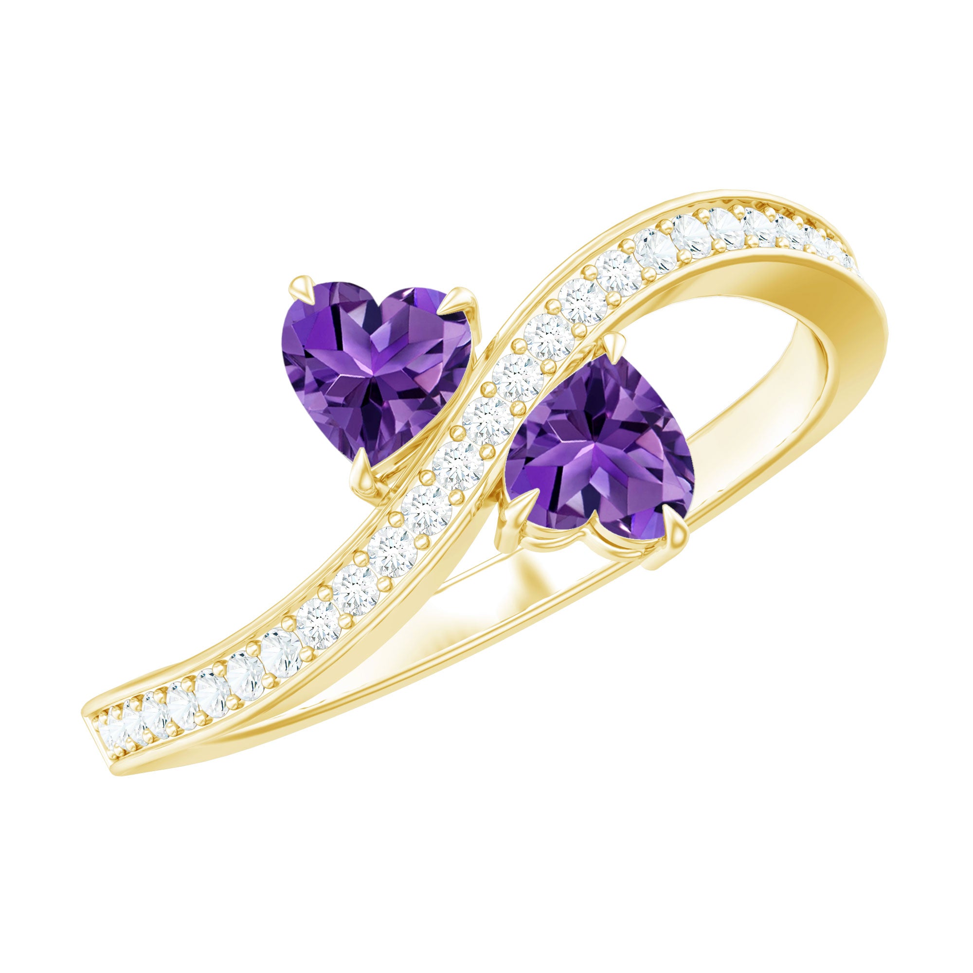 3/4 CT Heart Shape Amethyst Two Stone Engagement Ring with Diamond