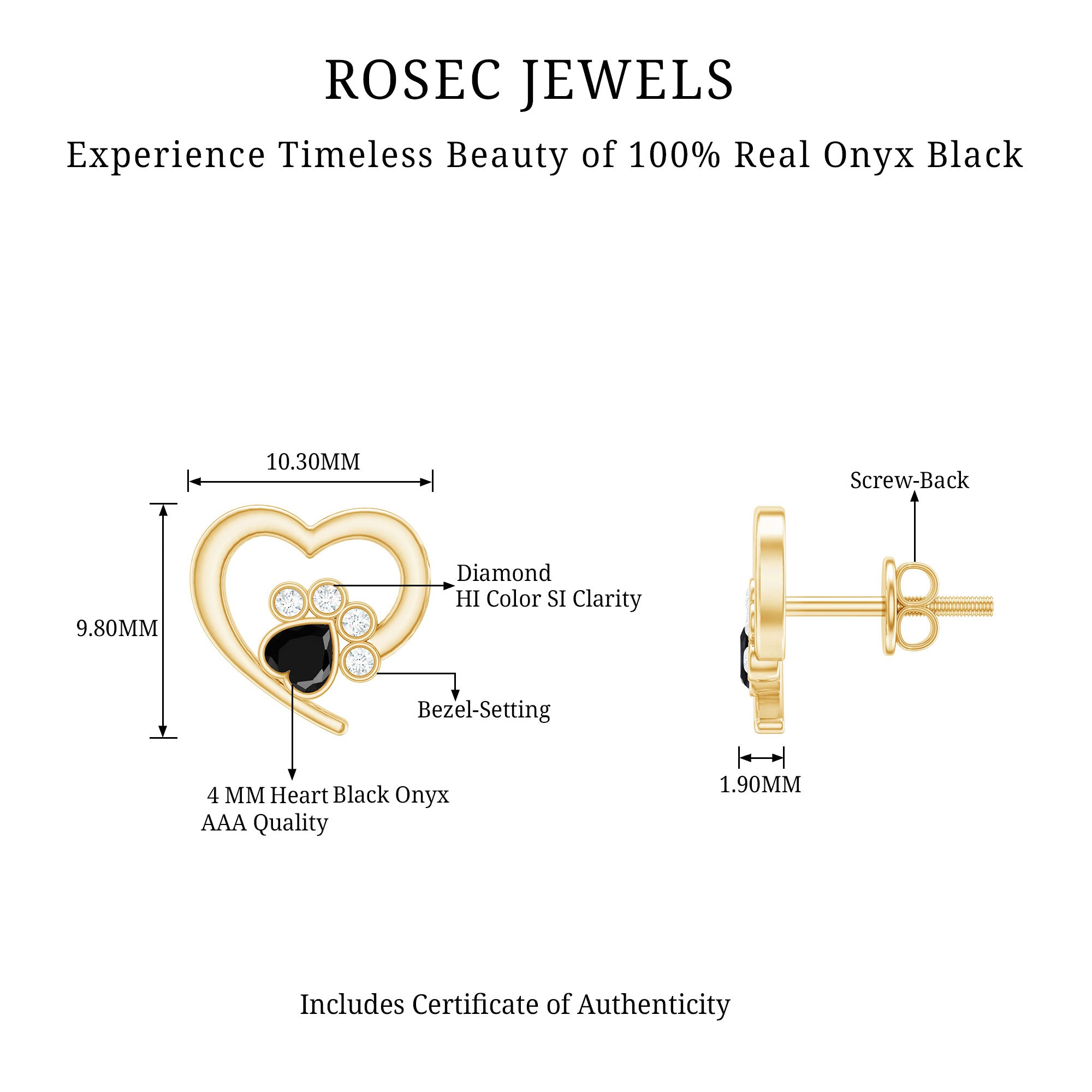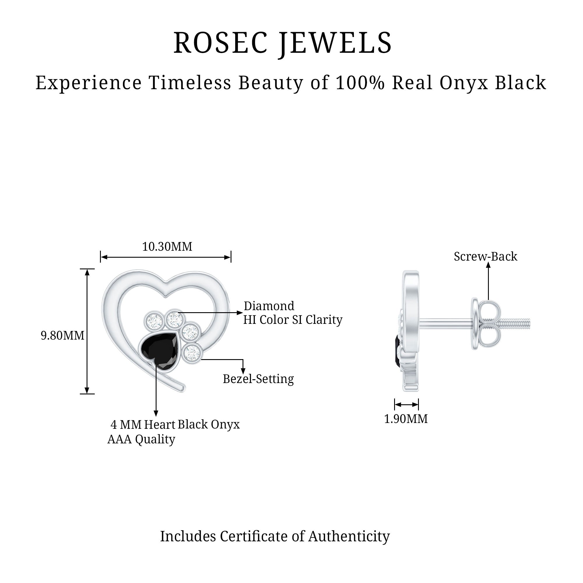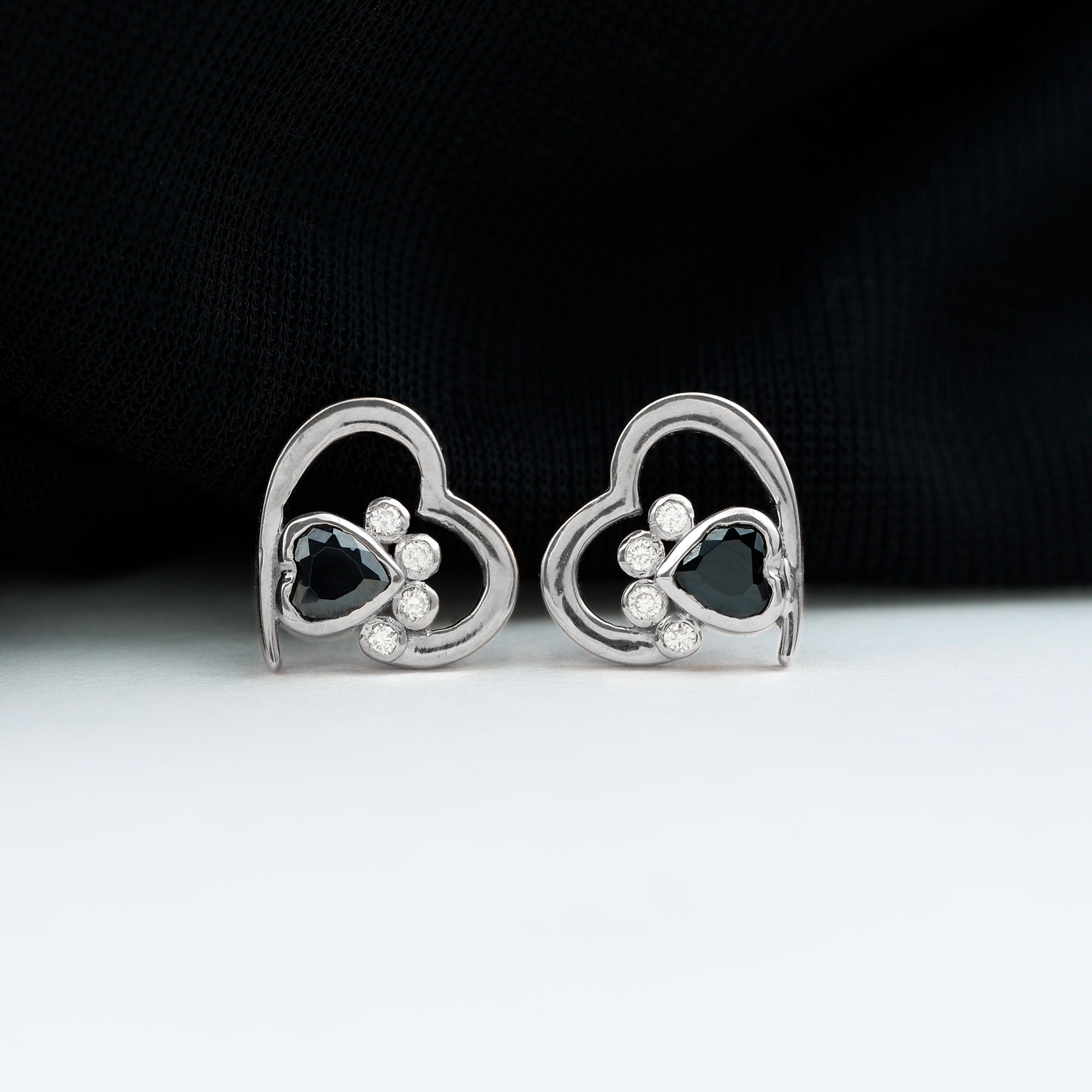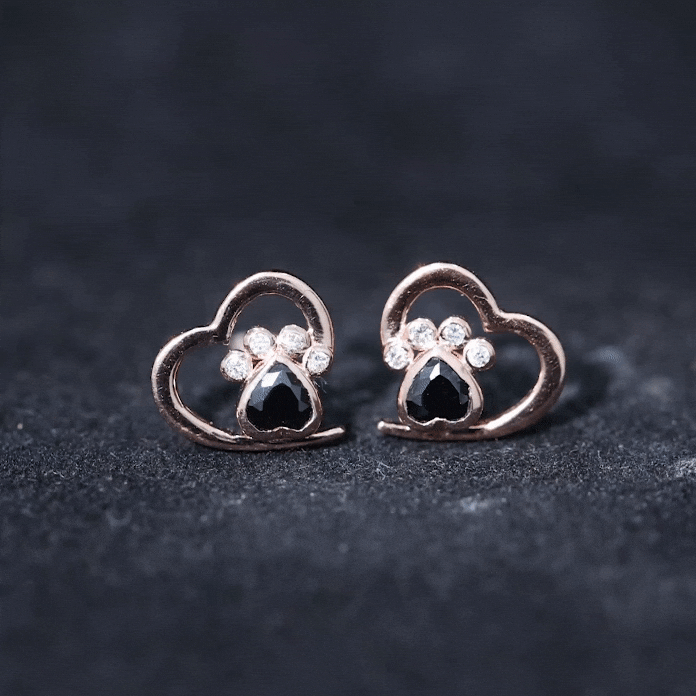 This cute pair of Paw Stud Earrings are for all the dog lovers out there. Featuring a Heart Shape Black Onyx Solitaire set against Diamond set in a Bezel Setting makes up an adorable Paw Design.