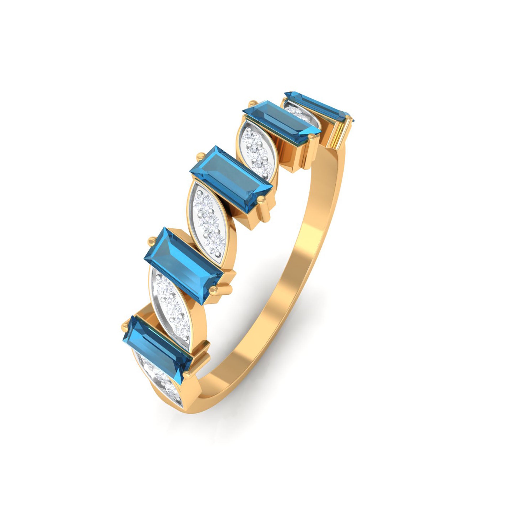 Enhance your daily style with a touch of sophistication through this exquisitely designed Blue Topaz Eternity Ring. Crafted to be both understated and striking, it showcases a refined arrangement of baguette cut london blue topaz and round diamond stones (set in a marquise frame) in an alternating pattern. Each stone is meticulously set in a secure prong setting, providing the Wide Eternity Ring with a sleek and polished appearance. The striking contrast between the bold blue topaz and the shimmering diamonds imparts a timeless and distinctive quality. This Half Eternity Band is an excellent option for stacking or wearing on its own. It offers a comfortable fit on the finger and complements both casual and formal attire. Whether you are going to work or attending a special event, this London Blue Topaz Ring brings just the right touch of elegance. It also serves as a thoughtful gift, particularly for individuals born in a December month. Whether you are treating yourself or searching for a meaningful present, this ring is a beautiful way to honor style, strength, and cherished moments. Designed with care and precision by Rosec Jewels, it is a piece to cherish every day.