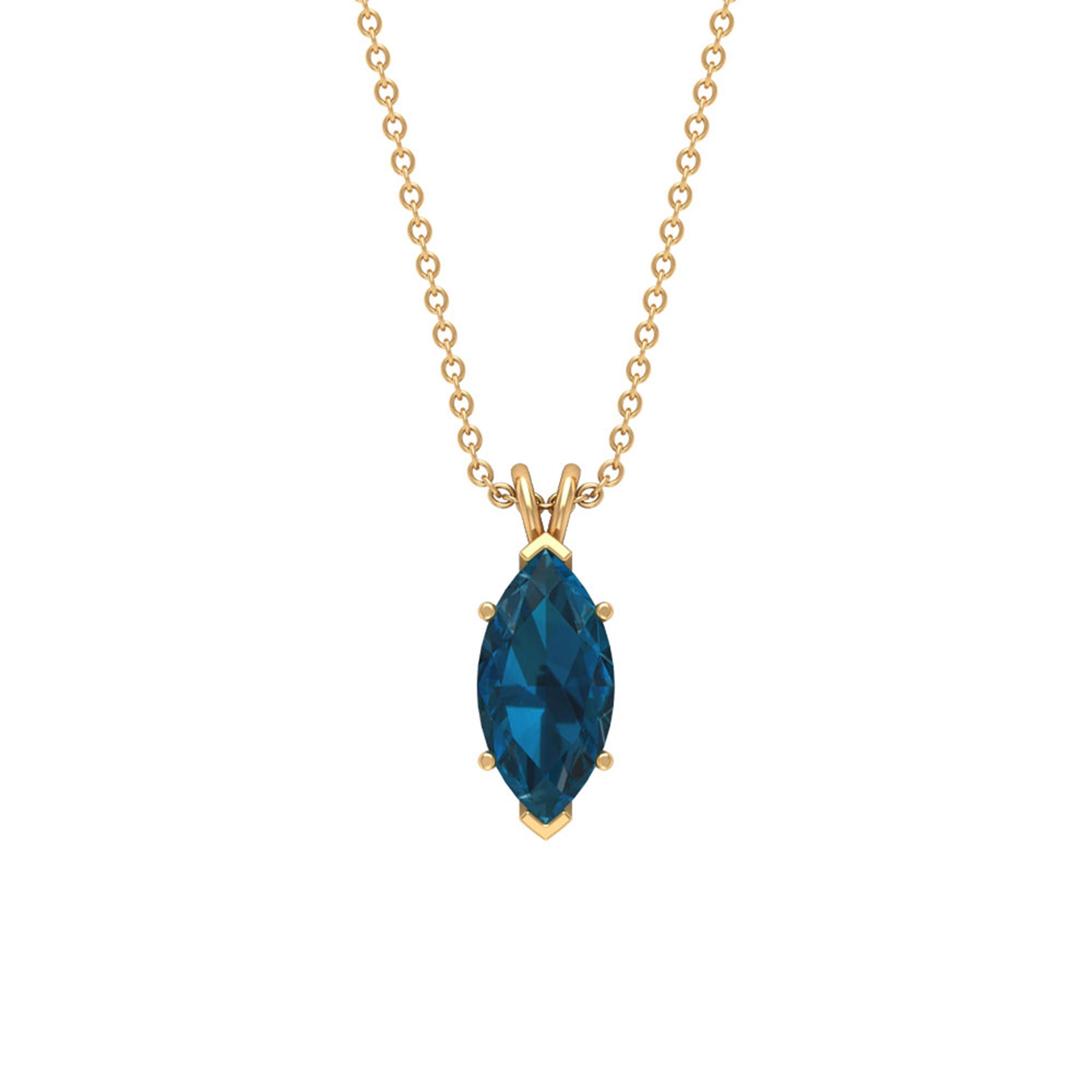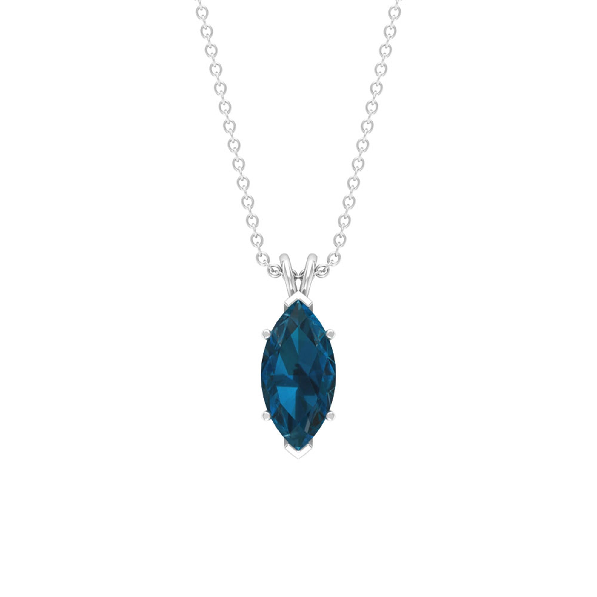 Introducing our Classic Solitaire Pendant, highlighted by a Marquise Shaped London Blue Topaz elegantly set in a prong setting. This exquisite December Birthstone Necklace offers a variety of metal choices, allowing you to personalize your jewelry to your taste and style.