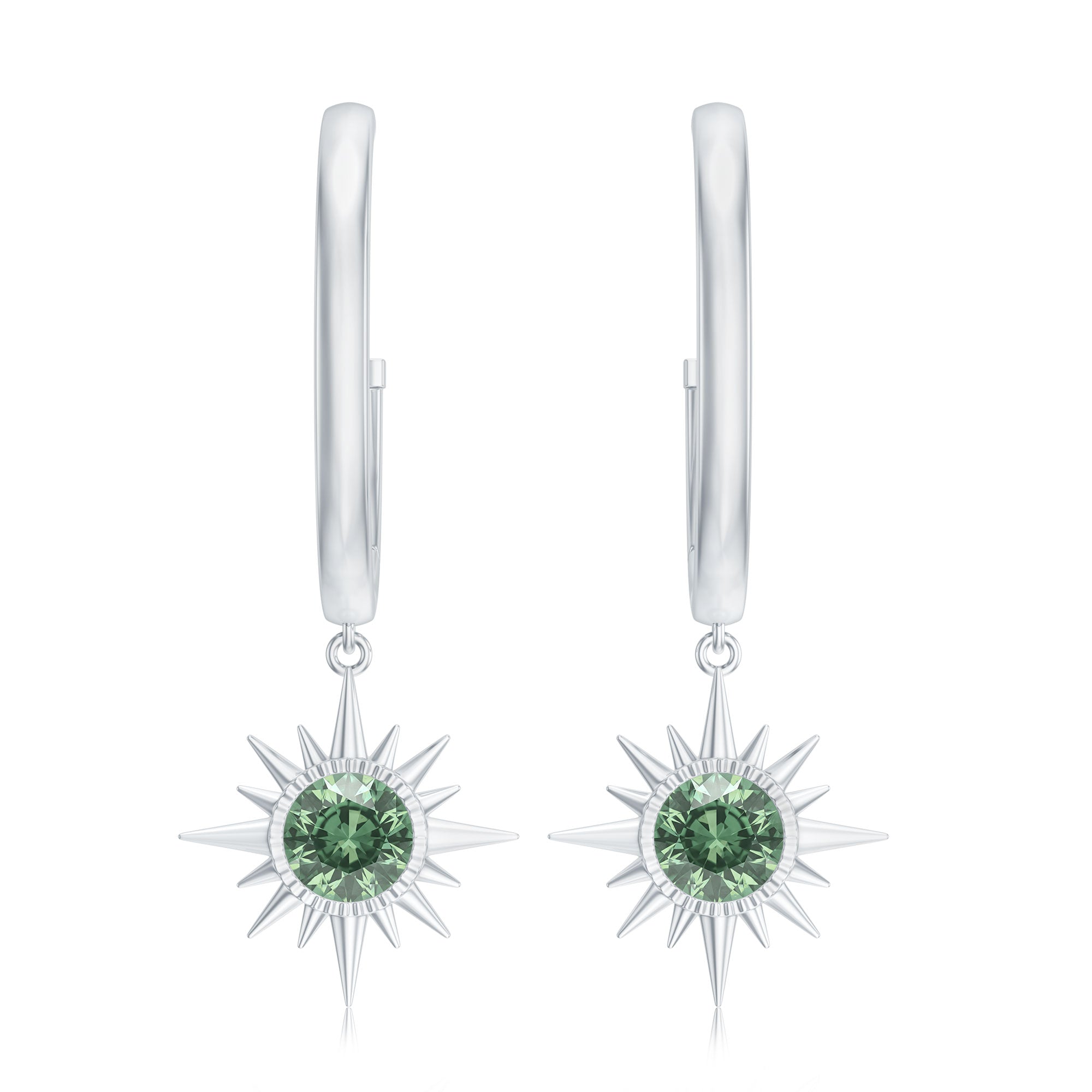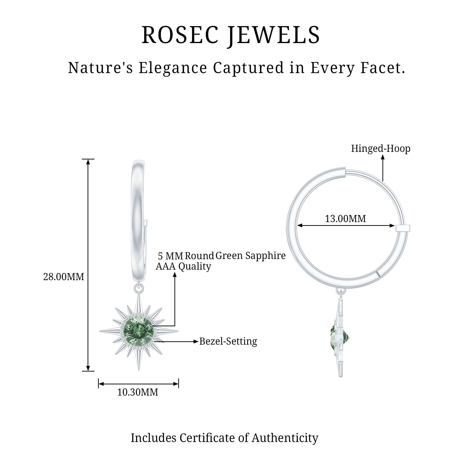 3/4 CT Milgrain Bezel Set Green Sapphire Sunburst Drop Hoop Earrings