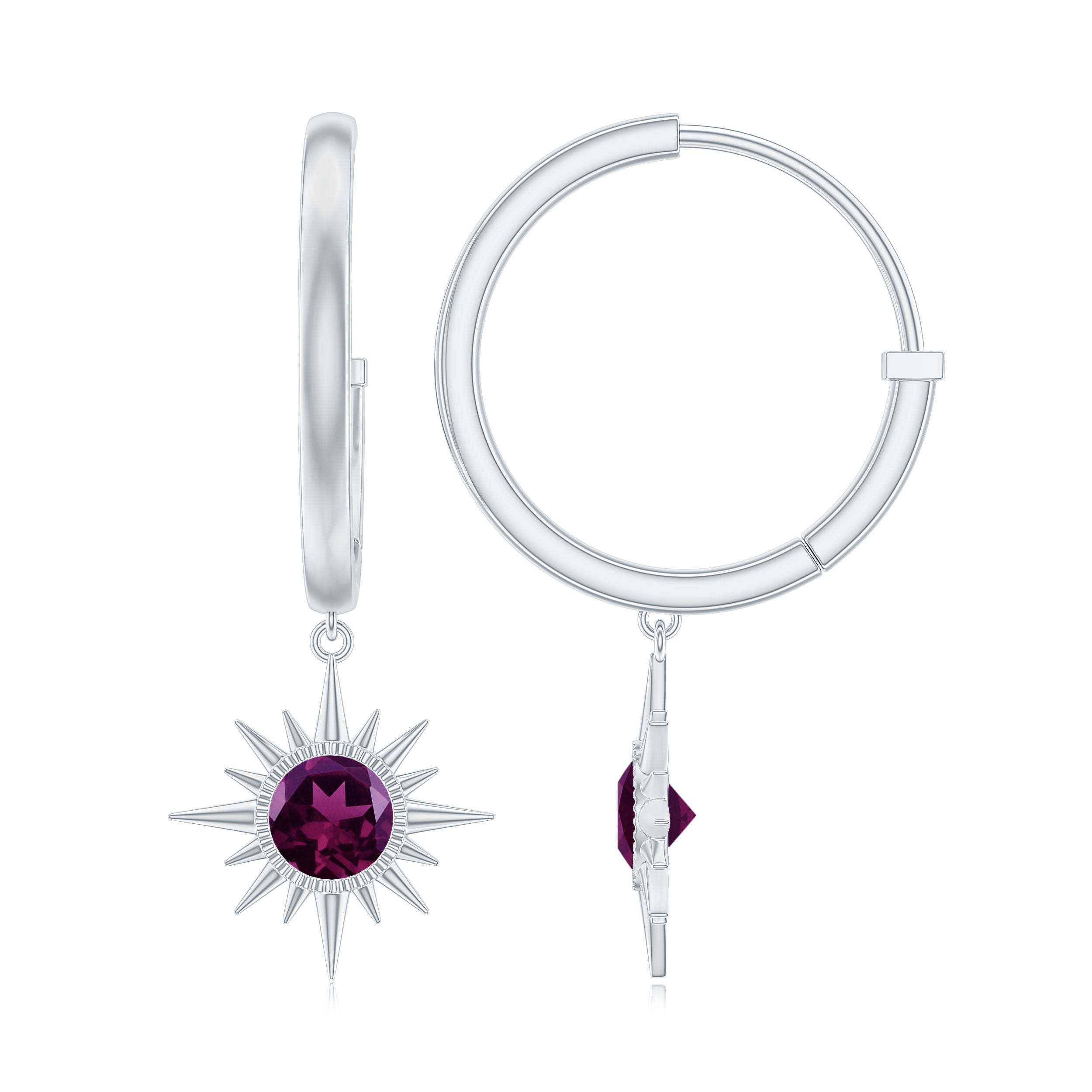 3/4 CT Milgrain Bezel Set Rhodolite Sunburst Drop Hoop Earrings