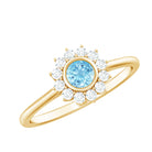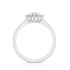 Make her go awe with this lovely Halo Promise Ring as a present. This Promise Ring is adorned with Round Shape Aquamarine in the center in a bezel setting with a Round Diamond as halo.