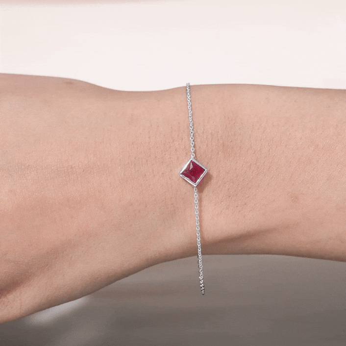 Make a stunning impression on your lady with this Minimal Solitaire Bracelet, adorned with a beautiful Princess Cut Ruby set in a durable Bezel Setting. The Solid Gold Chain Bracelet adds a touch of elegance to the overall design, making it a truly eye-catching and appealing piece of jewelry. Perfect for those born in July, this Ruby Chain Bracelet is an ideal birthday gift that is sure to be treasured for years to come. With its sophisticated design and brilliant sparkle, its the perfect addition to any jewelry collection.