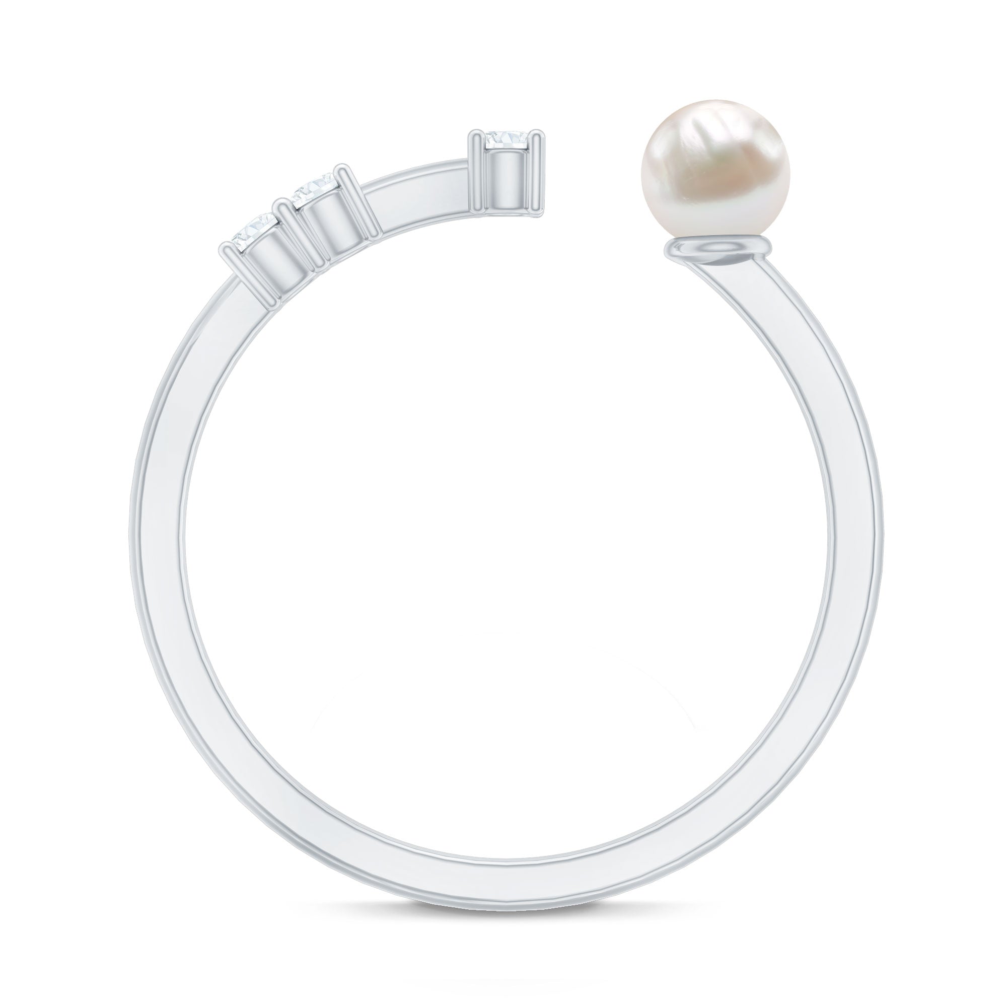3/4 CT Minimal Style Freshwater Pearl and Diamond Cuff Ring
