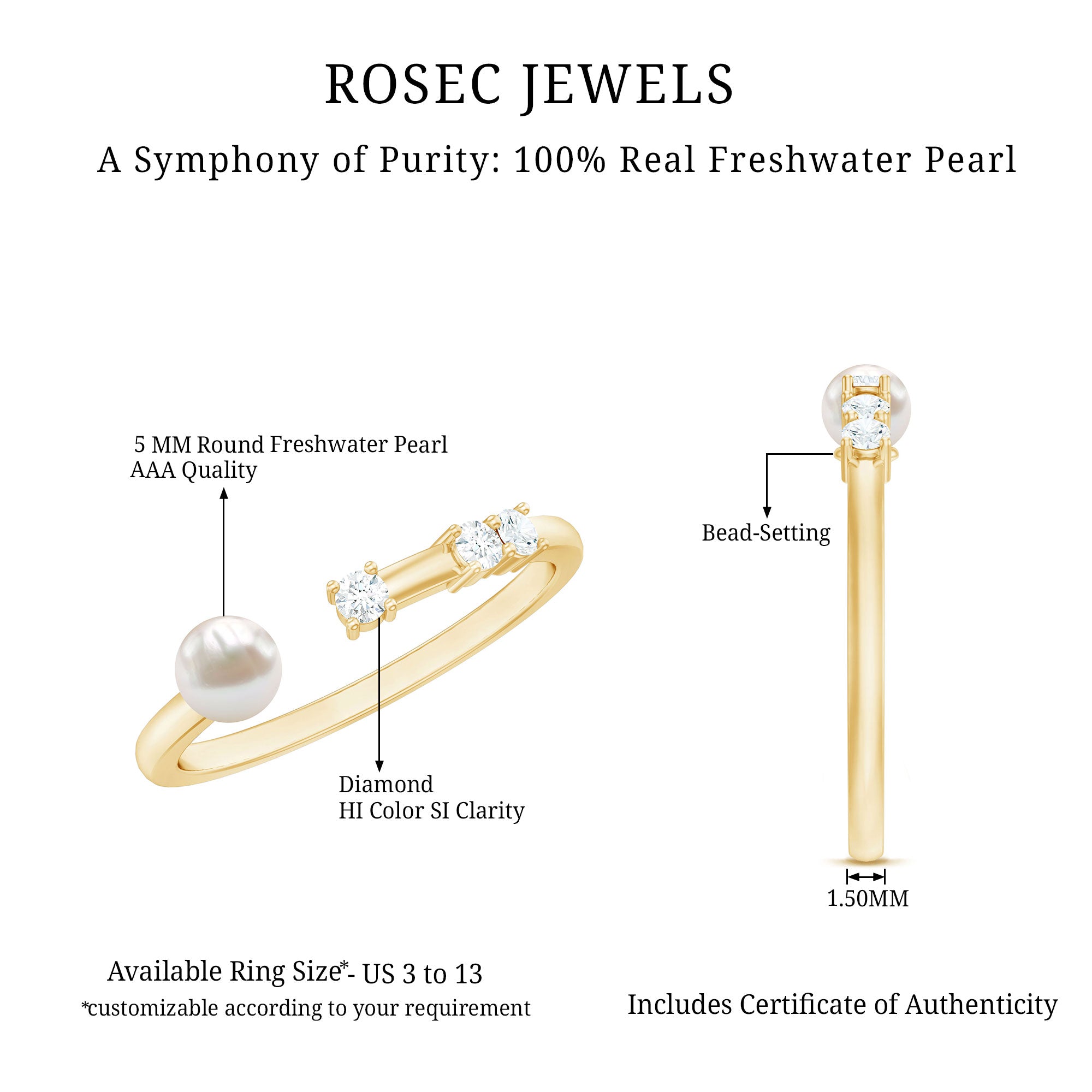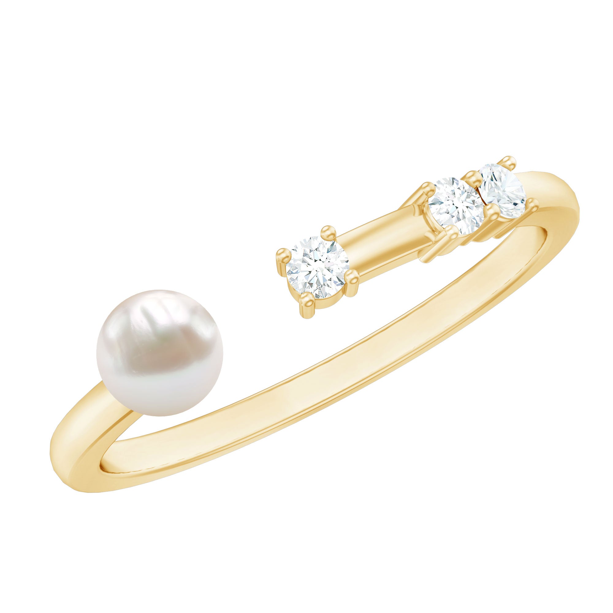 Elevate your style with the timeless elegance of our Minimal Cuff Ring, a truly exquisite accessory. This captivating piece is adorned with a lustrous Round Shape Freshwater Pearl, delicately embraced by a Bead Setting, and complemented by the sparkle of Diamonds set in a secure Prong Setting. Wearing this Freshwater Pearl Cuff Ring will bestow upon you a breathtaking look, infusing your ensemble with sophistication and grace, making it perfect for any occasion.