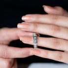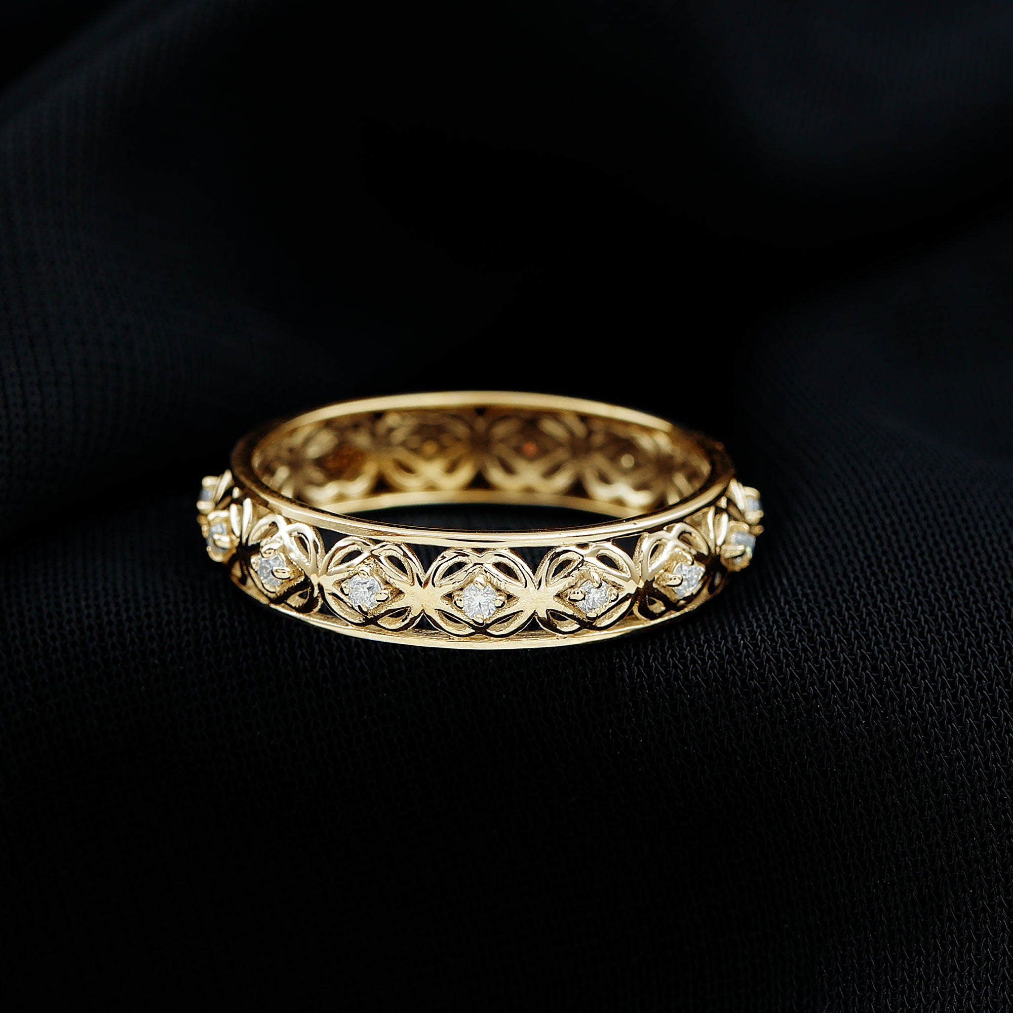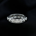 When love meets legend, the result is a masterpiece like this Celtic Wedding Band, a ring that carries centuries of meaning in every detail. This Vintage Style Wedding Band features brilliant round moissanite stones gracefully nestled within an intricate pattern of Celtic knots, symbolizing unbreakable connection and the intertwining of two souls. Every loop and curve of the design reflects a time-honored tradition, while the radiant moissanites bring a touch of contemporary brilliance. Each stone is precisely set in 4-prong setting to catch the light from every angle, ensuring a luminous sparkle that rivals even the finest diamonds. The openwork craftsmanship gives the Moissanite Anniversary Band an airy elegance, while the continuous pattern tells a story that never ends. Rich in symbolism and style, this ring is perfect for marking a wedding, renewing vows, or simply honoring a bond that grows stronger with time. It is a visual expression of shared values, spiritual connection, and everlasting love. Whether worn on its own or stacked with other favorites, this Vintage Moissanite Wedding Band offers a timeless beauty that feels both antique and refreshingly unique. For those who cherish meaning as much as style, this ring stands as a radiant reminder that true love, much like a Celtic knot, has no beginning and no end.