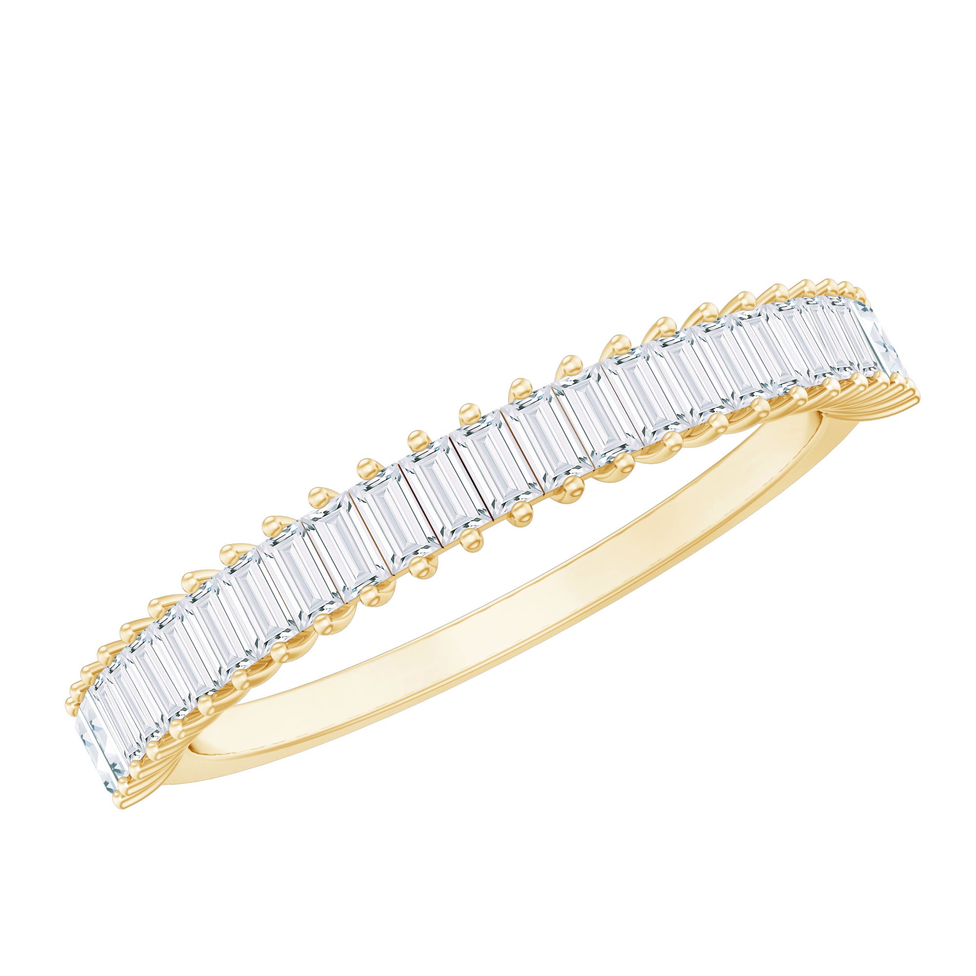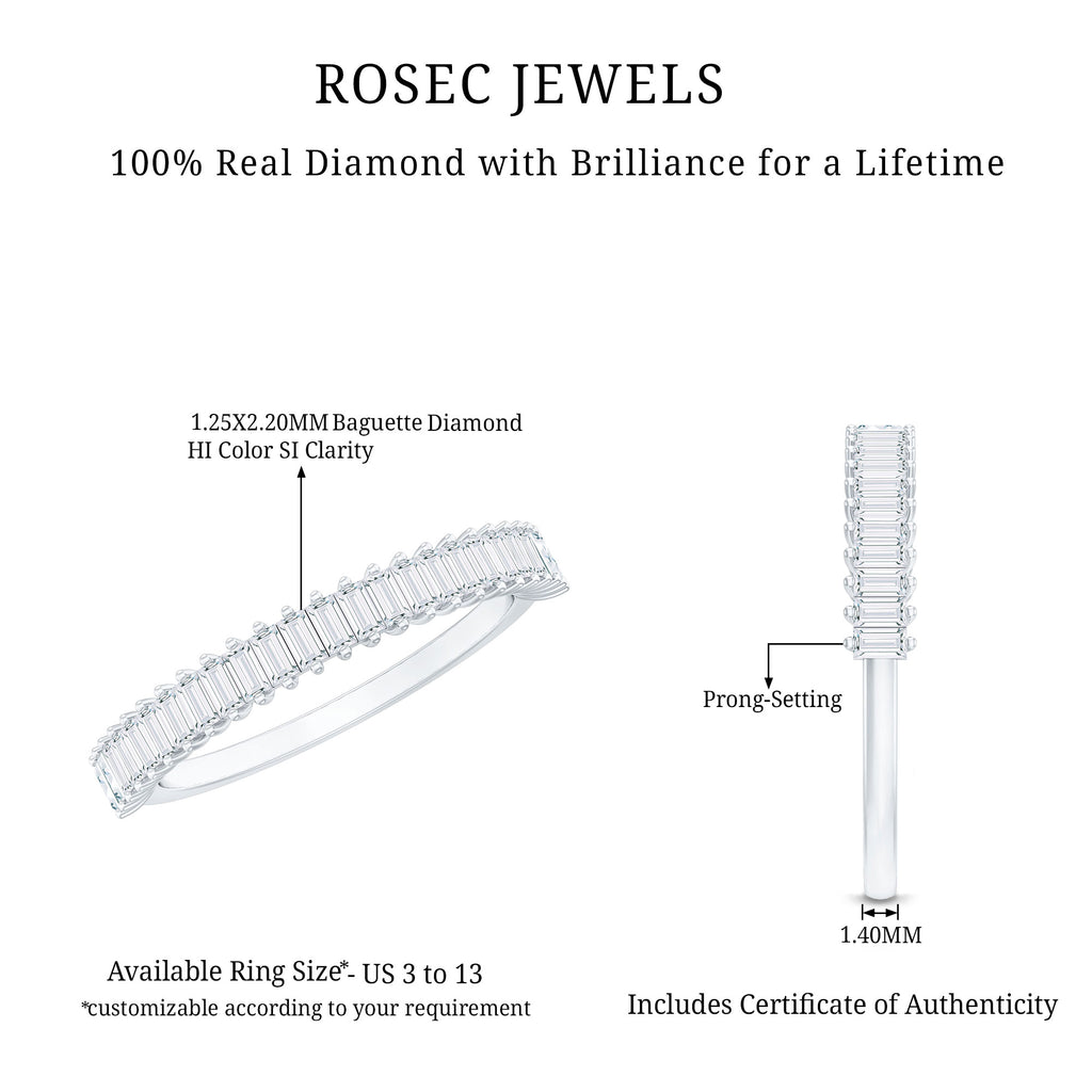 Simply stunning, this Half Eternity Ring is a radiant way to celebrate love that grows stronger with each passing year. Designed with a row of sparkling Baguette Shape Diamond stones of HI-SI Quality set gracefully across the top half of the band in 2 Prong Setting, it catches the light beautifully, reflecting commitment, memories and shared moments. Perfect for anniversaries or meaningful milestones, this Baguette Diamond Ring is both a stylish statement and a heartfelt token of devotion. Available in various ring sizes, this Diamond Eternity Ring is thoughtfully crafted to fit comfortably. Arriving in a signature jewelry box, this Diamond Ring for Women is ready to mark a special occasion or turn a simple moment into a lifelong memory. This Natural Diamond Ring is a timeless symbol of love, full of magic that makes every relationship unforgettable.