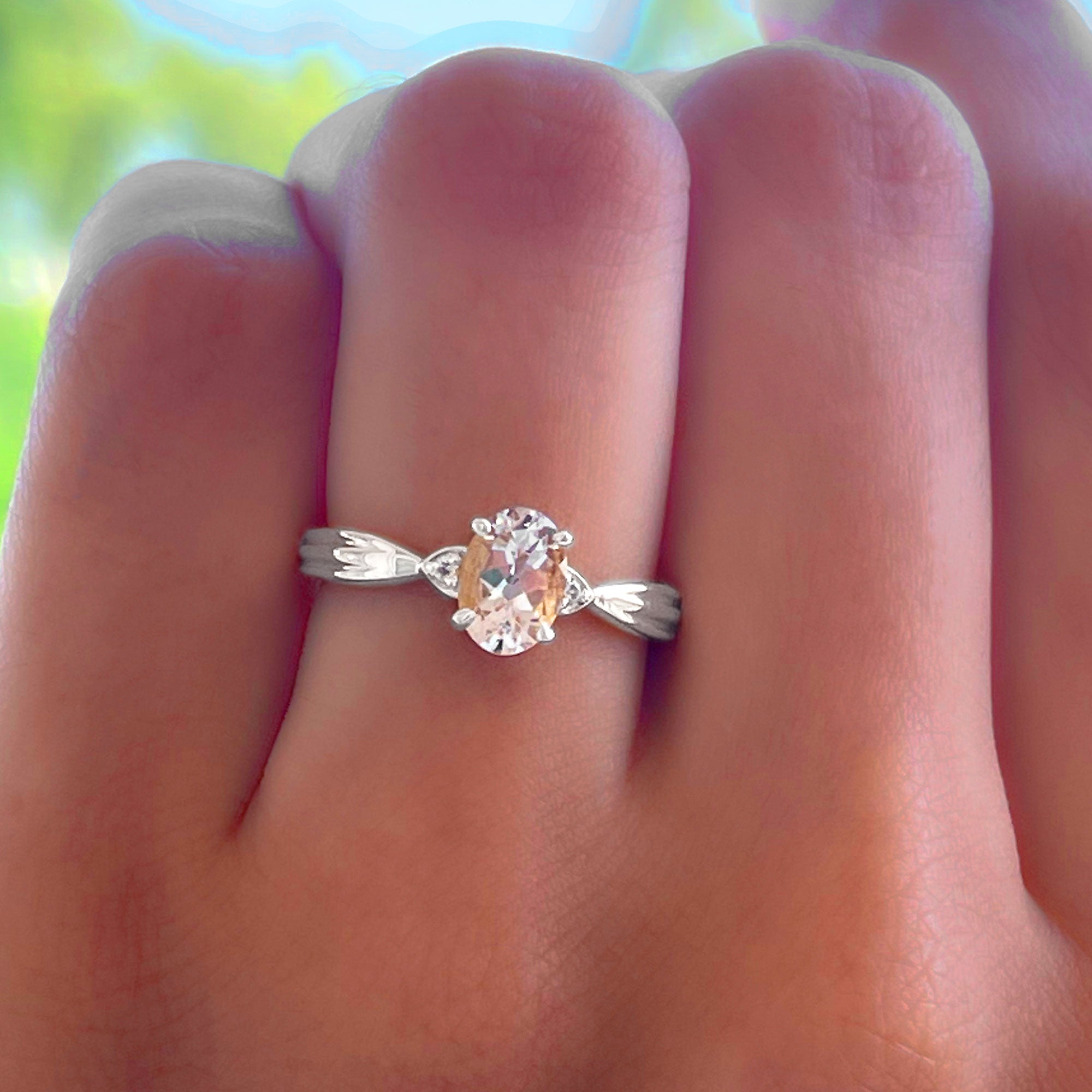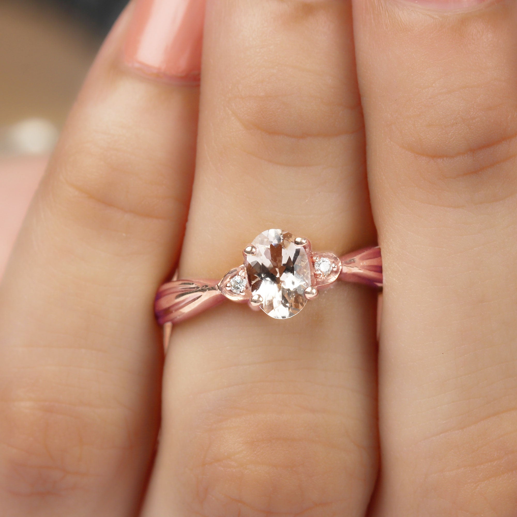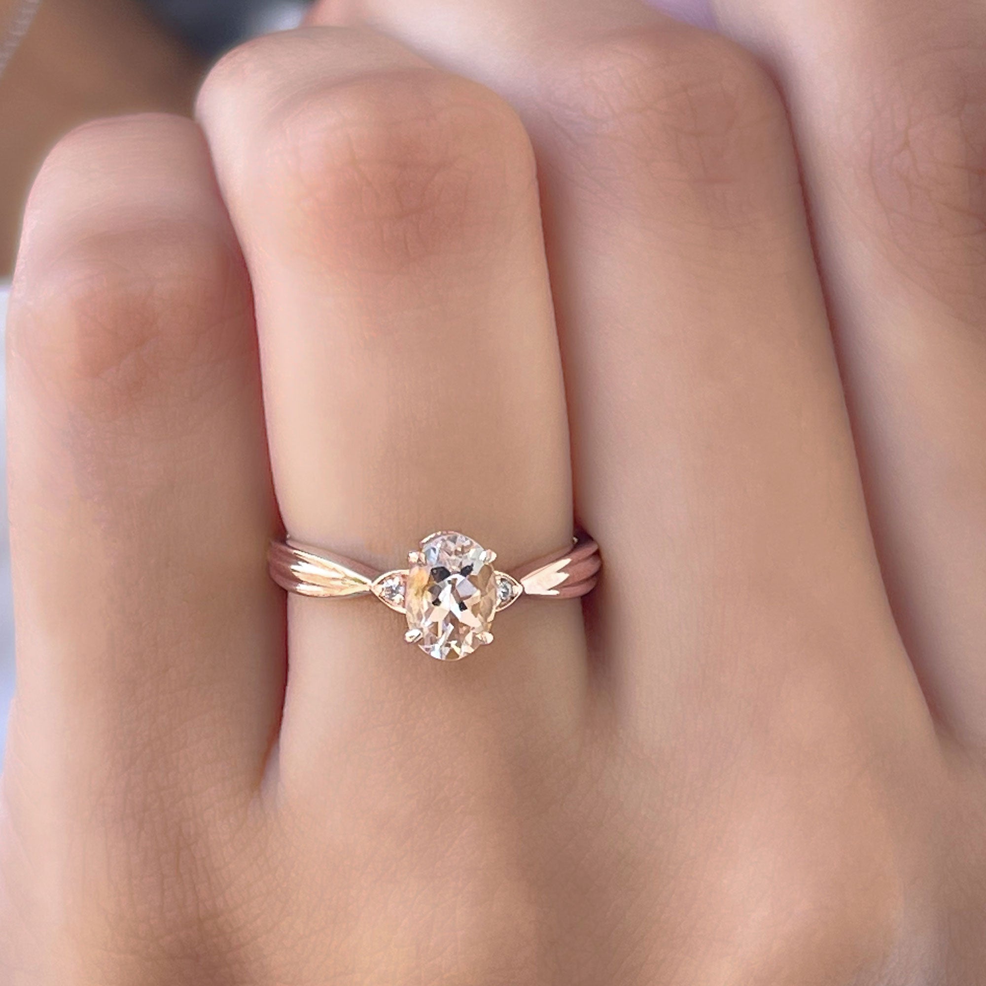 3/4 CT Oval Cut Morganite Solitaire Ring with Diamond