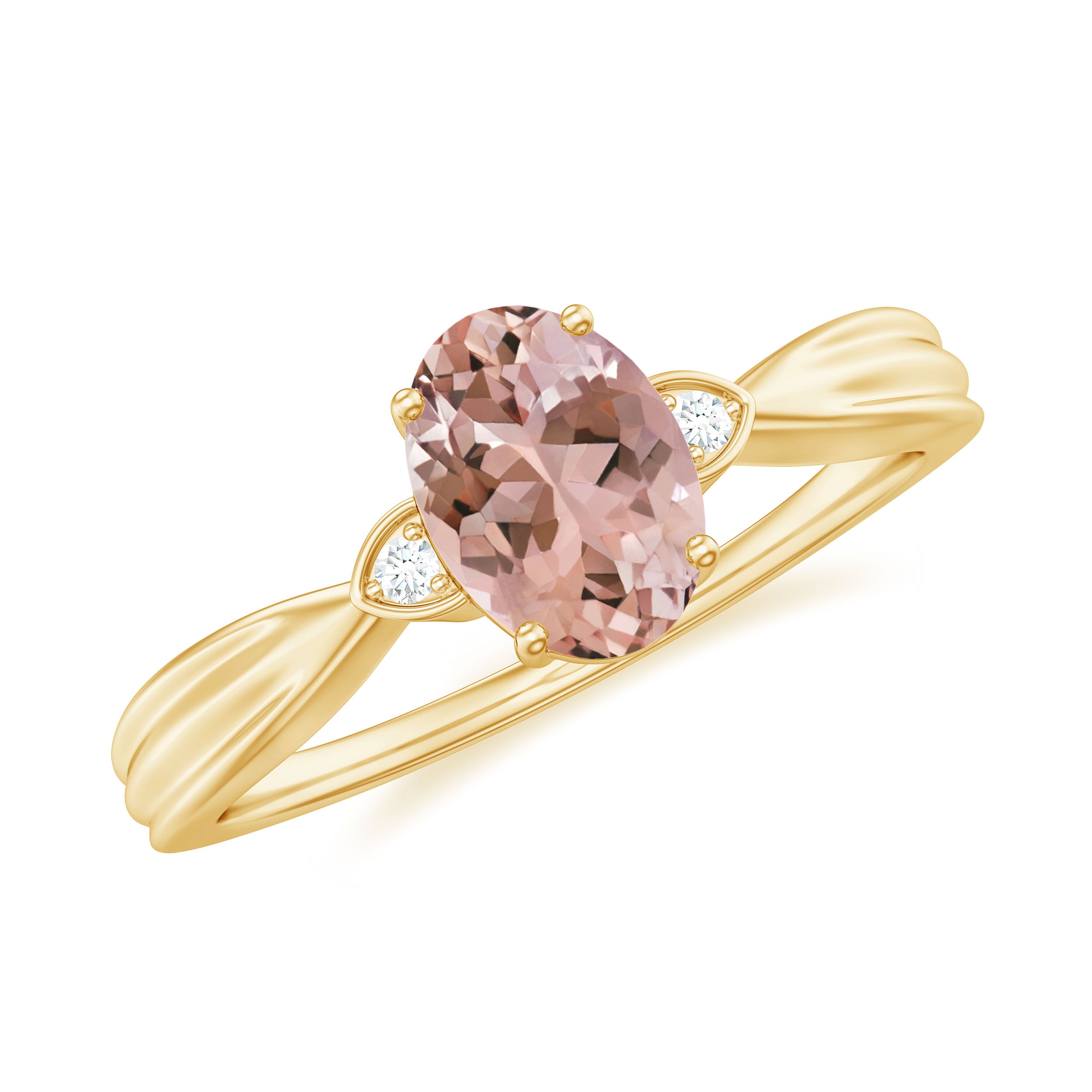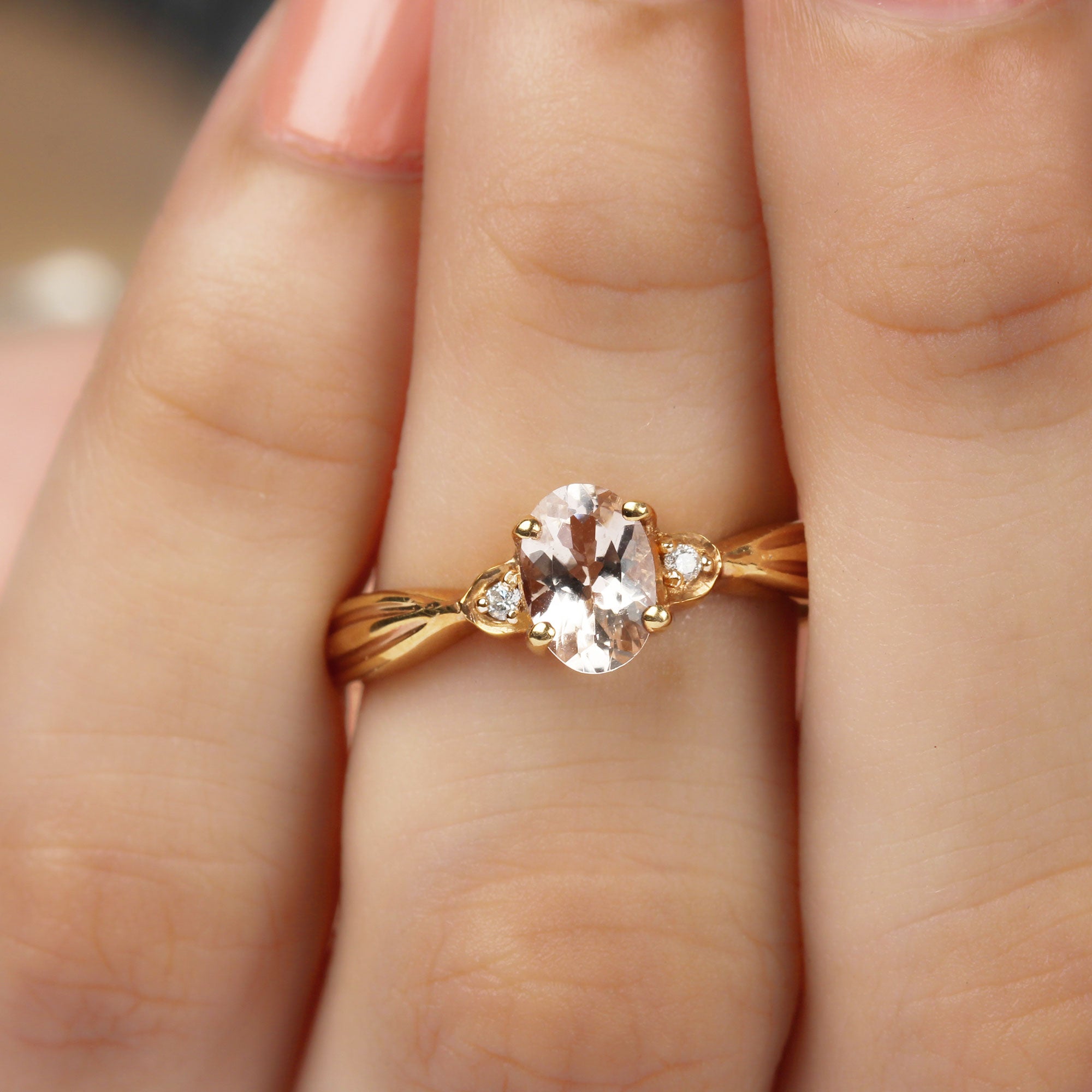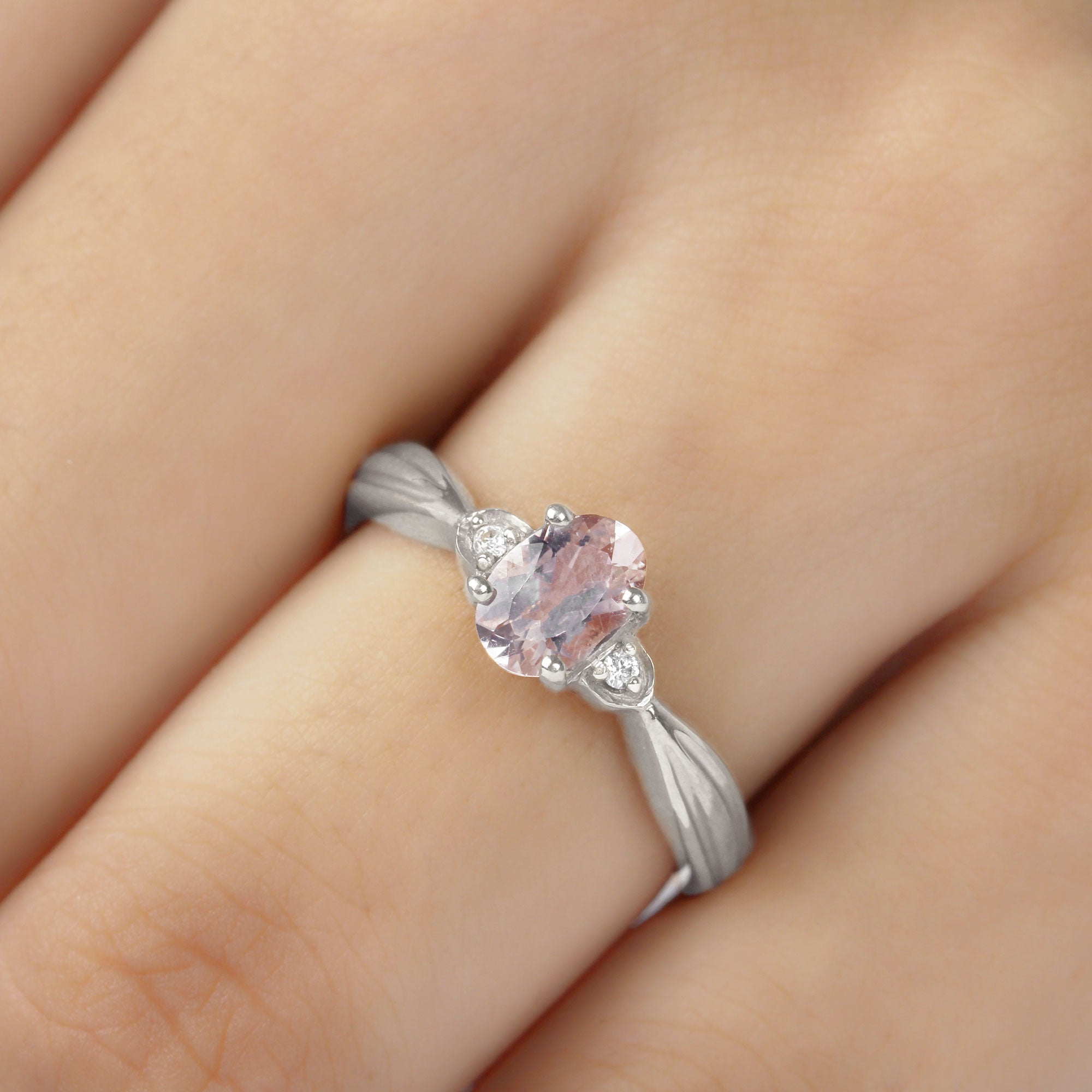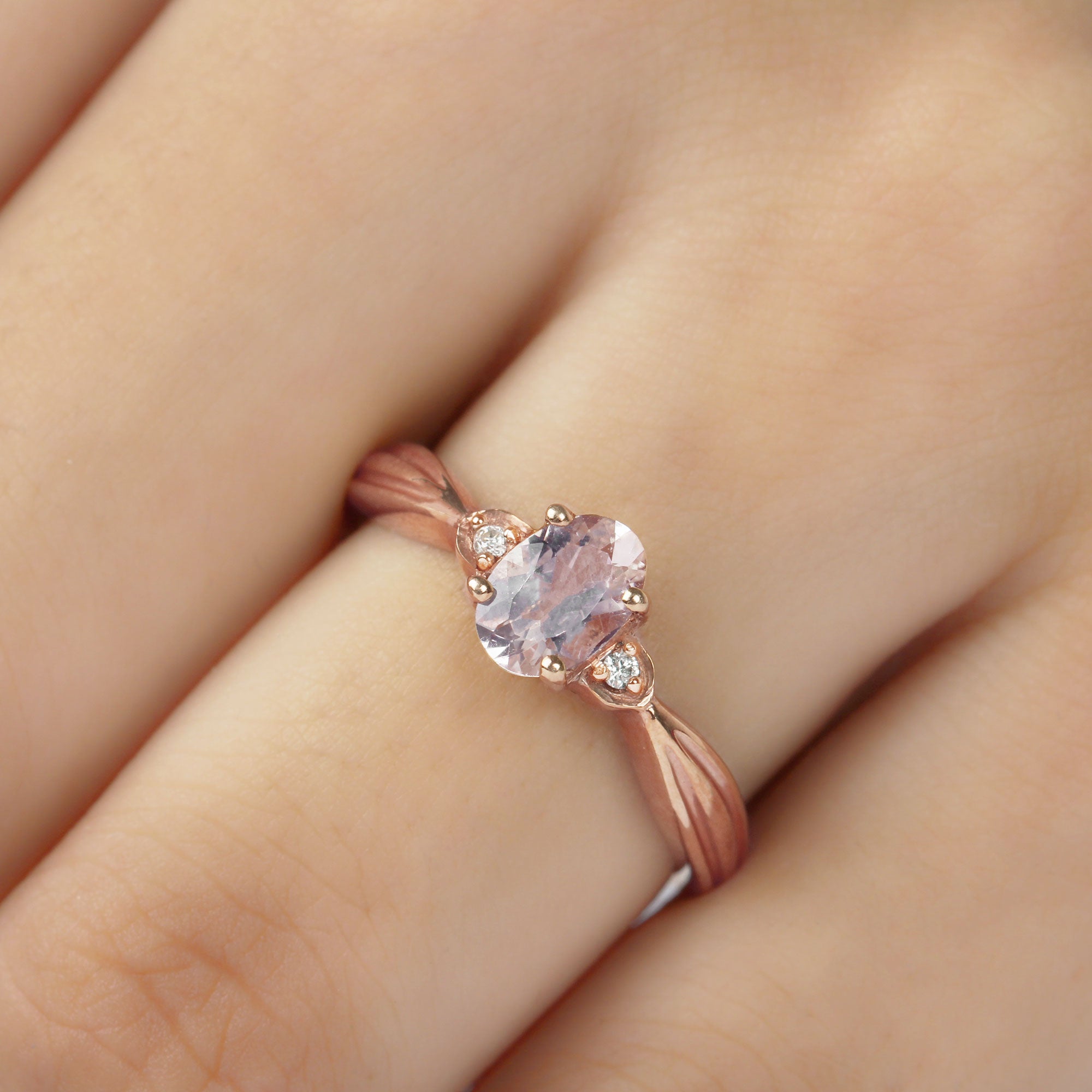 3/4 CT Oval Cut Morganite Solitaire Ring with Diamond