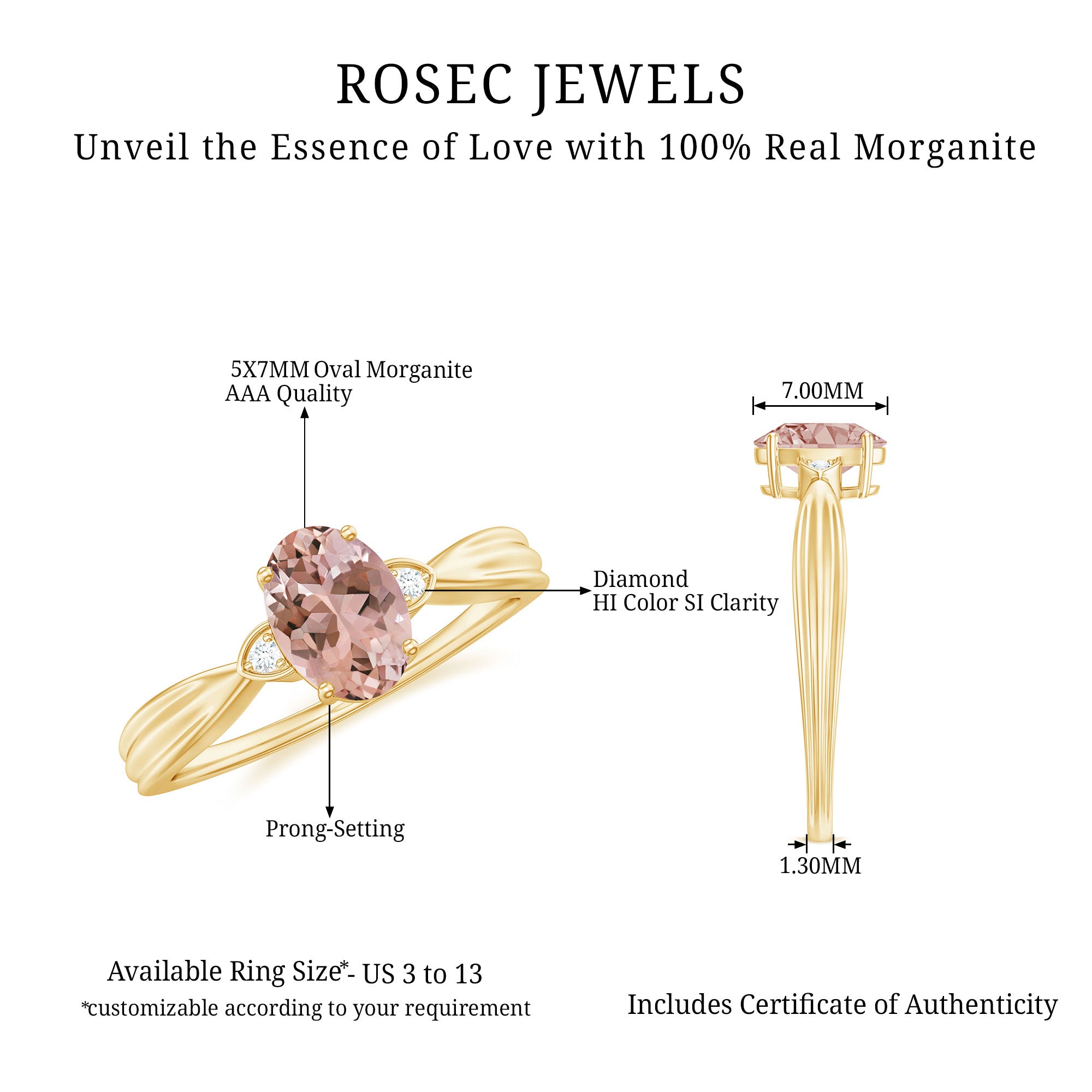 Beautifully designed, this Solitaire Ring is adorned with an Oval Cut Morganite Solitaire with Round Shape Diamond stones to make for a lovely choice for your beloved. Solid Gold build gives a charming appeal to this Solitaire Ring.