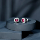 3/4 CT Pink Tourmaline and Diamond Halo Stud Earrings