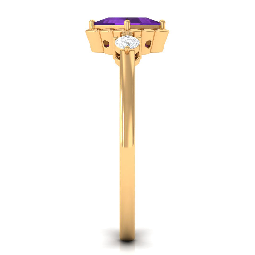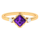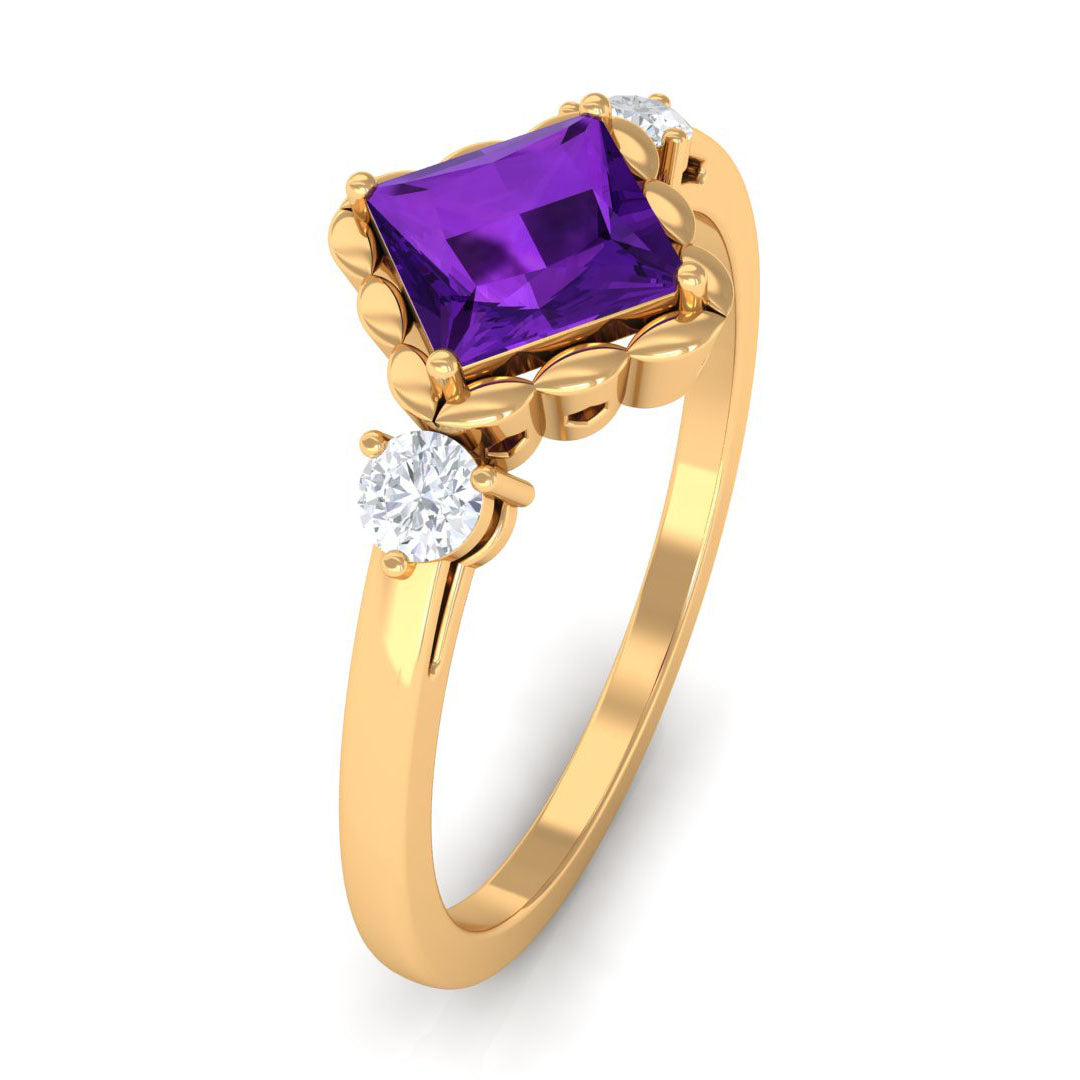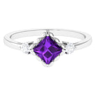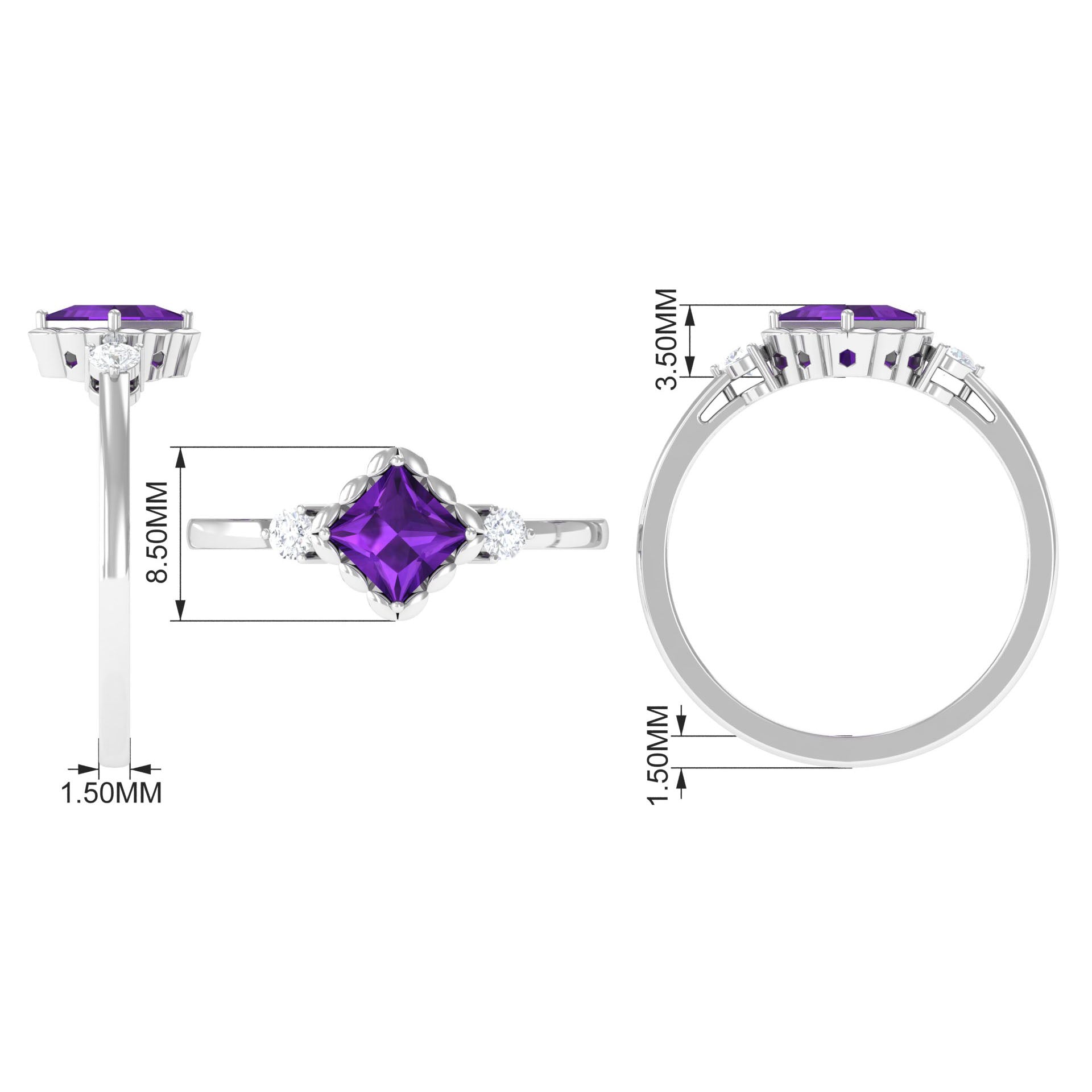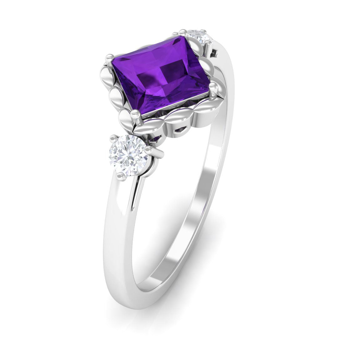 3/4 CT Princess Cut Amethyst Designer Engagement Ring with Diamond