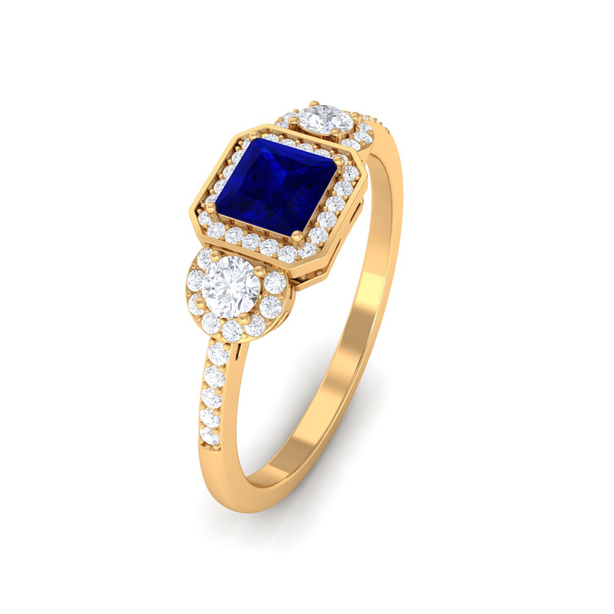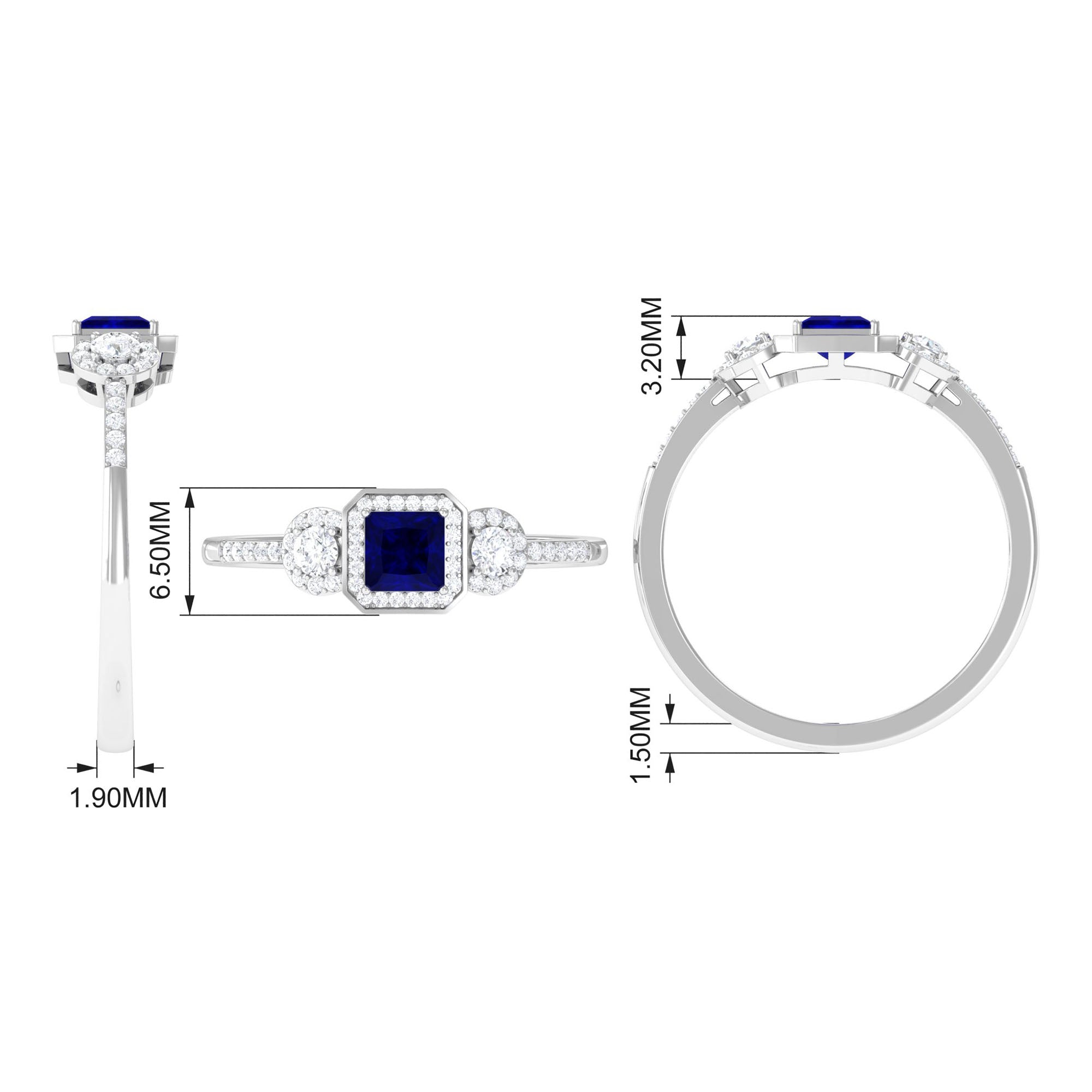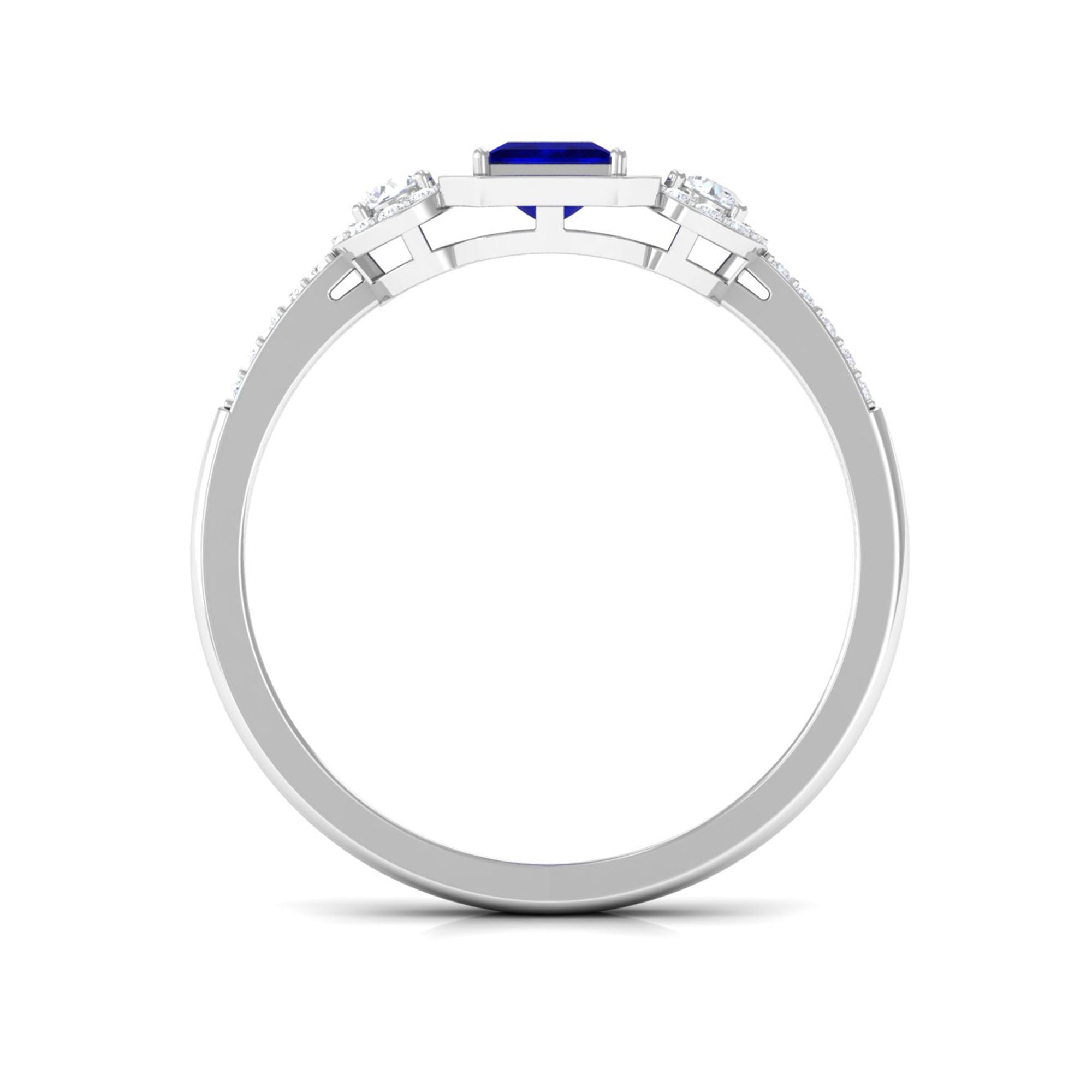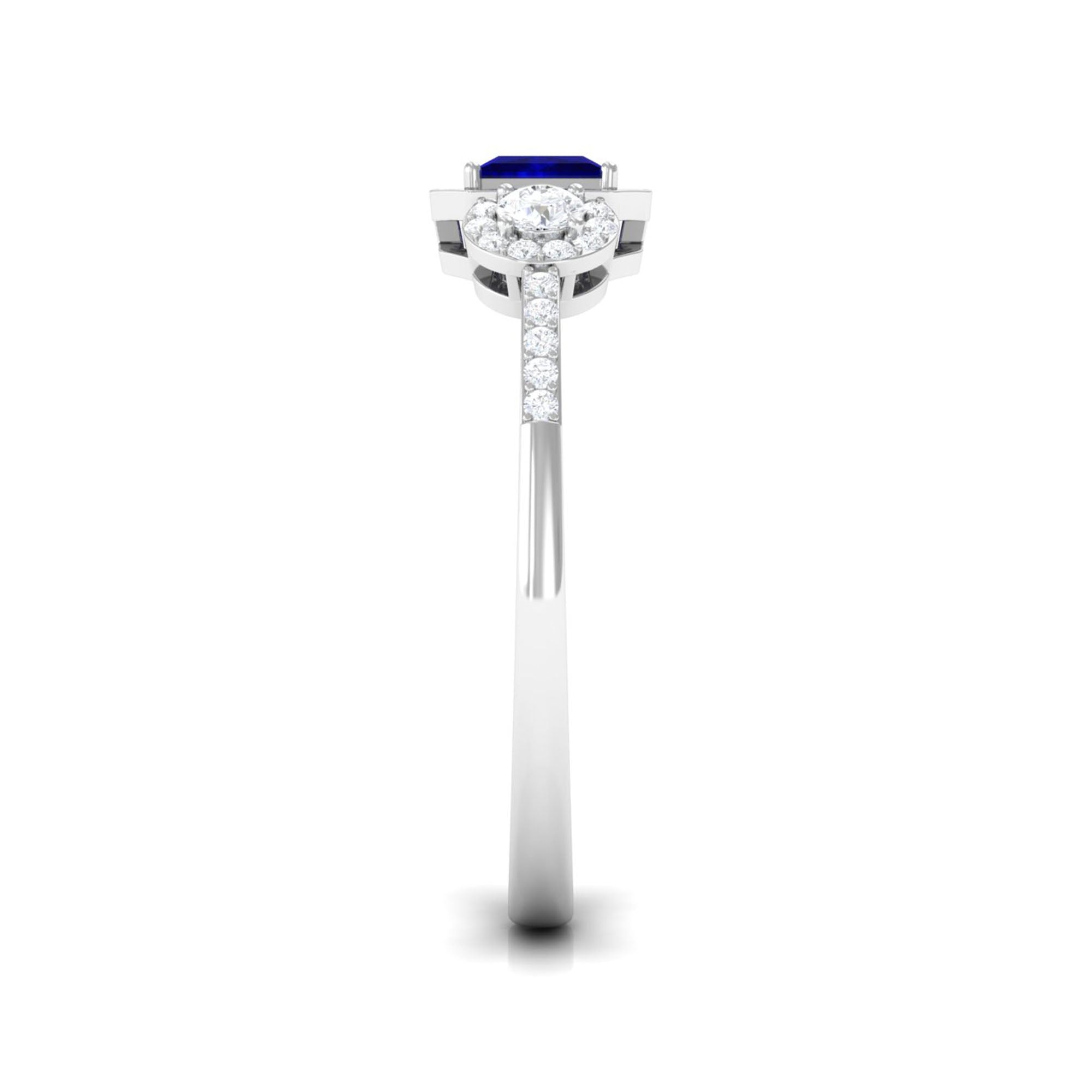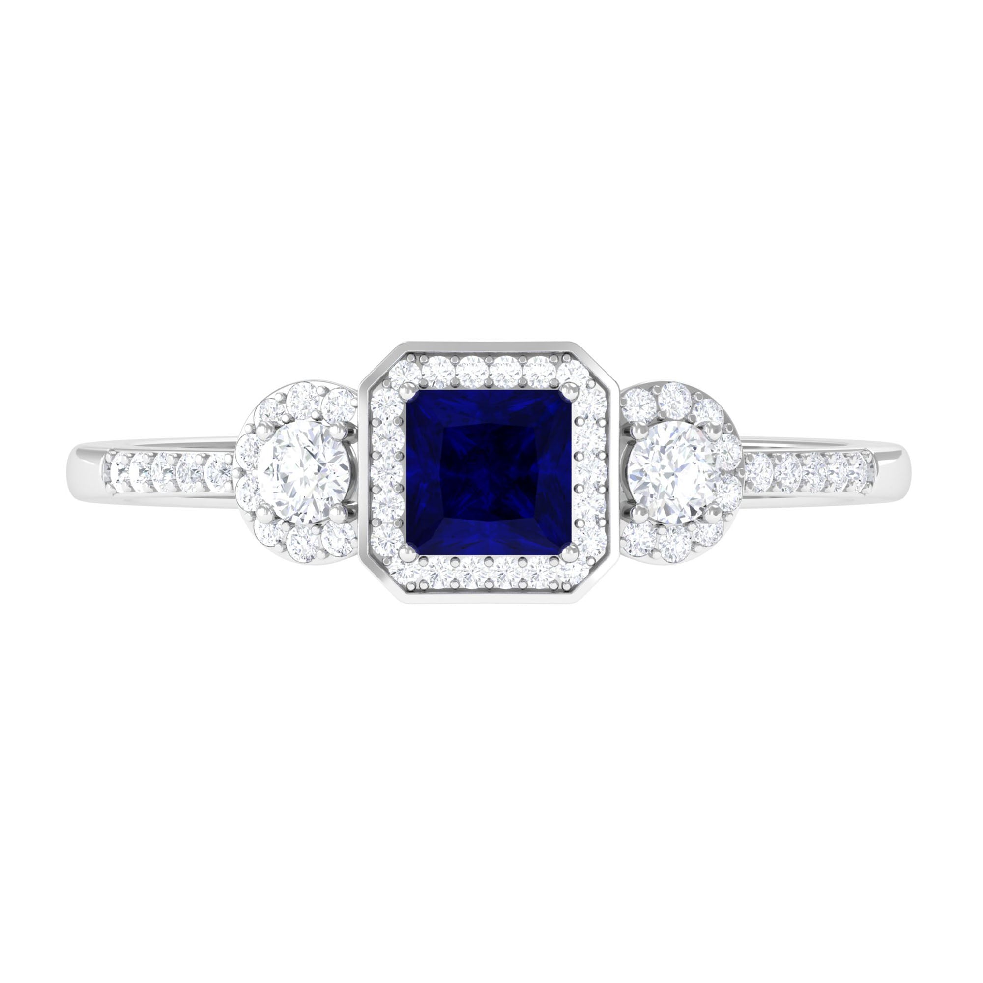 3/4 CT Princess Cut Blue Sapphire and Diamond Engagement Ring