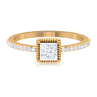 Flaunt in the parties with this Solitaire Ring. This Solitaire Ring is embellished with Princess Cut Zircon set in Peg Head Setting with Rope Frame and Zircon Side Stones, crafted in Gold Metal.
