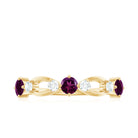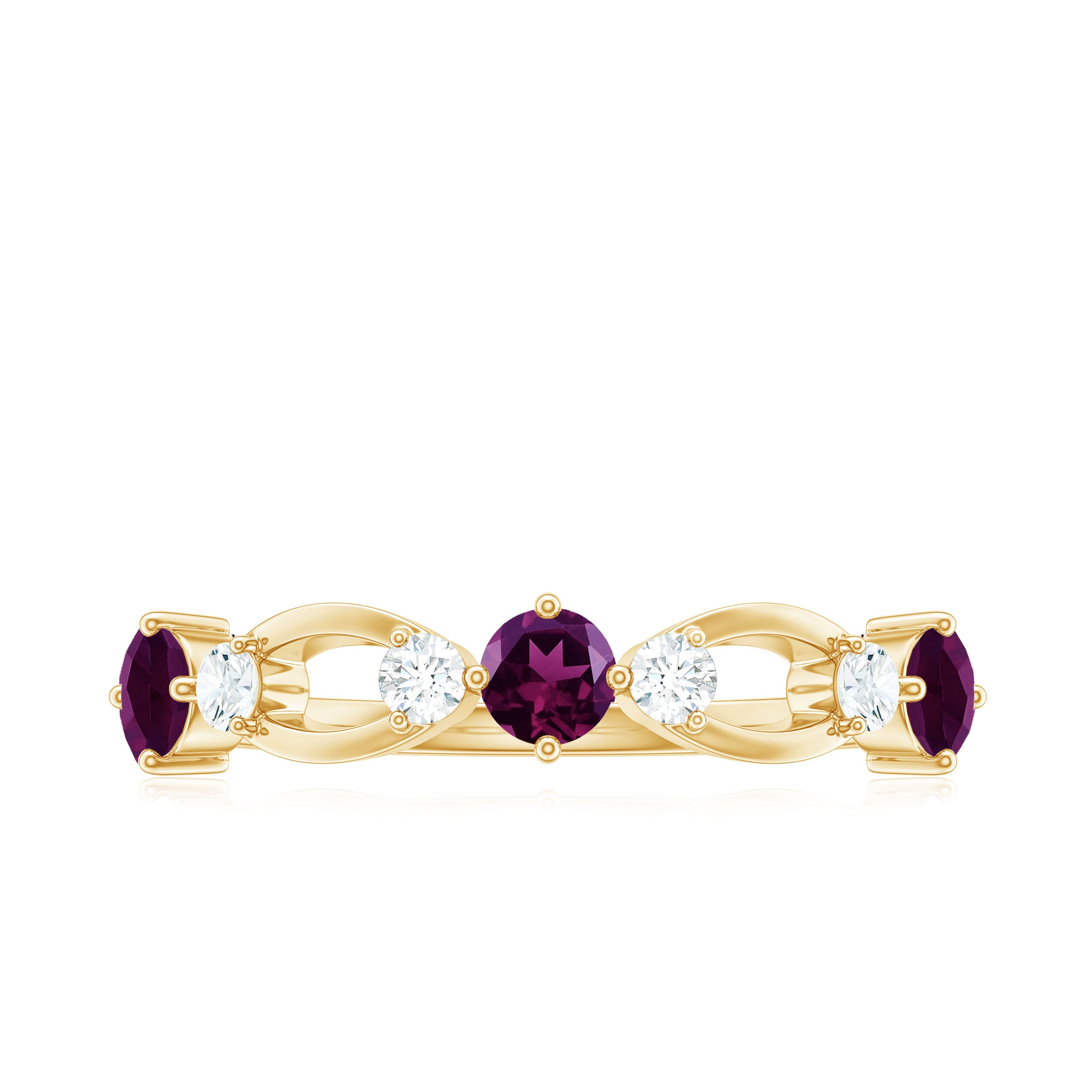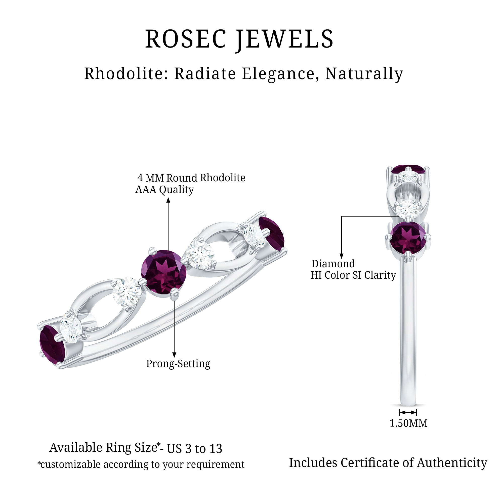 Celebrate milestone by presenting this Rhodolite Ring to her. The Round Shape Rhodolite in Prong Setting and Diamond on Eternity Band Ring is truly a mesmerizing piece. Seal your love with this Rhodolite Half Eternity Band Ring. Stack this with your wedding jewelry or go solo for a minimal look.