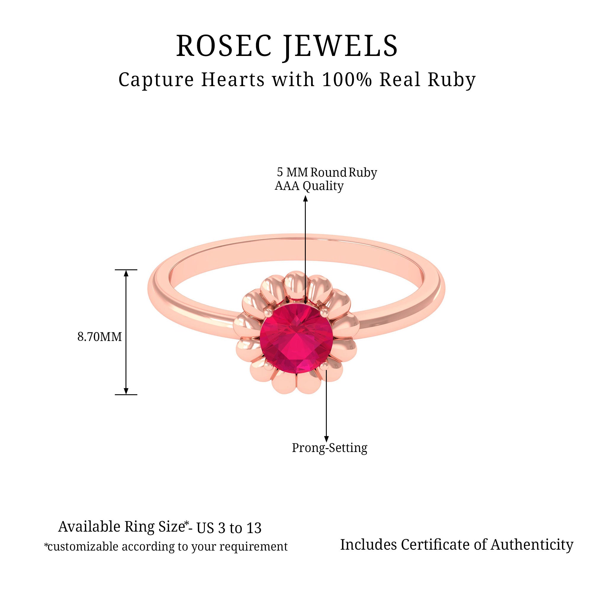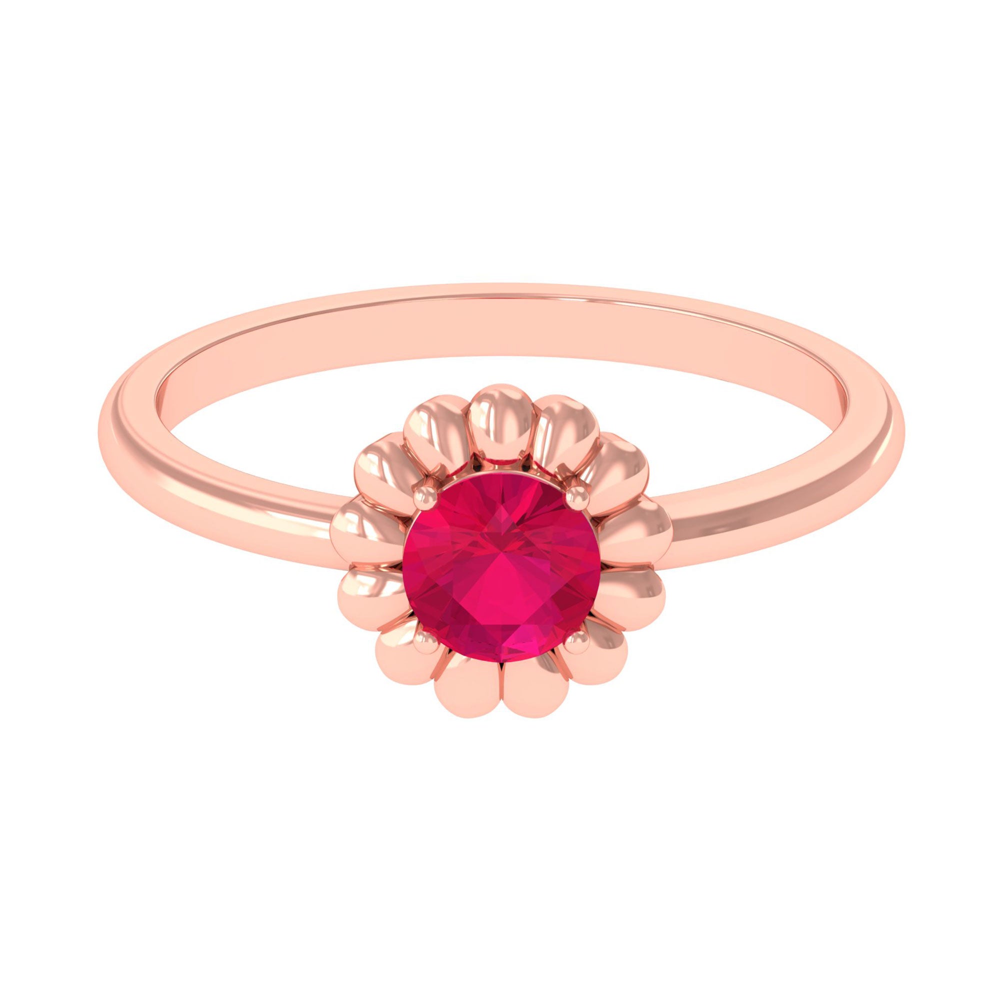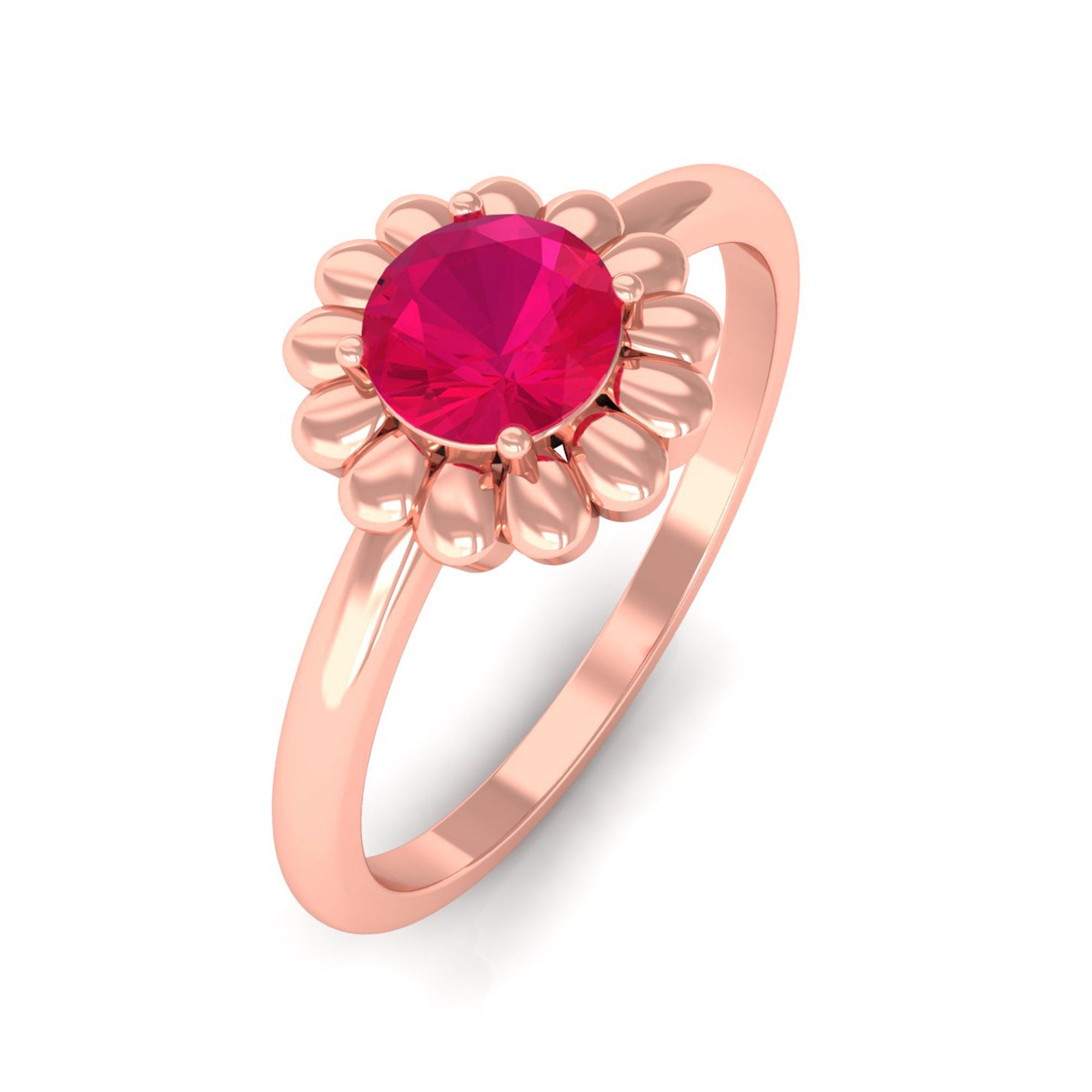 3/4 CT Round Cut Solitaire Ruby Gold Flower Ring