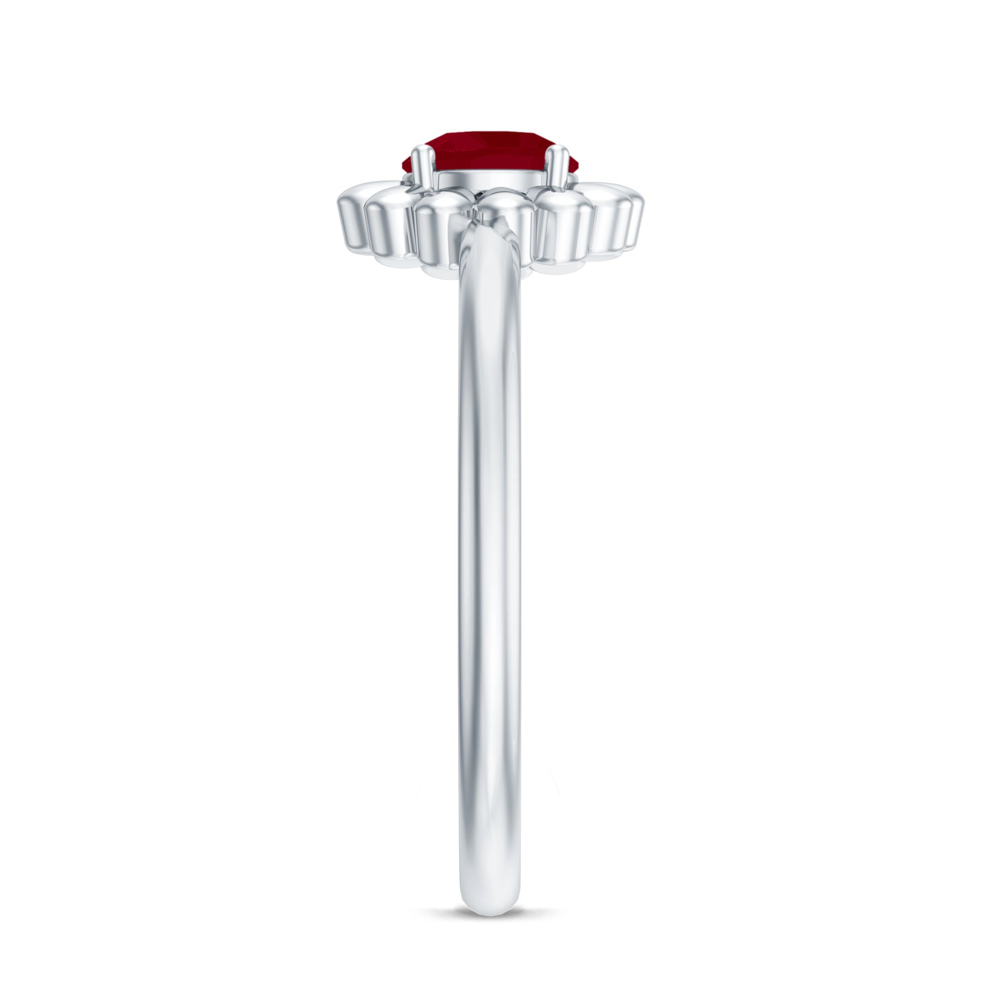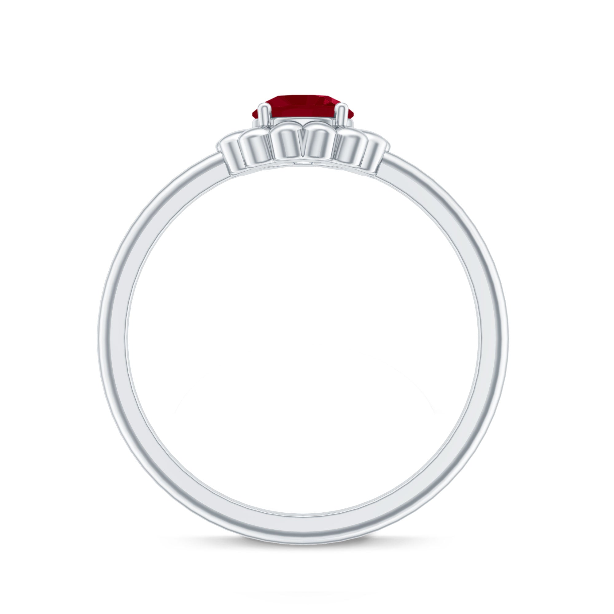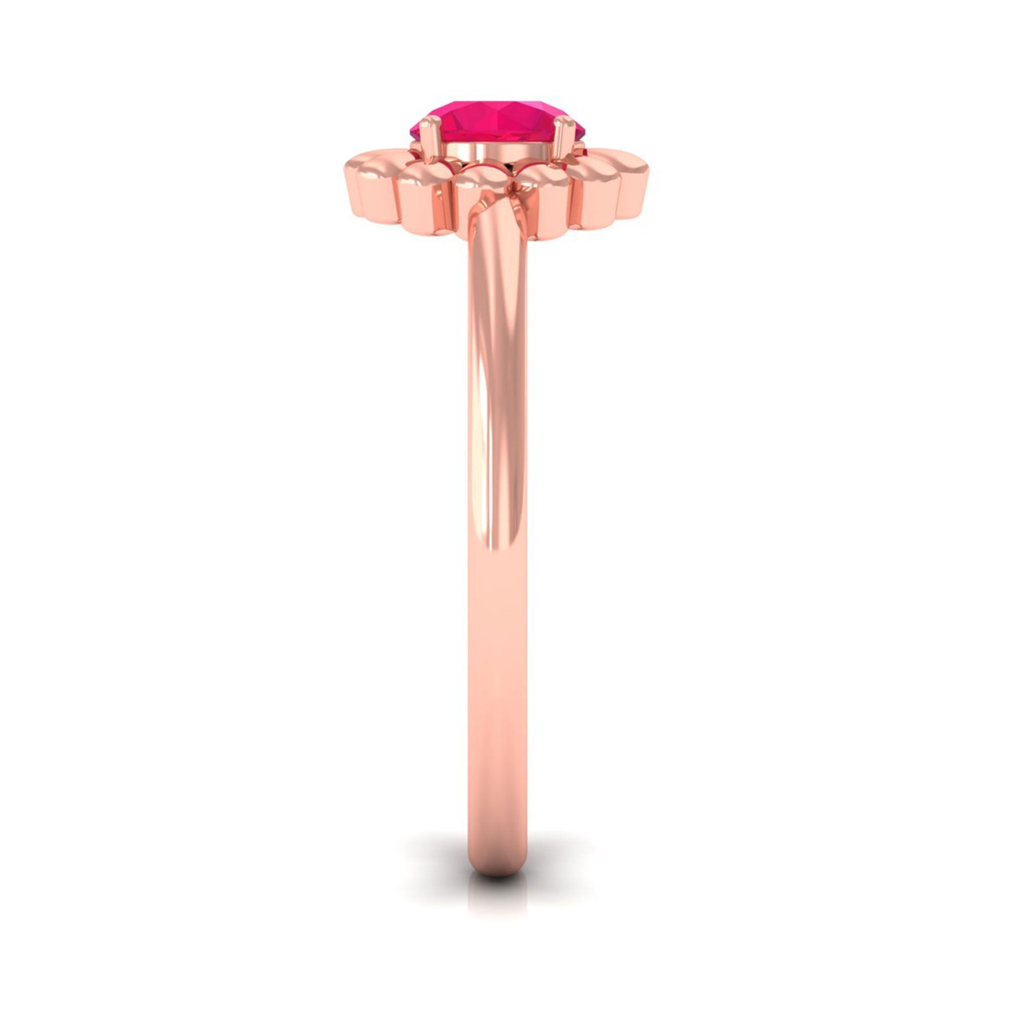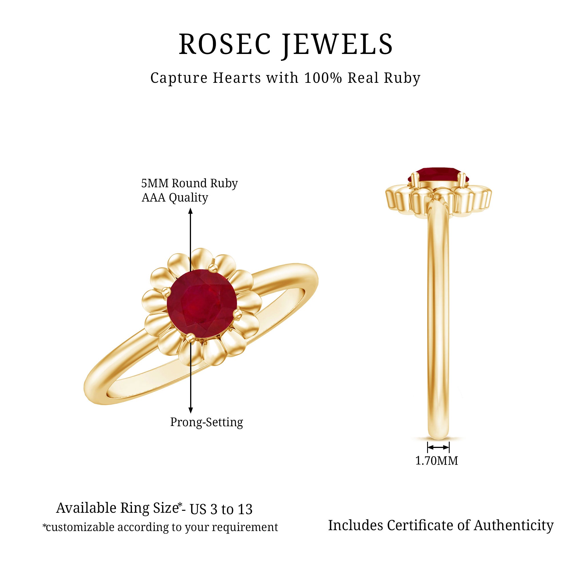 3/4 CT Round Cut Solitaire Ruby Gold Flower Ring