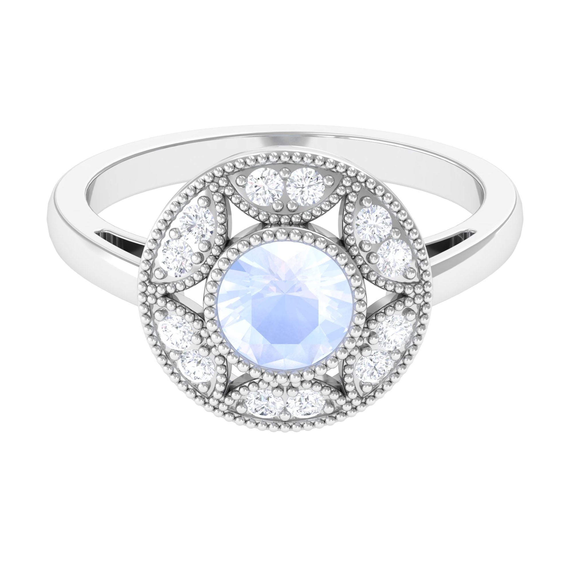 3/4 CT Round Moonstone and Diamond Vintage Engagement Ring
