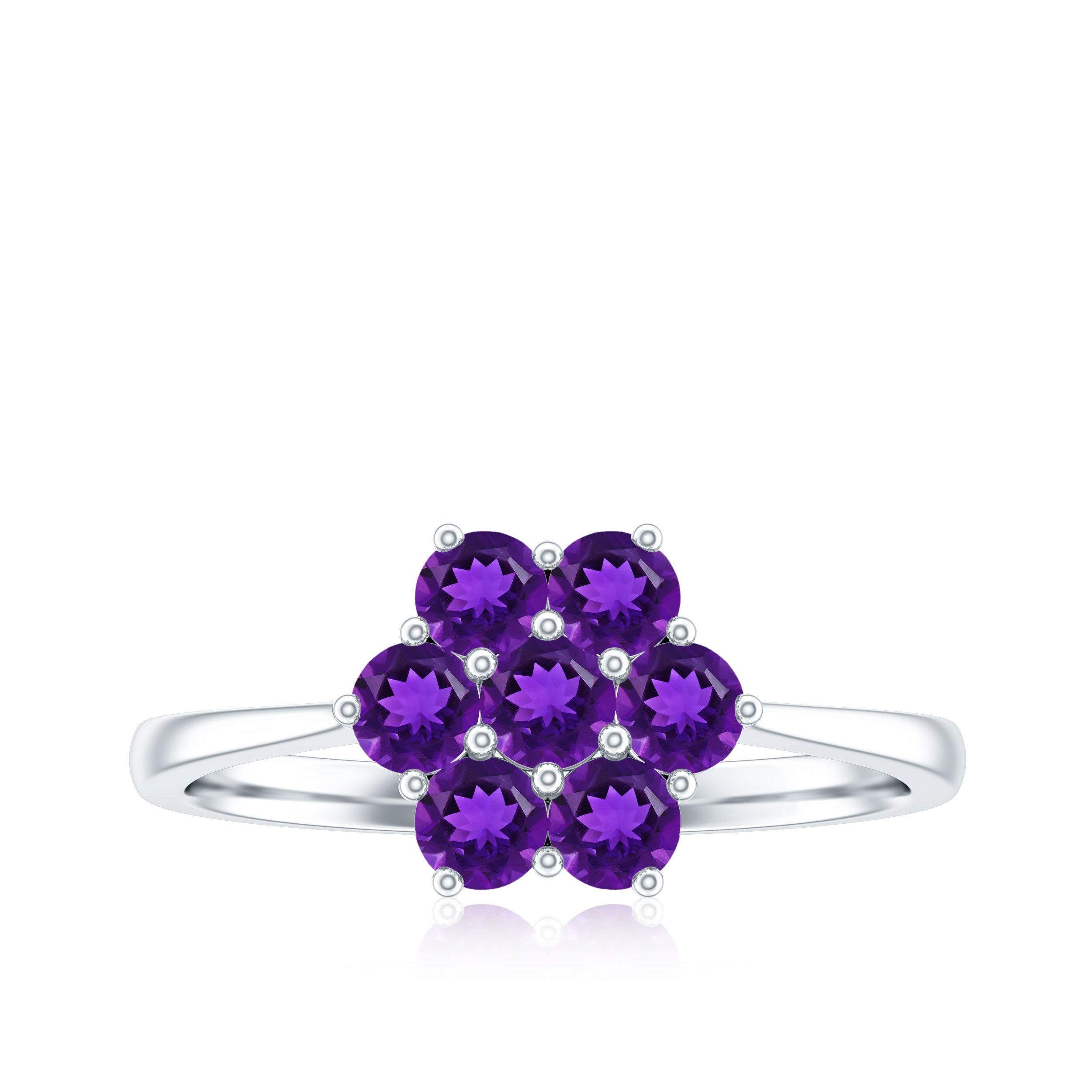 3/4 CT Round Shape Amethyst Cluster Flower Ring