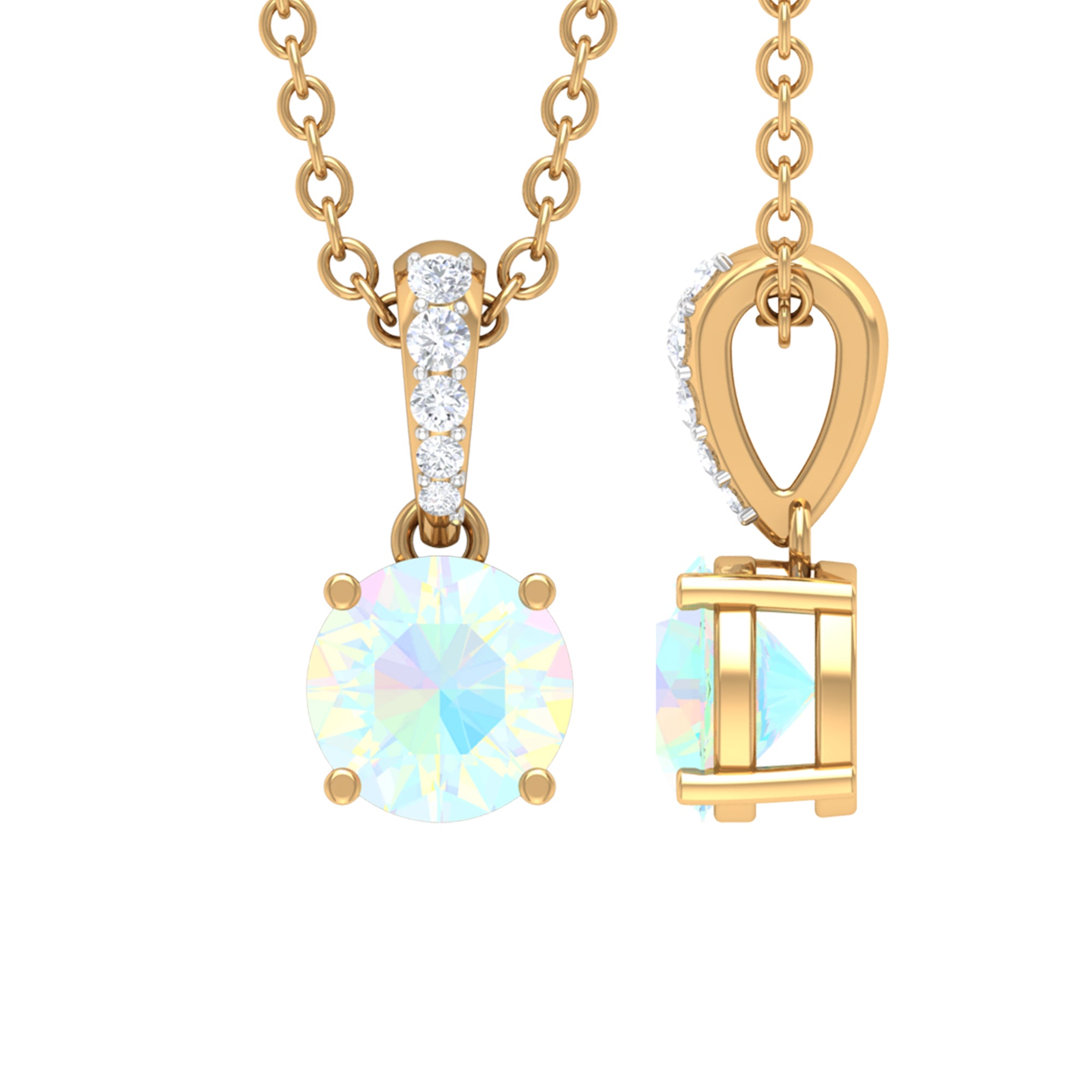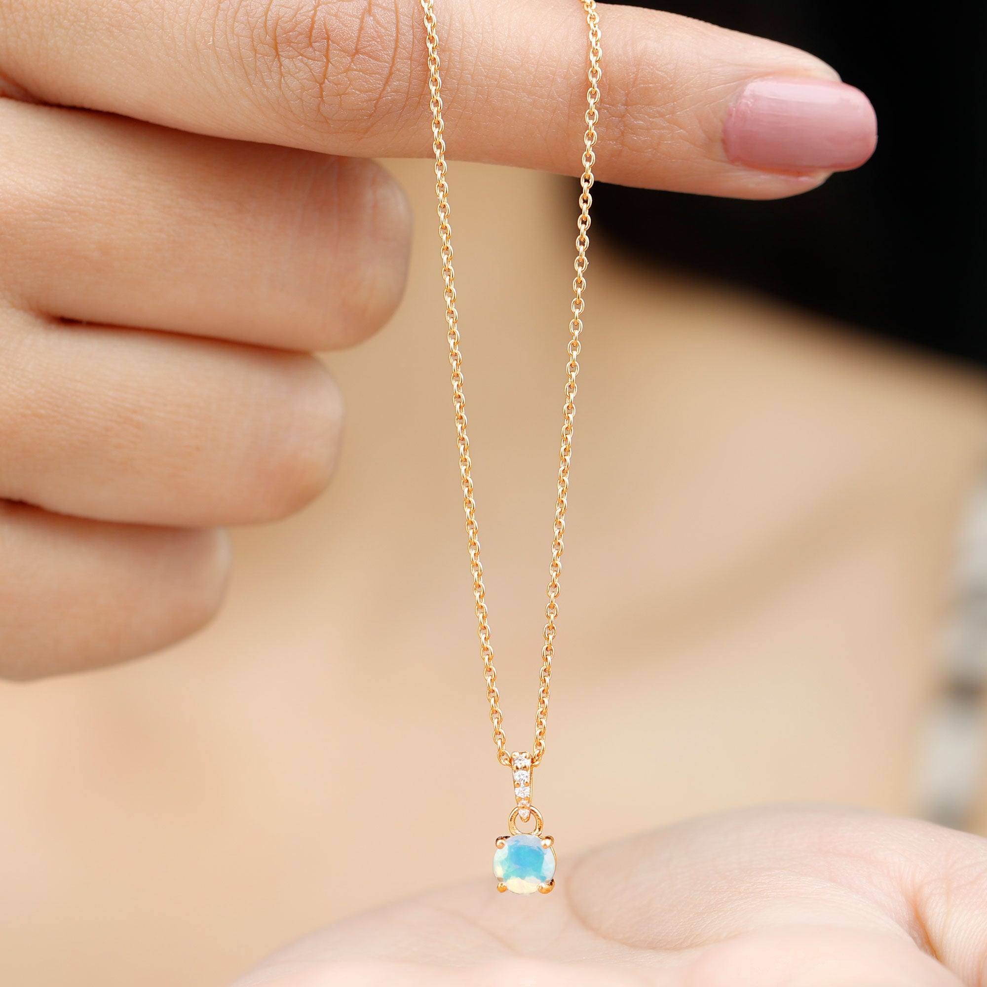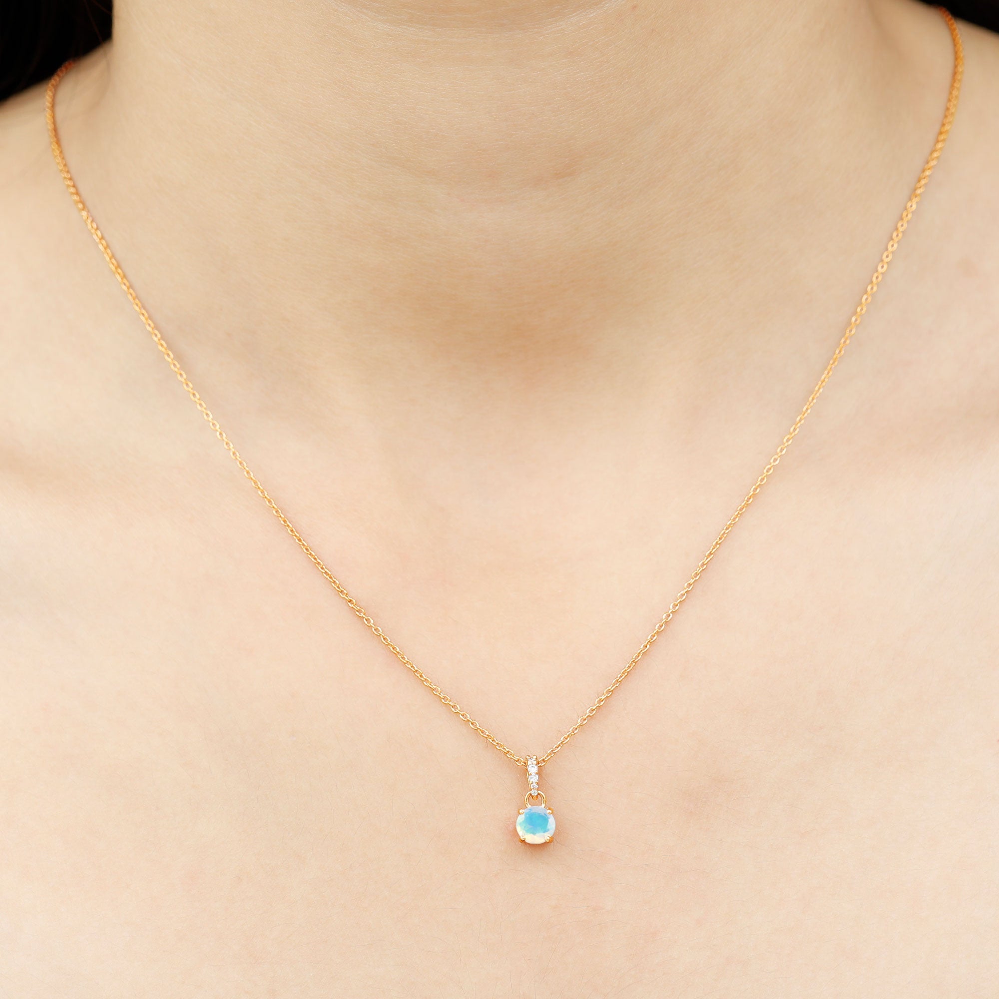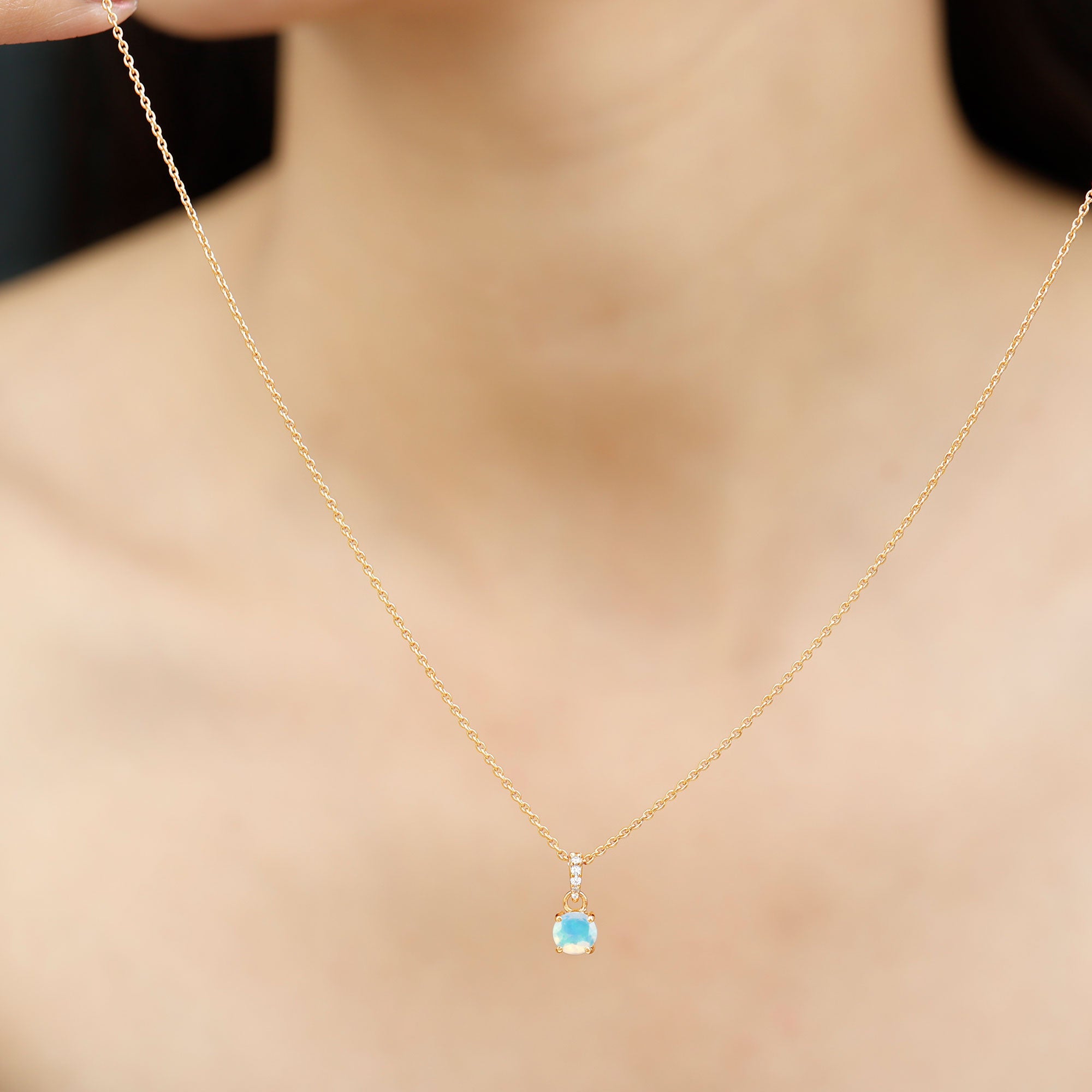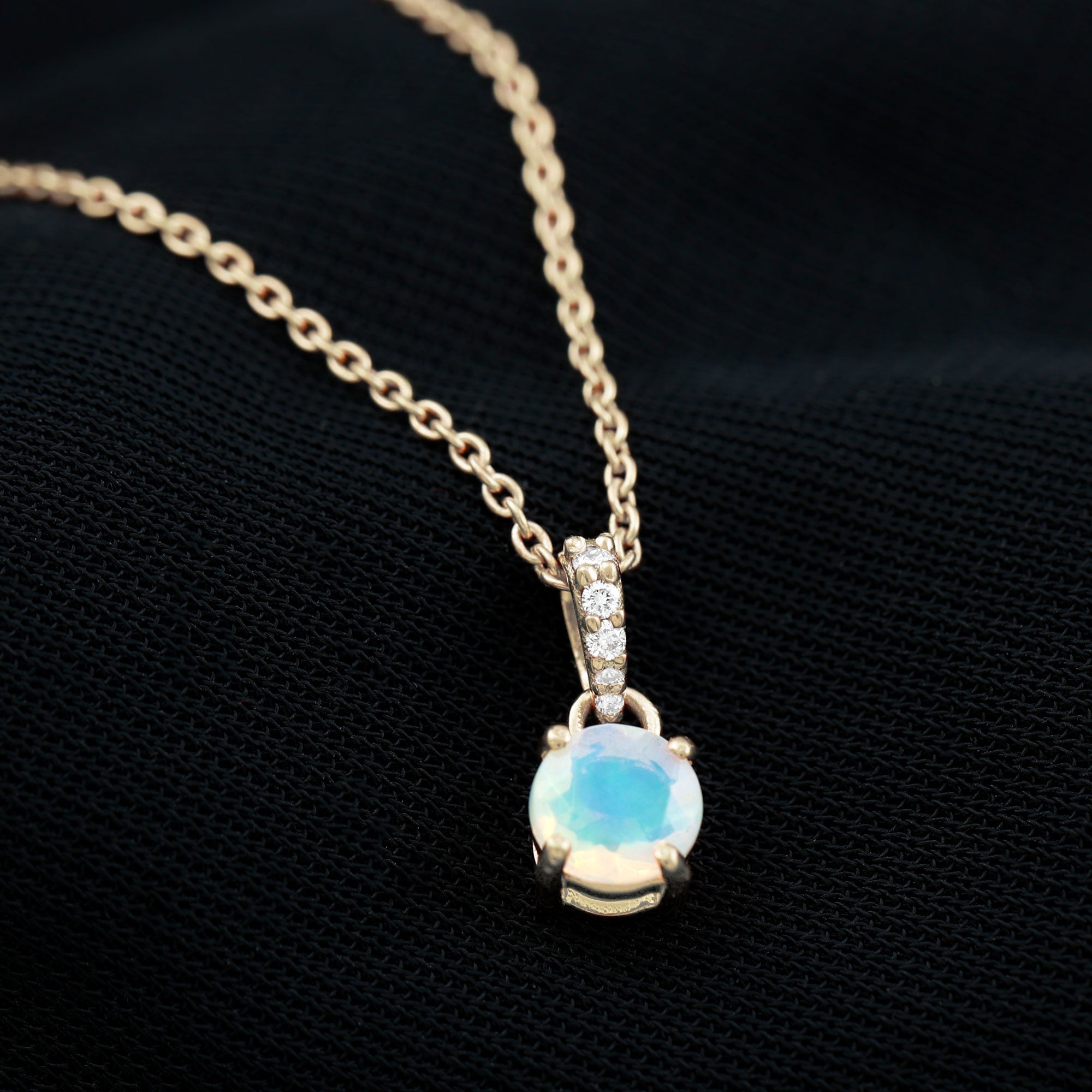 Make her feel special with this Lovely Solitaire Pendant is embellished with Round Shape Ethiopian Opal set as a Solitaire in a 4 Prong Setting with Round Shape Diamond in an Accent Bail.