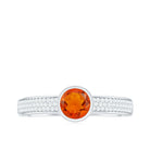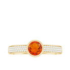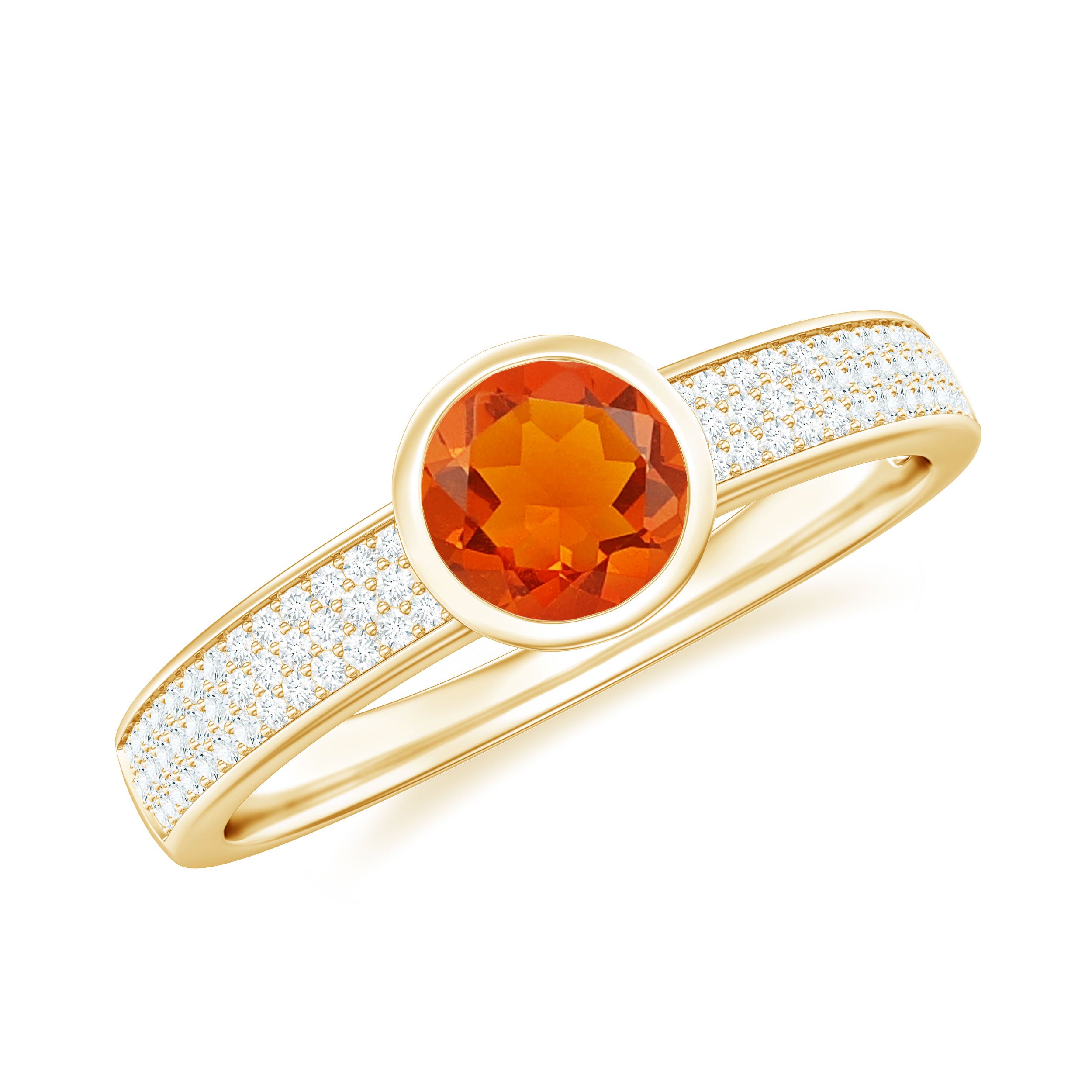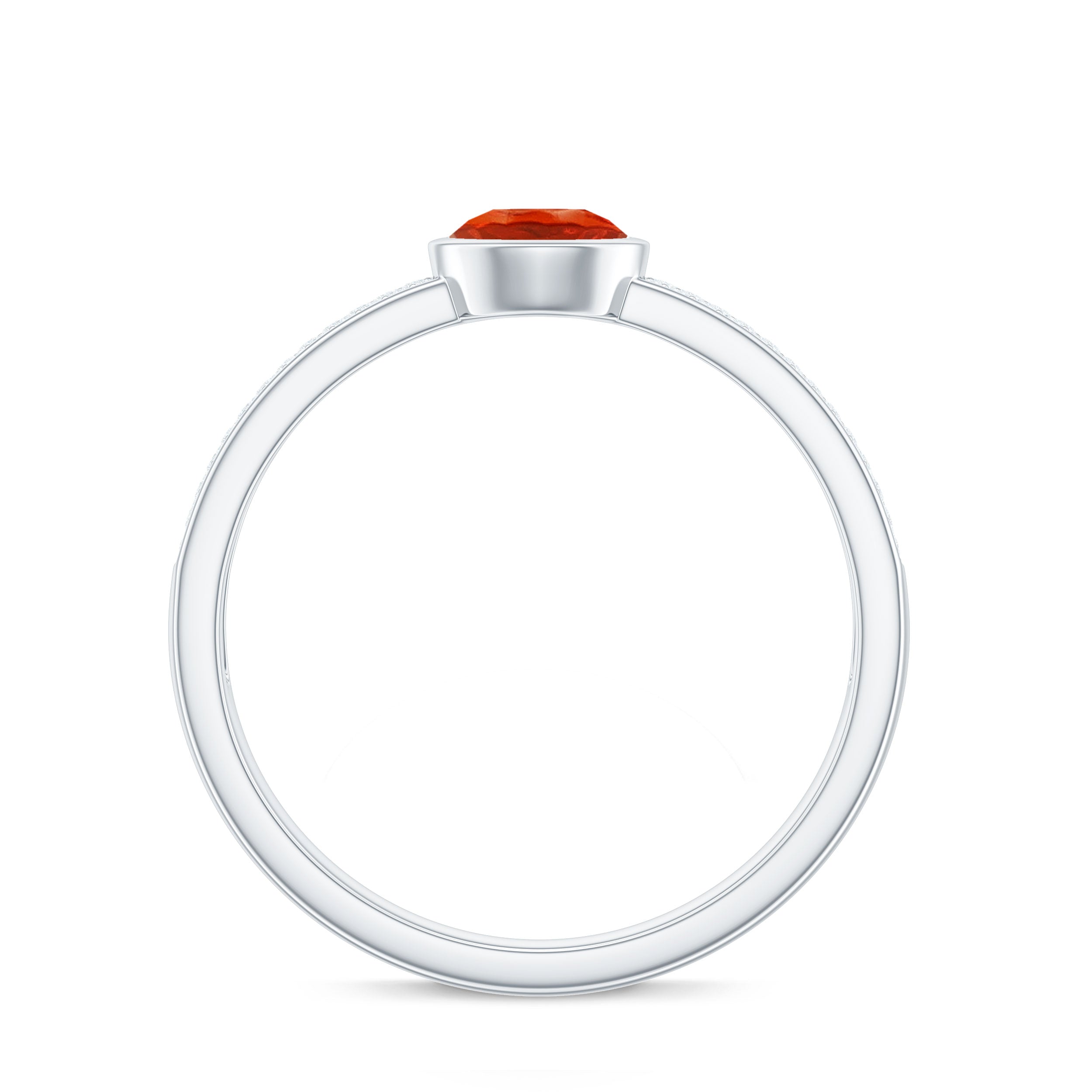 This Fire Opal Engagement Ring lends an air of grace and elegance to your special day. It embellished with Round Shape Fire Opal in Bezel Setting with Diamond Side Stones in Pave Setting. This Fire Opal and Diamond Engagement Ring is beautifully crafted in Gold. Present this Fire Opal Gold Ring to her and make her feel like a princess.