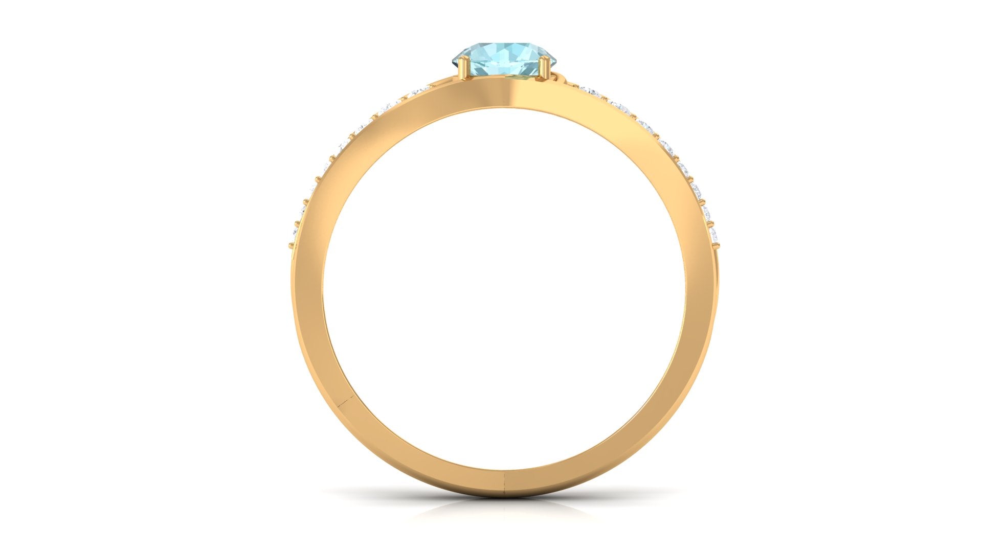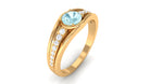 Genuine London Blue Topaz Engagement Ring with Diamond Side Stones