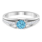 3/4 CT Round Shape Swiss Blue Topaz Solitaire Ring with Diamond Side Stones