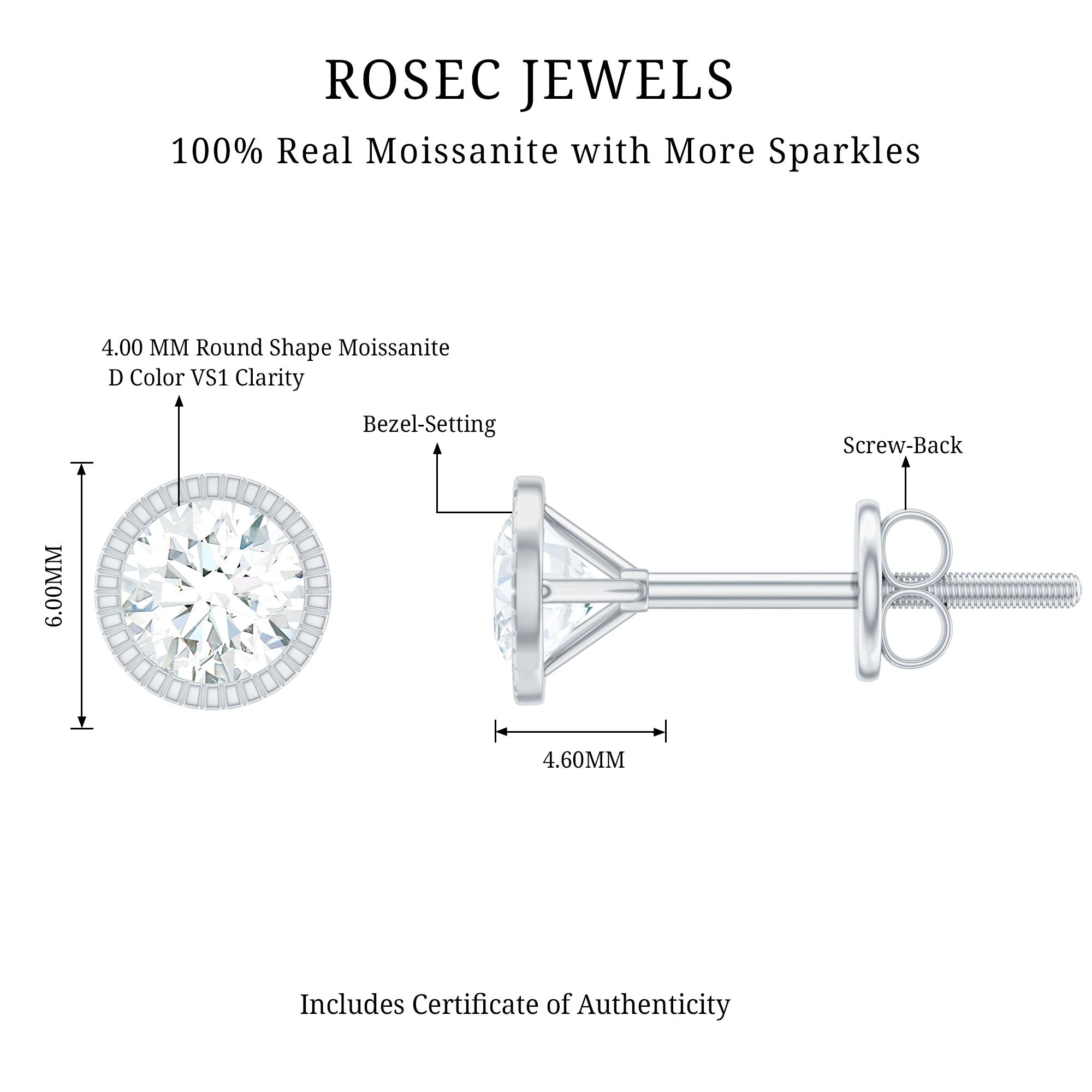 3/4 CT Solitaire Moissanite Stud Earrings in Bezel Setting