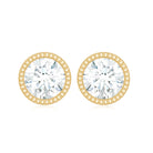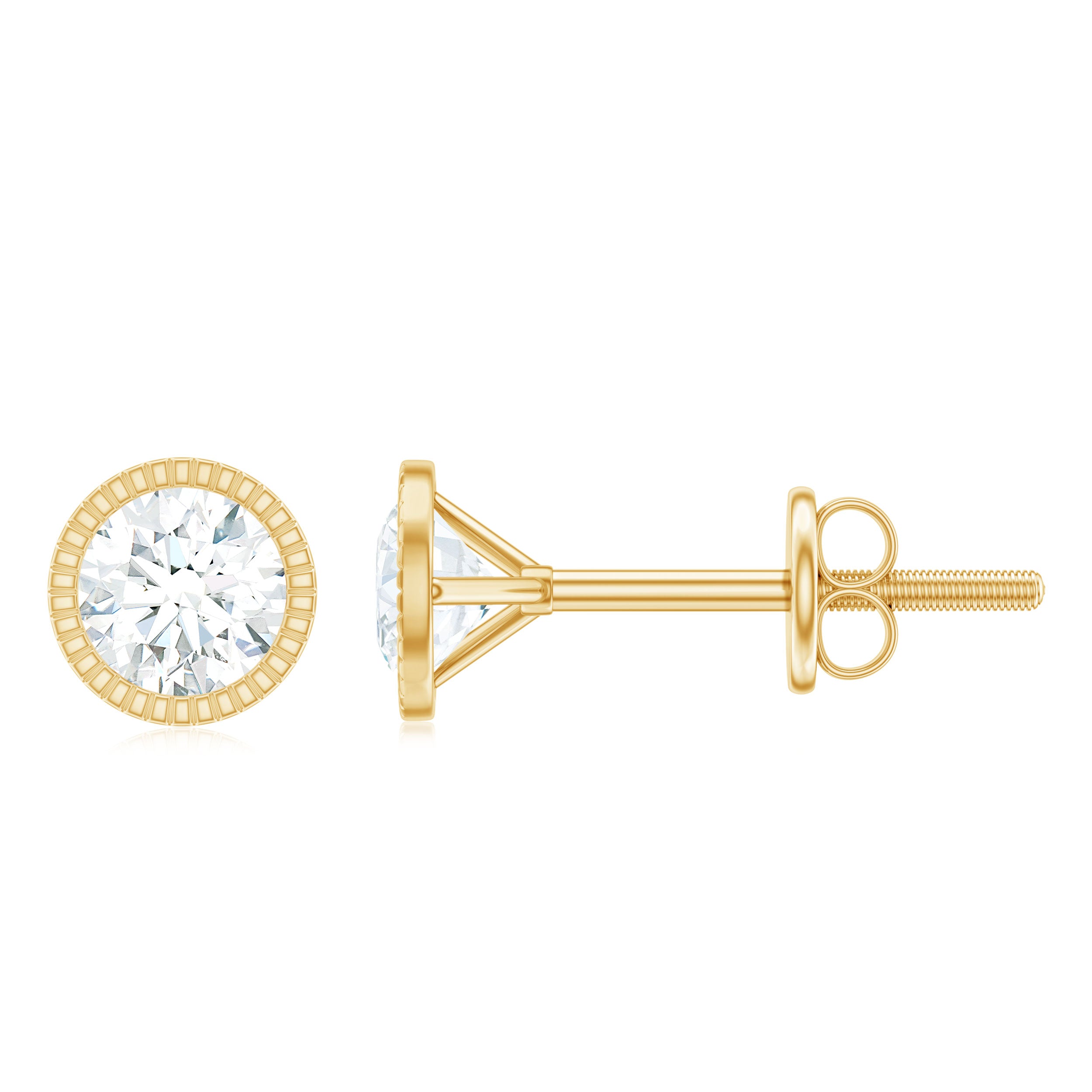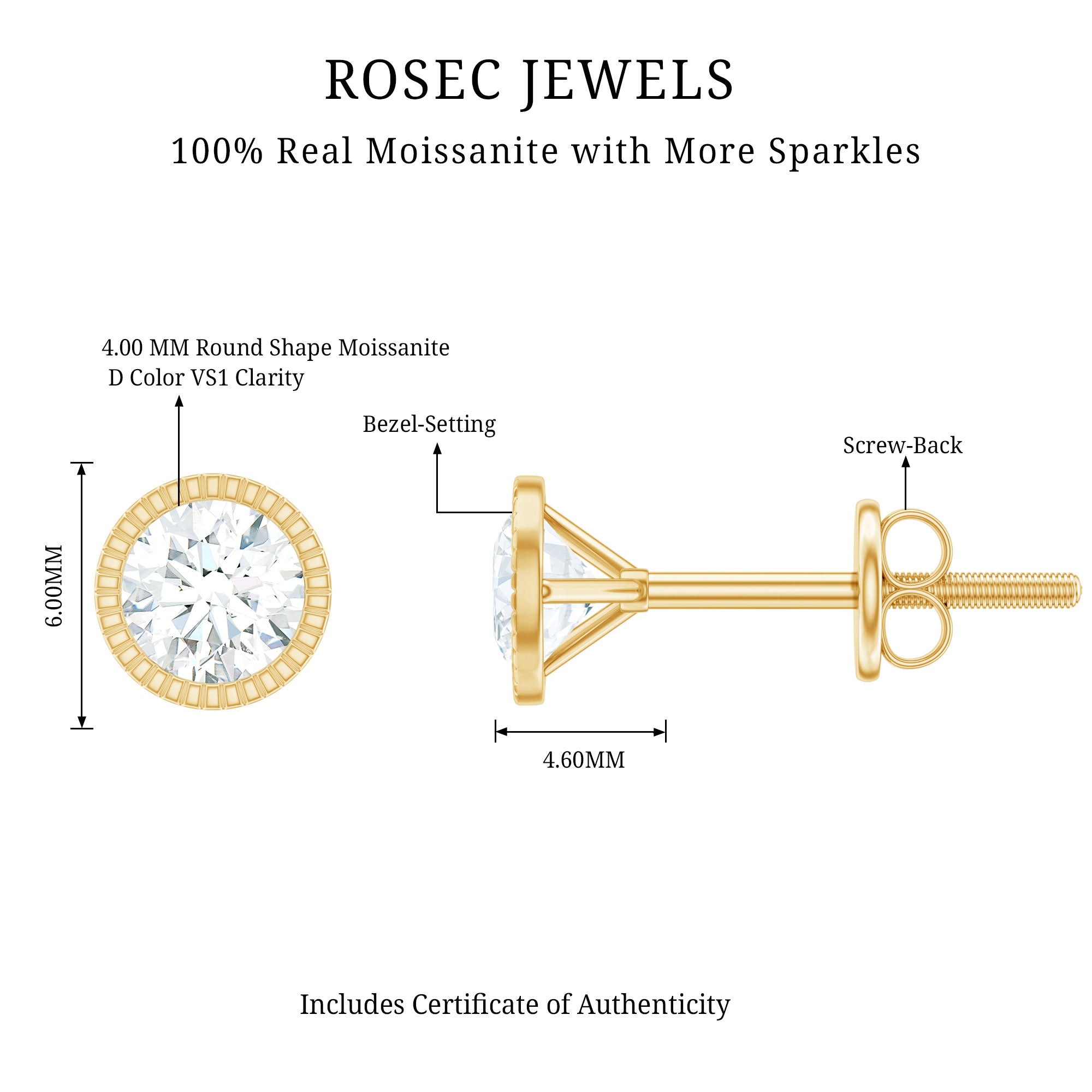 These stud earrings, made of solid gold and featuring round cut Moissanite in a bezel setting, are perfect for everyday wear. The solitaire design adds elegance to these earrings, making them a perfect choice for anyone looking for a stylish and versatile piece of jewelry.