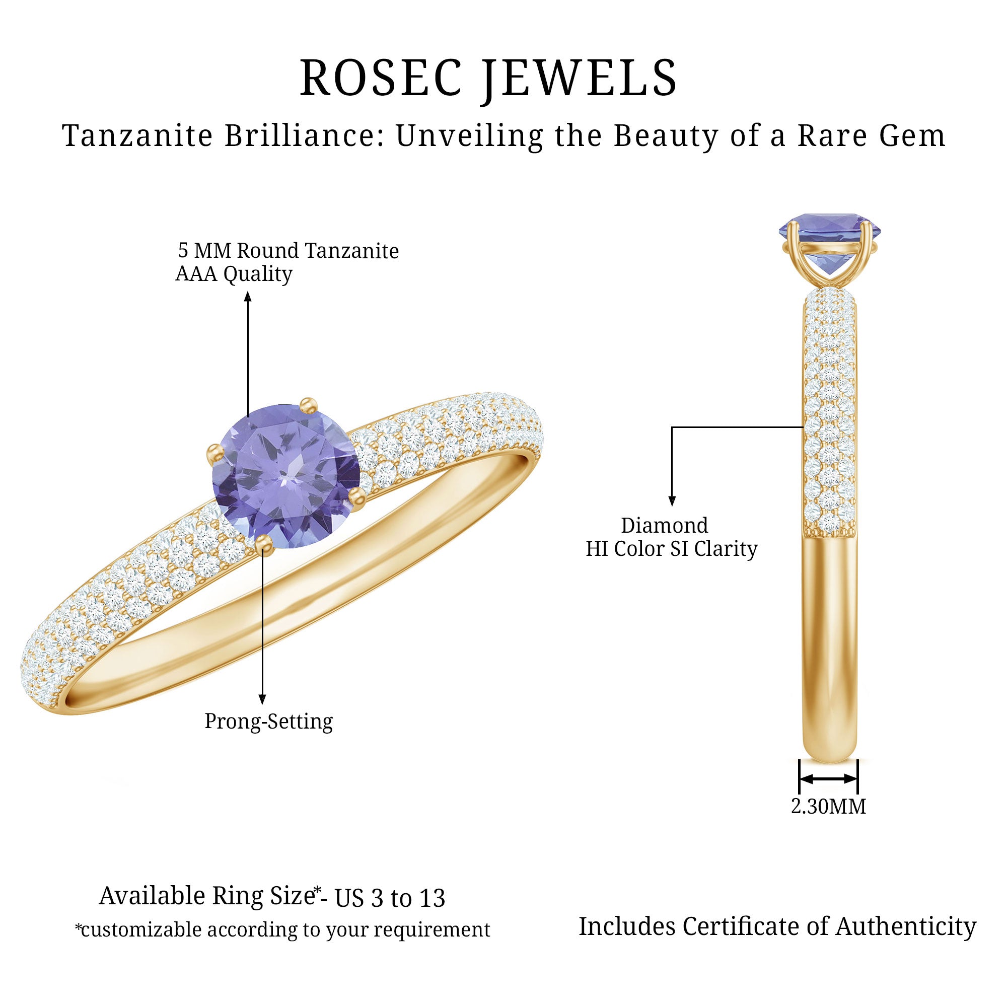 A Lovely and Beautiful Solitaire Ring has been embellished with Round Shape Tanzanite set as a solitaire in a 4 prong setting and Round Shape Diamond as Side Stone. This Solitaire Ring is available in solid gold.