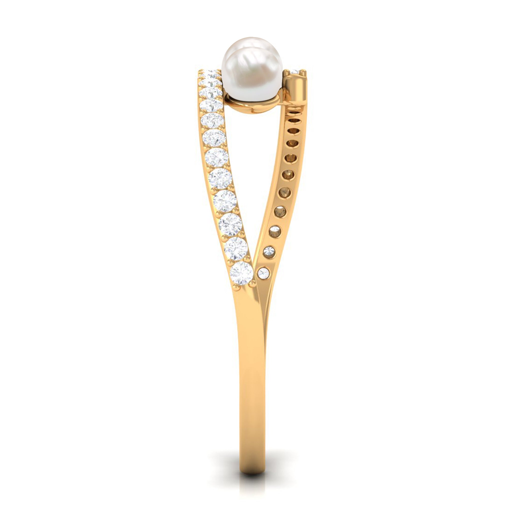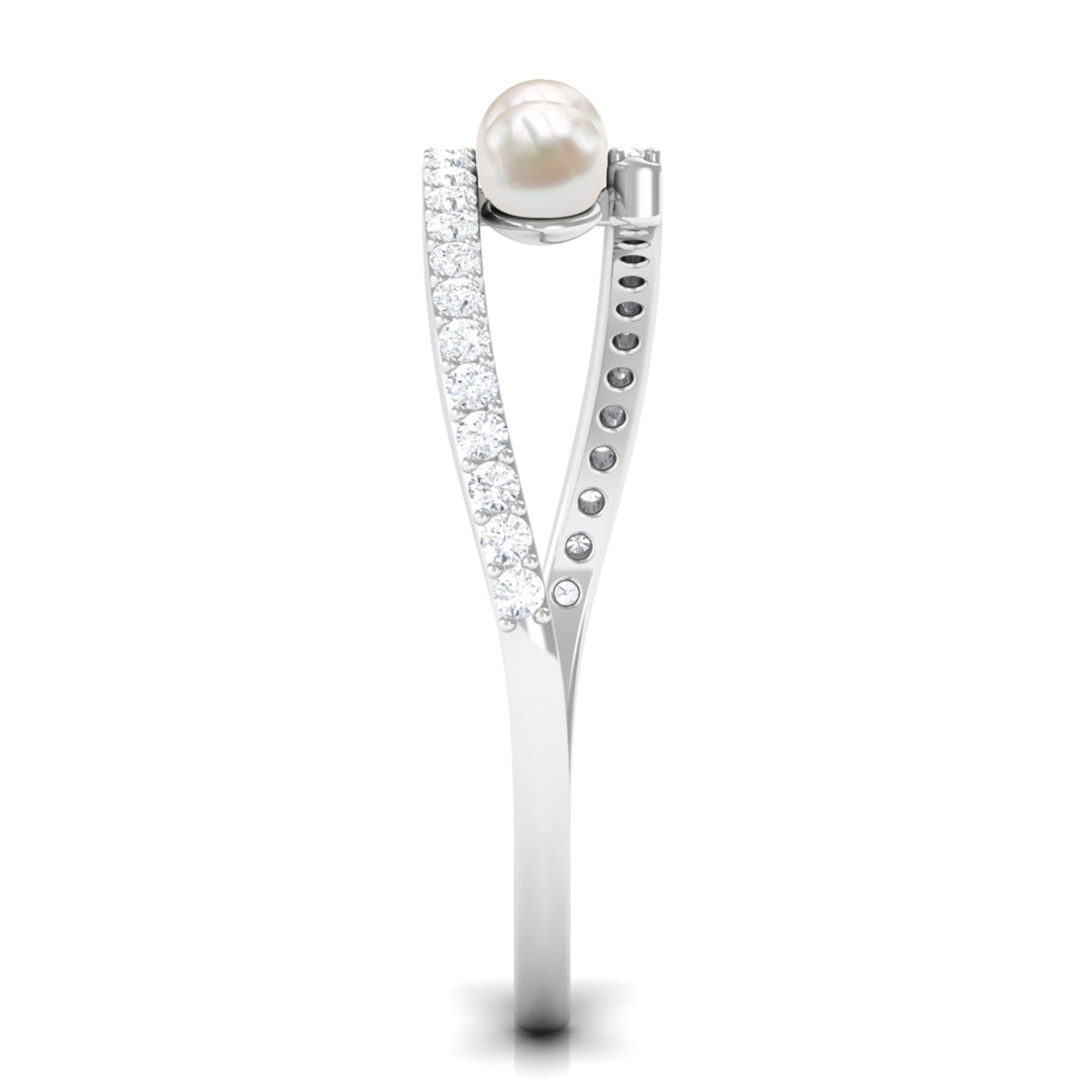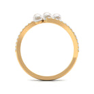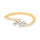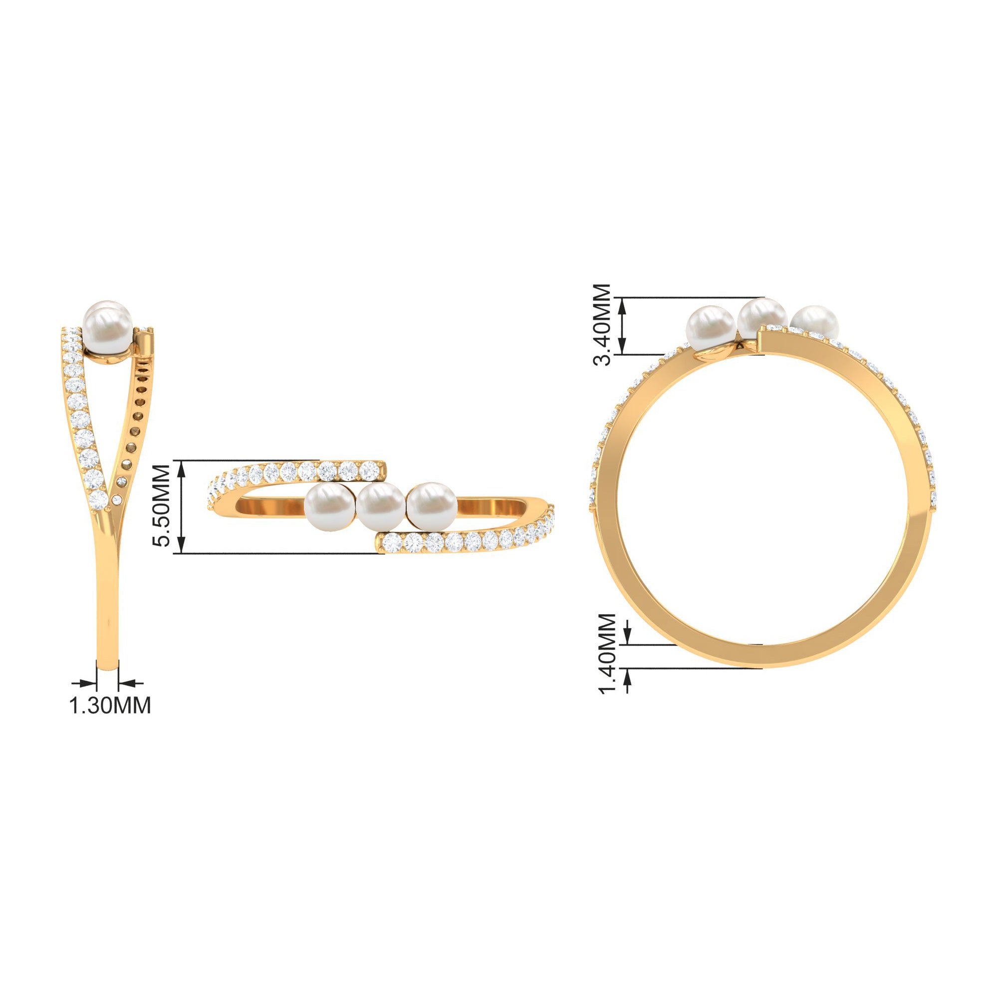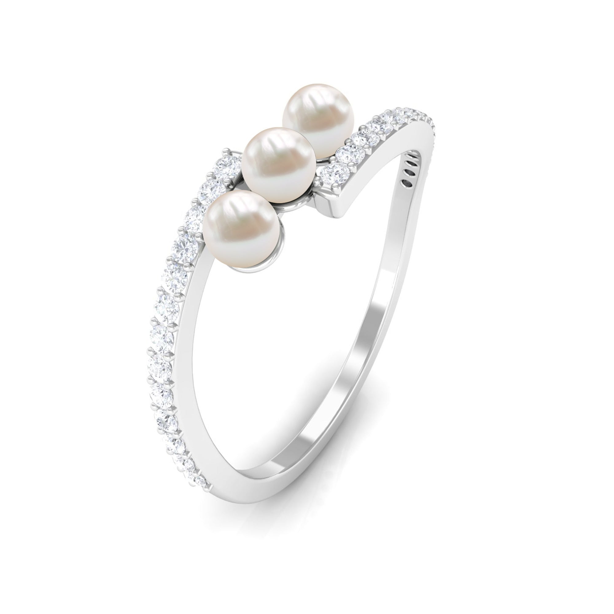 3/4 CT Three Stone Freshwater Pearl Bypass Ring with Diamond